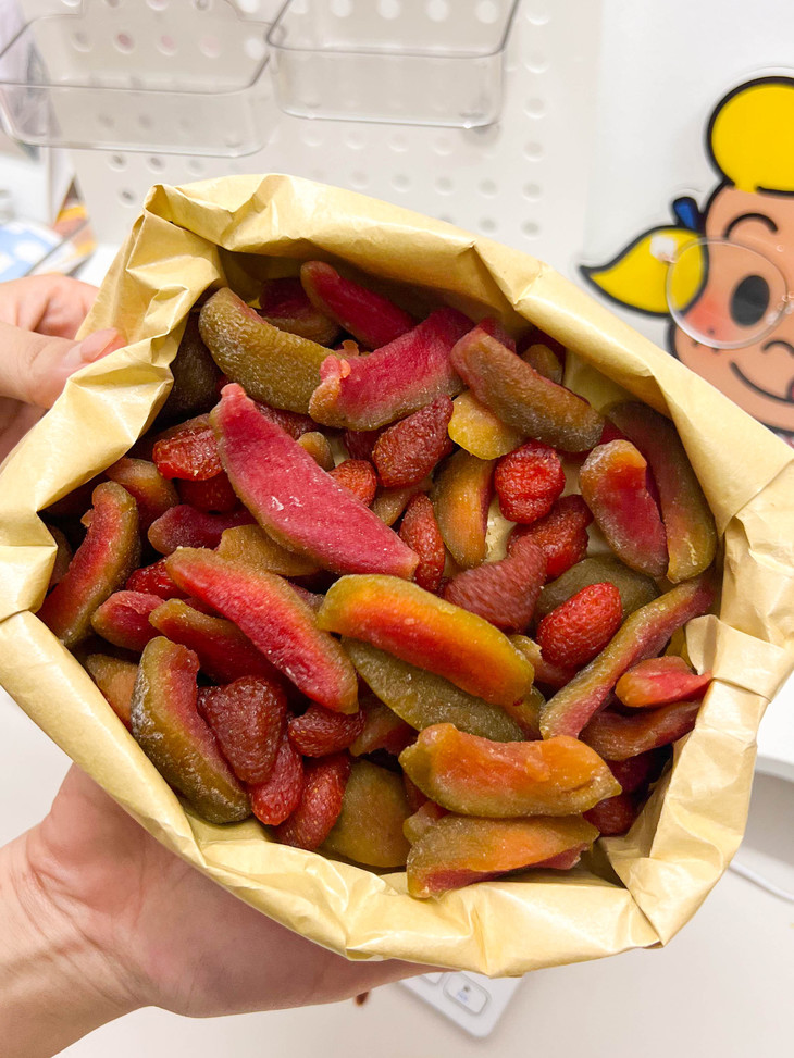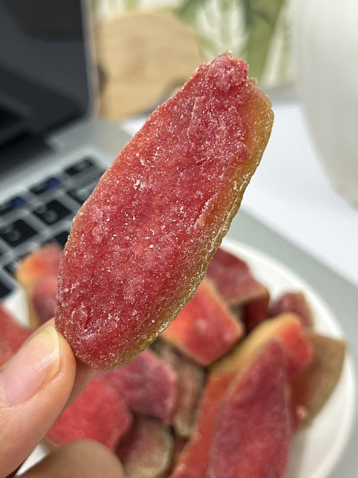 和市面上那些流水线上勾兑的香精,完全不一样 第一次在一个零食上吃出了“春夏天”的味道~ 吃一口就被惊艳到了,每个果肉都很饱满厚实 刚拿到公司一会儿,就被同事抢着分光了! 开袋即食hin方便,敲适合工作摸鱼或者下午茶吃!