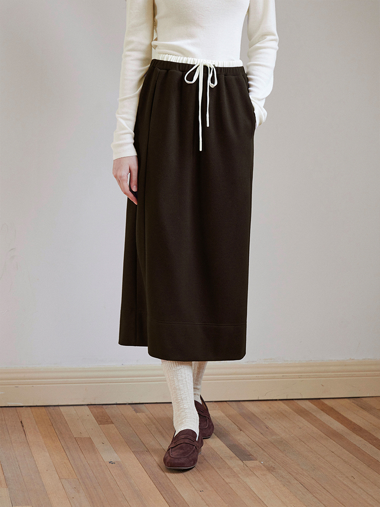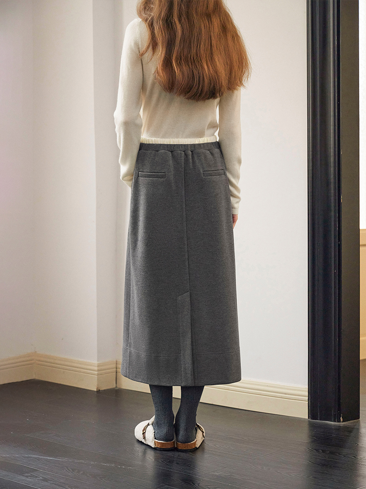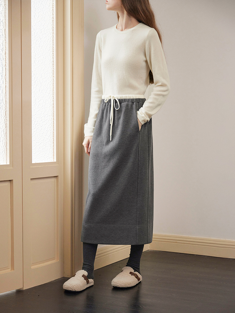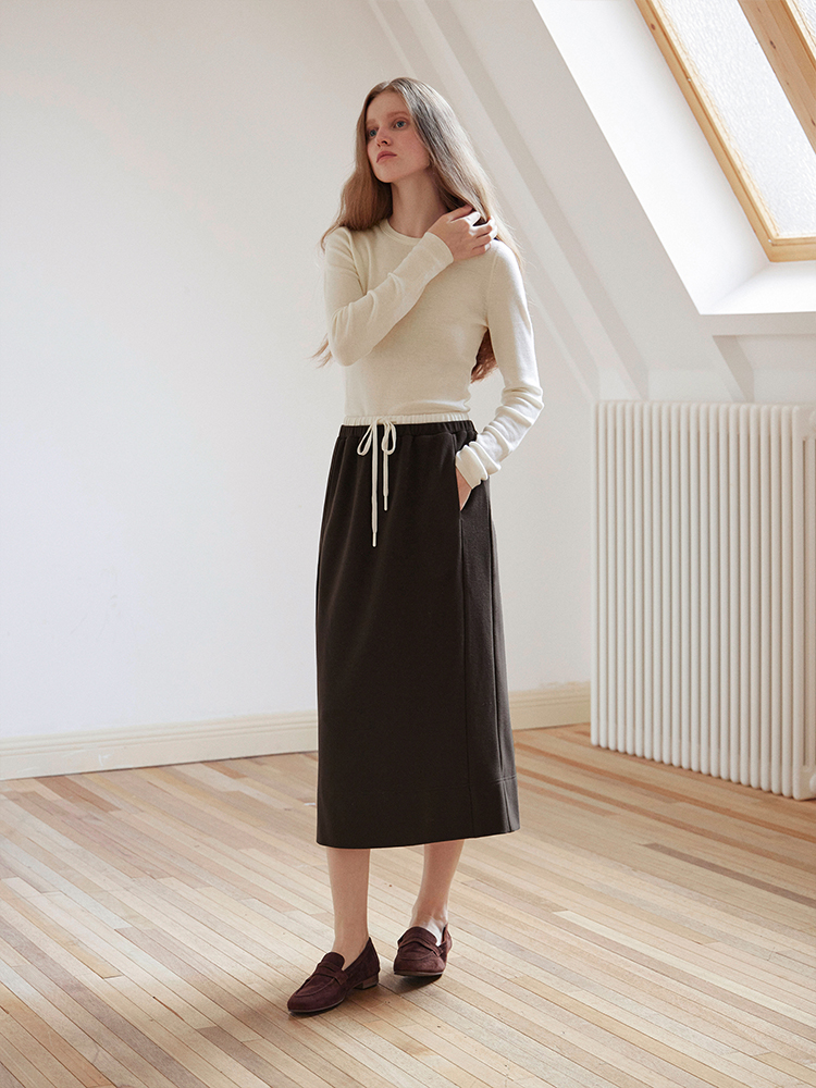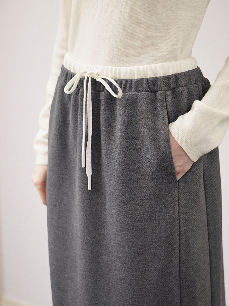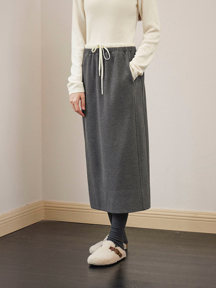 ForPoem 现货 24/FW原创设计针织羊毛休闲双腰头系带半身裙长裙
