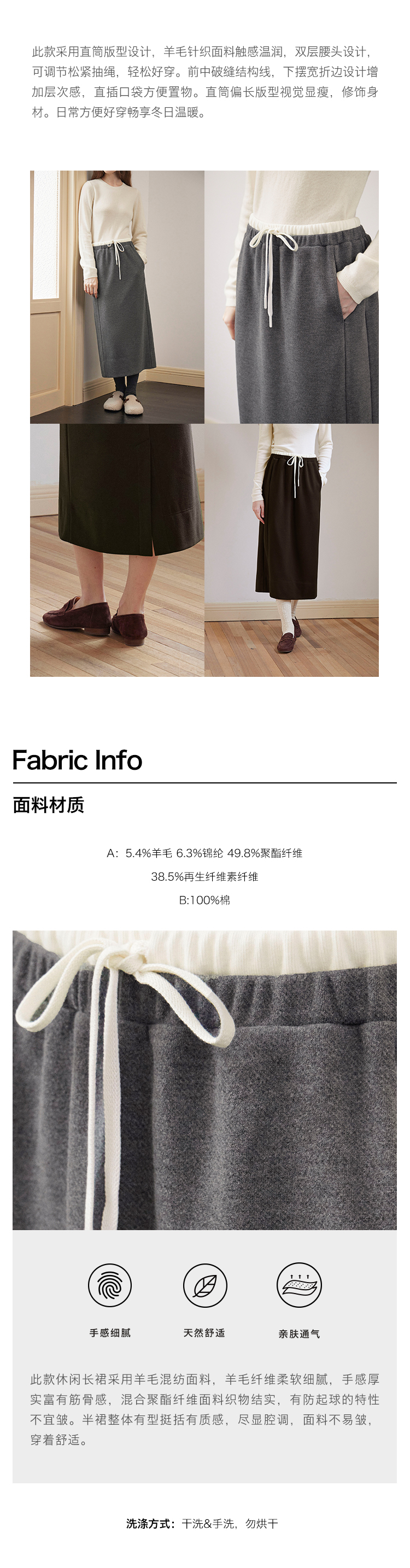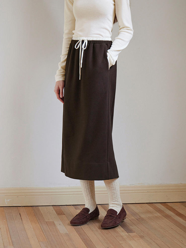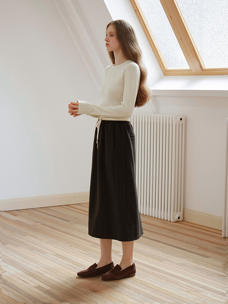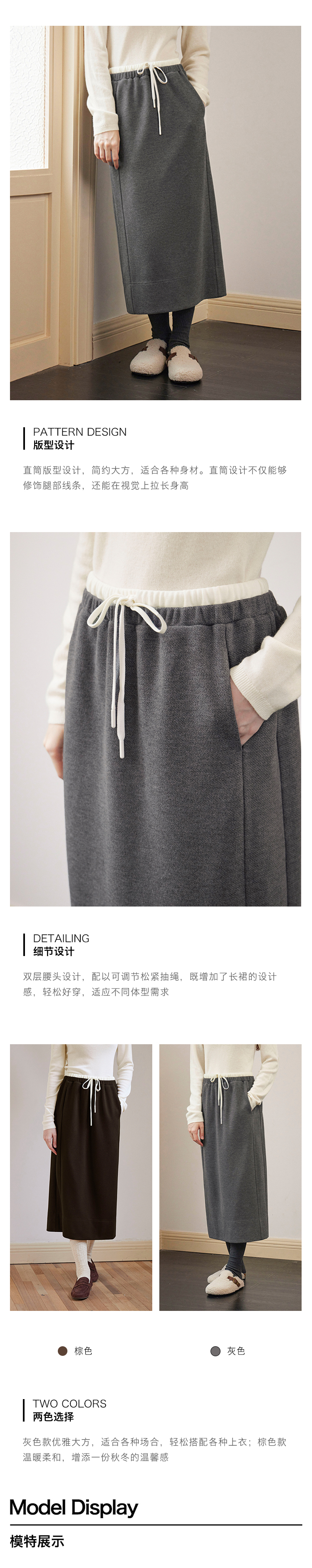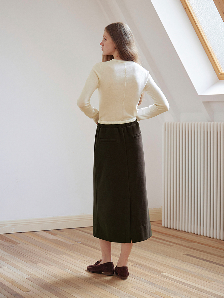 ForPoem 现货 24/FW原创设计针织羊毛休闲双腰头系带半身裙长裙
