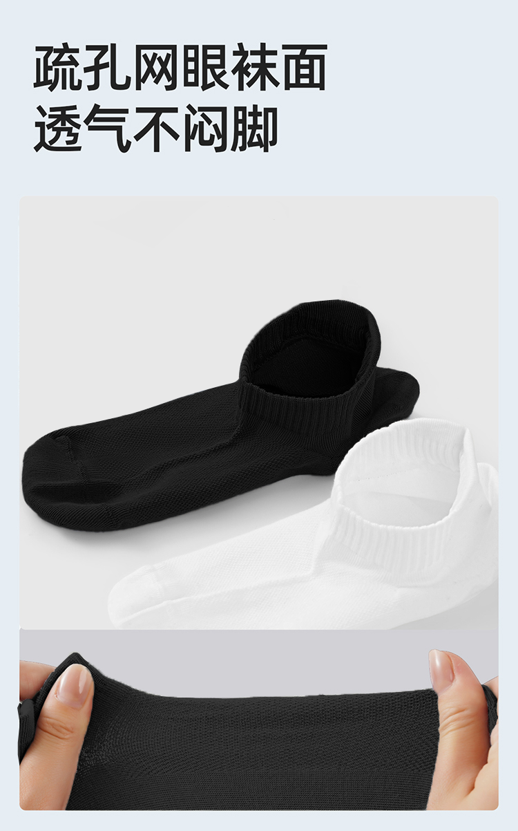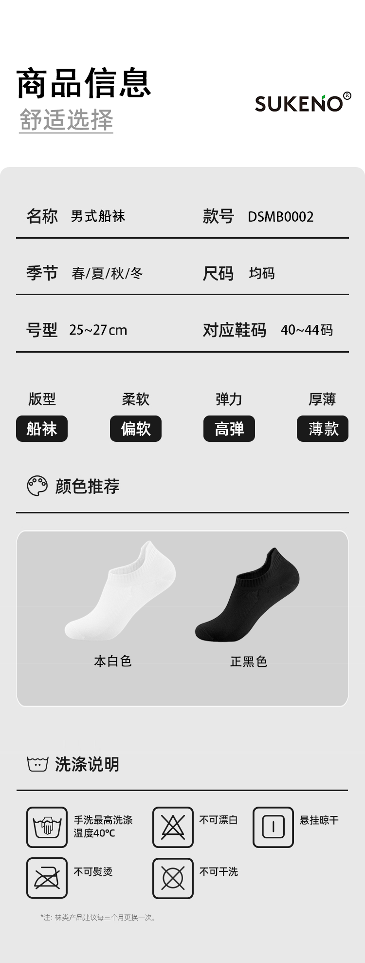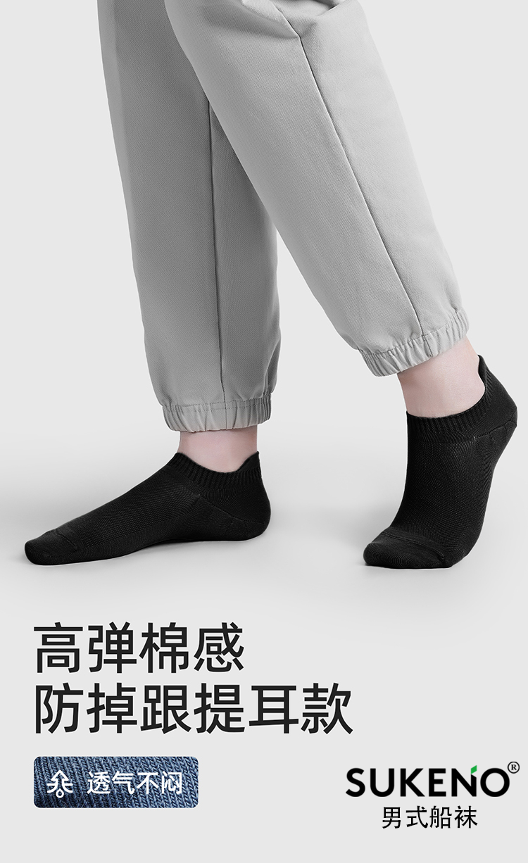 SUKENO夏季新款短款男袜高弹棉感防掉跟提耳透气船袜