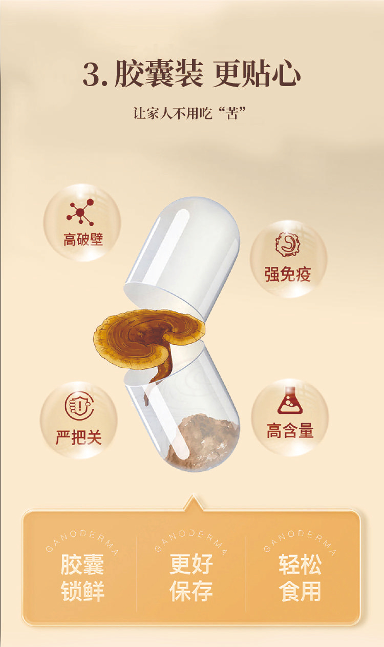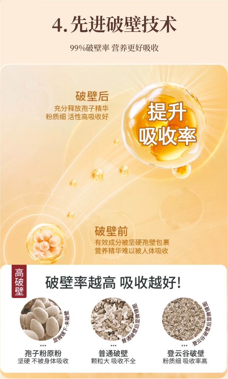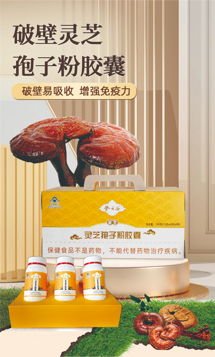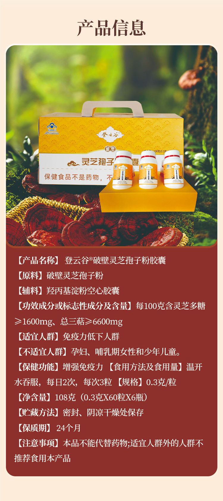 【登云谷】严选破壁灵芝孢子粉简装送礼自用单瓶装108g(60粒*6瓶)健康营养