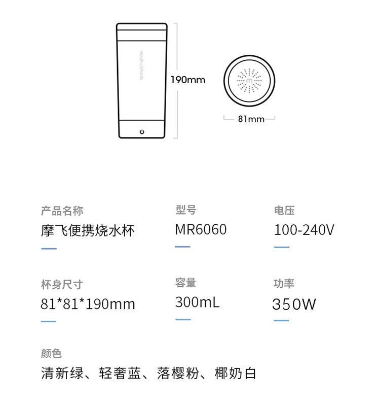 摩飞电器(Morphyrichards)电水壶 烧水壶便携式家用旅行电热水壶 随行冲奶泡茶办公室养生保温杯MR6060
