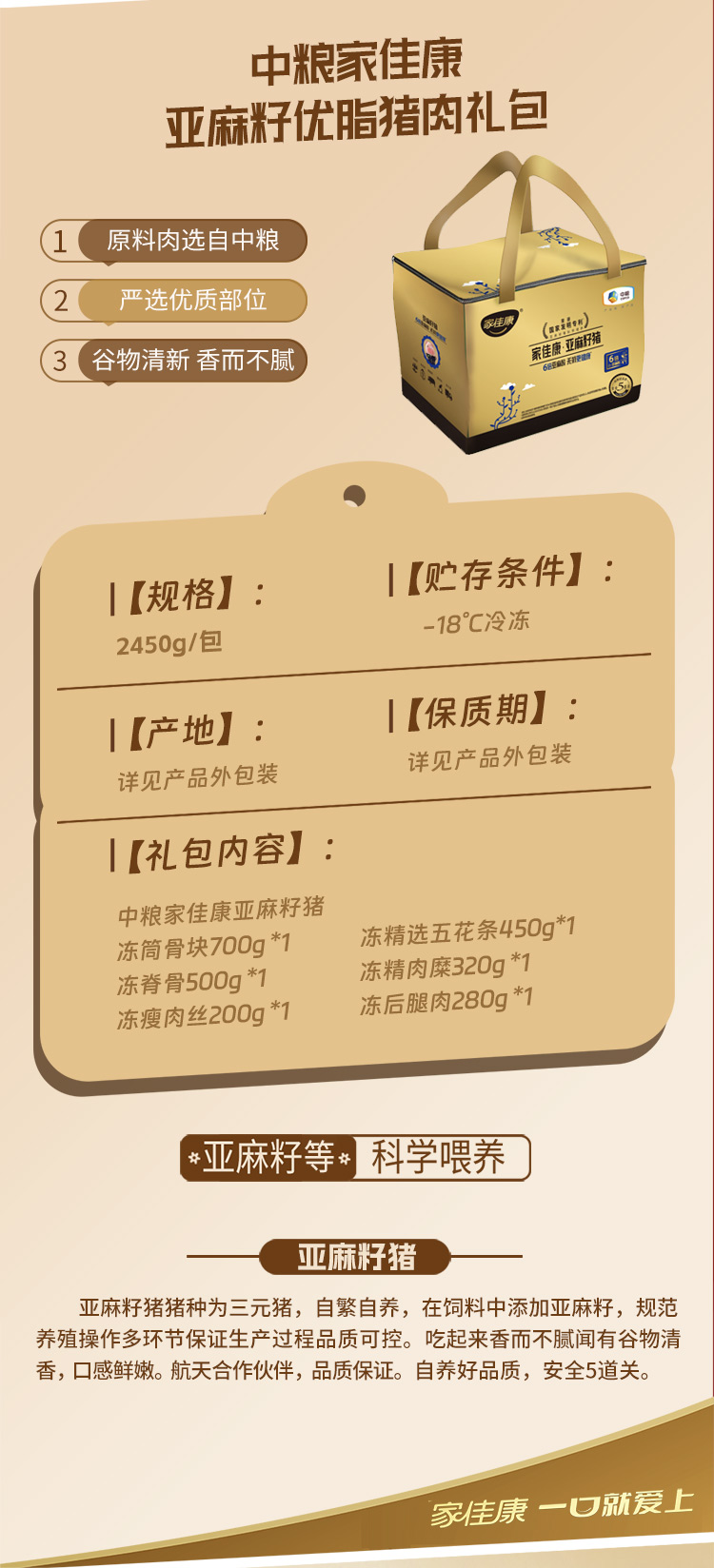 中粮家佳康亚麻籽优脂猪肉礼包2450g