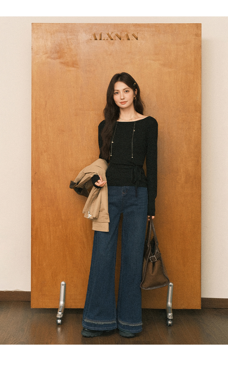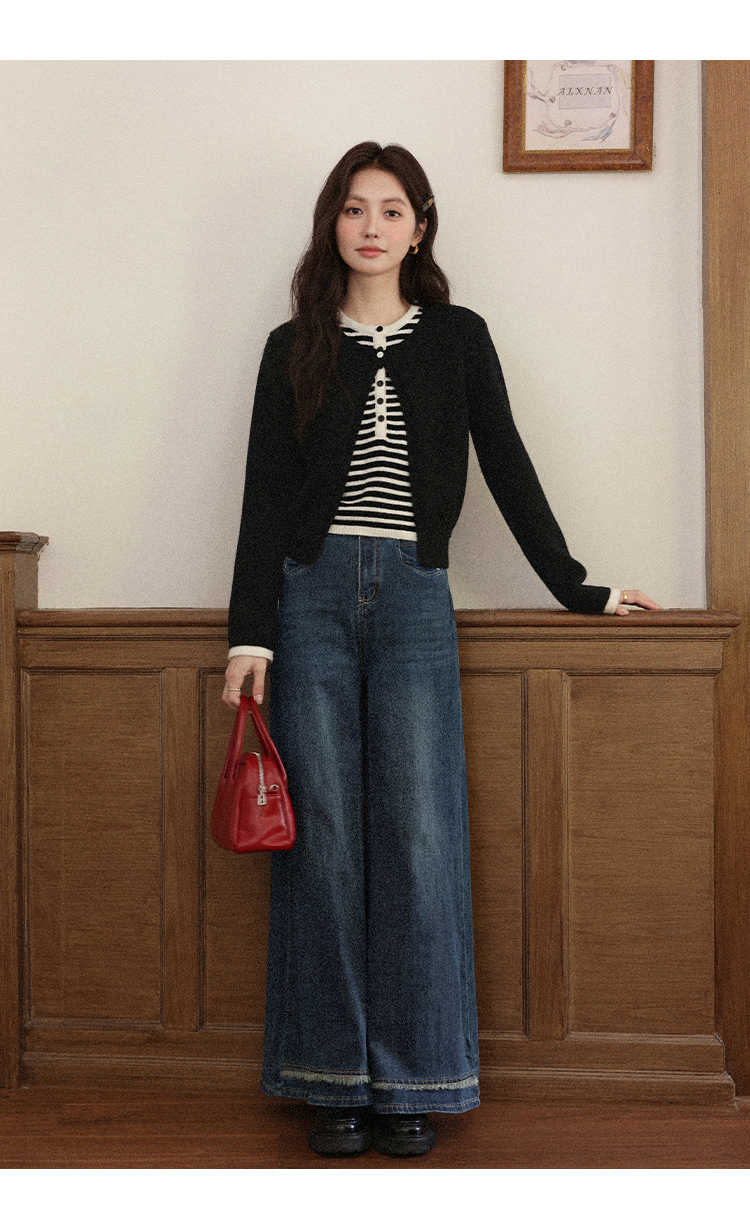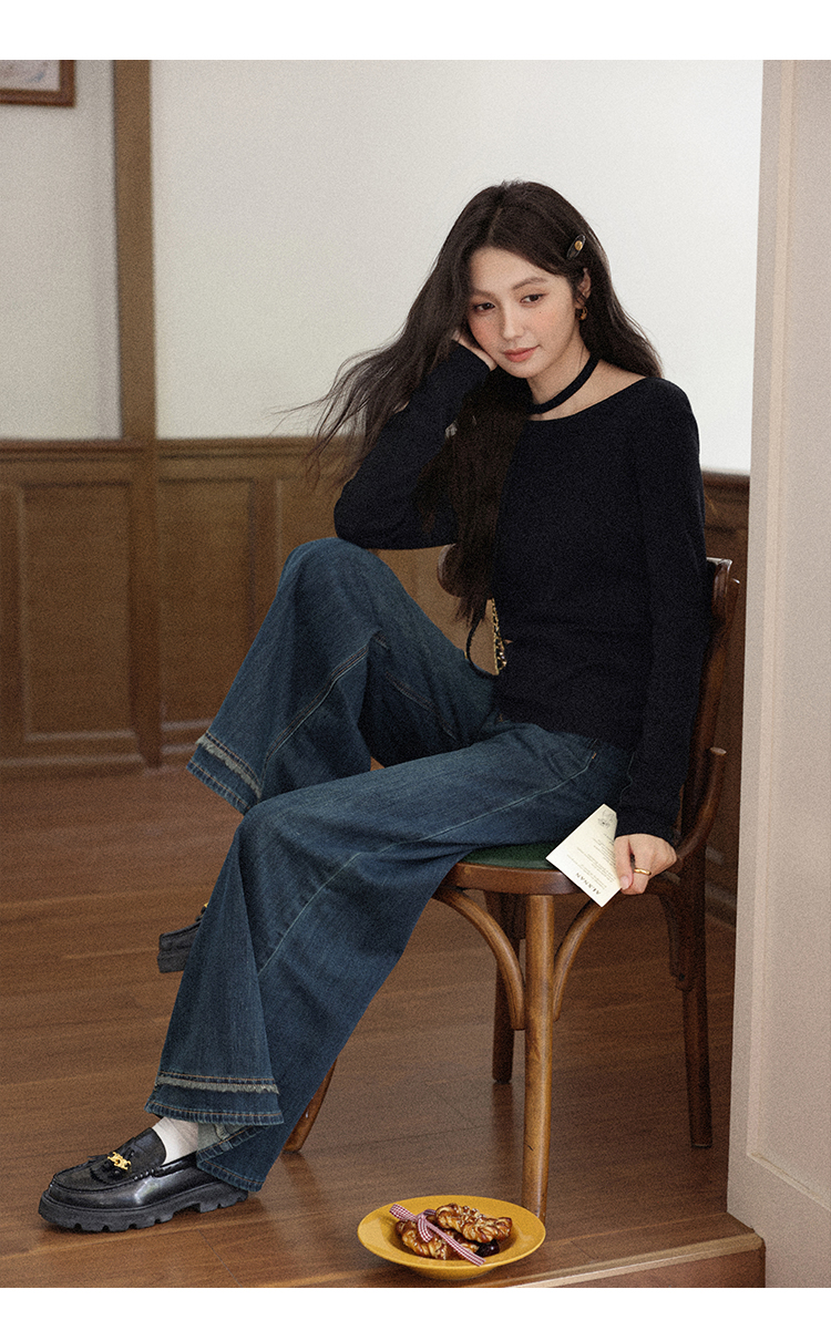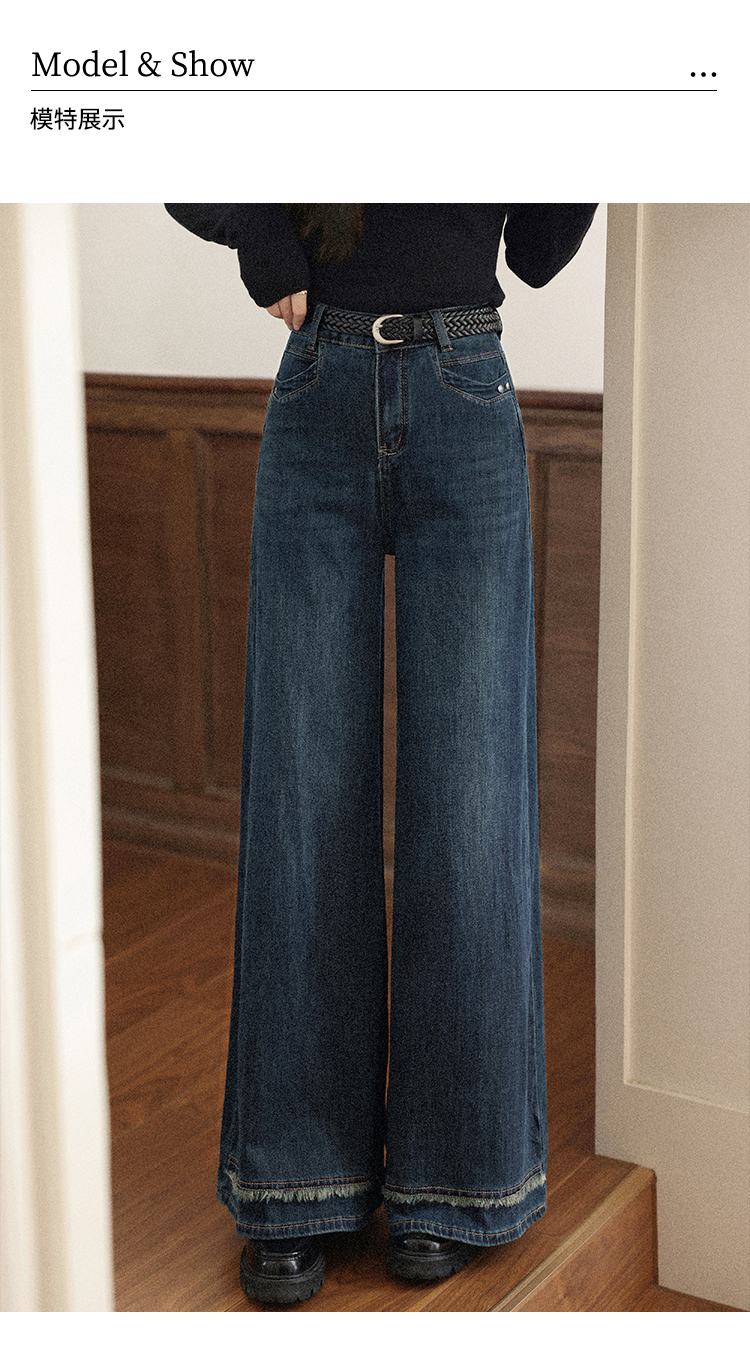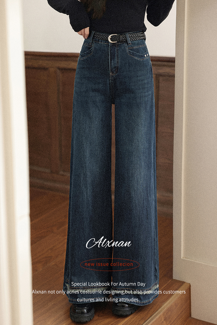 鹿向南「深巷漫调」复古蓝色牛仔裤女秋季新款直筒阔腿遮肉长裤子