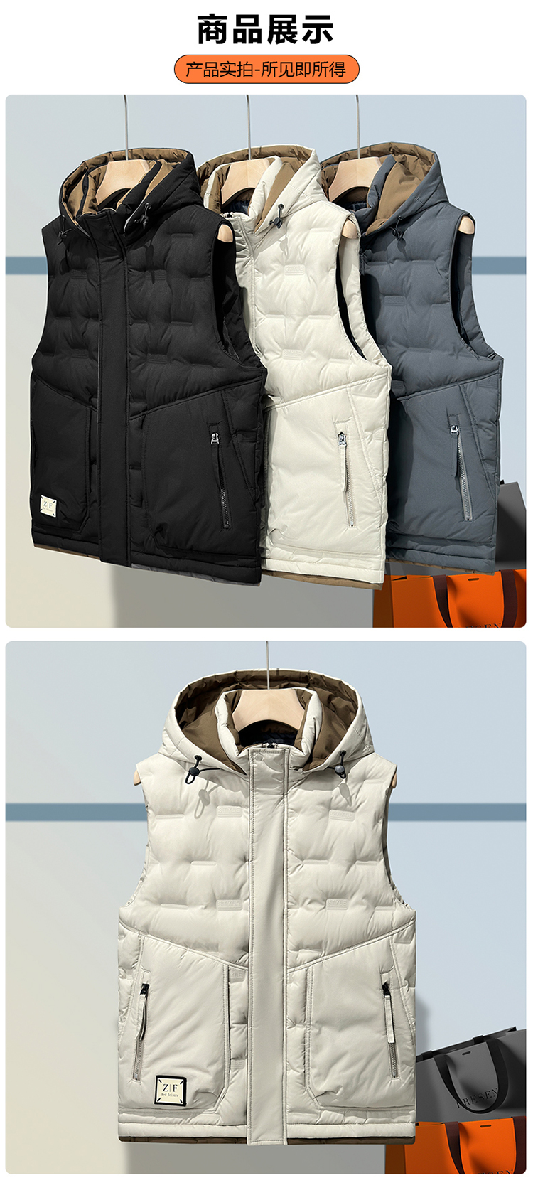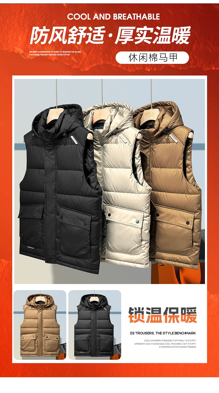 2025新款棉马甲 男士冬季羽绒棉服马甲新款 宽松潮牌加厚保暖大码运动