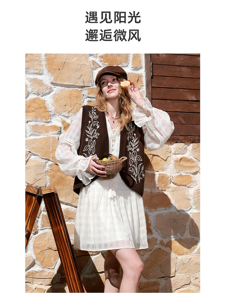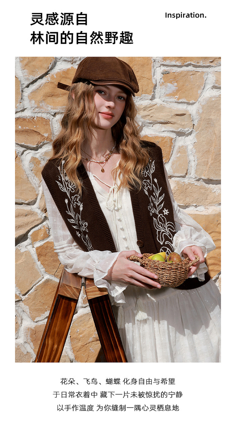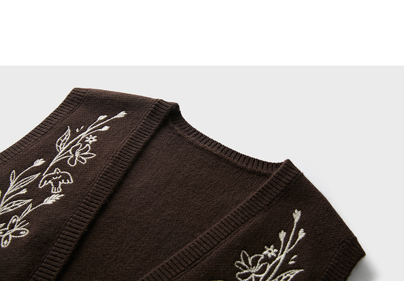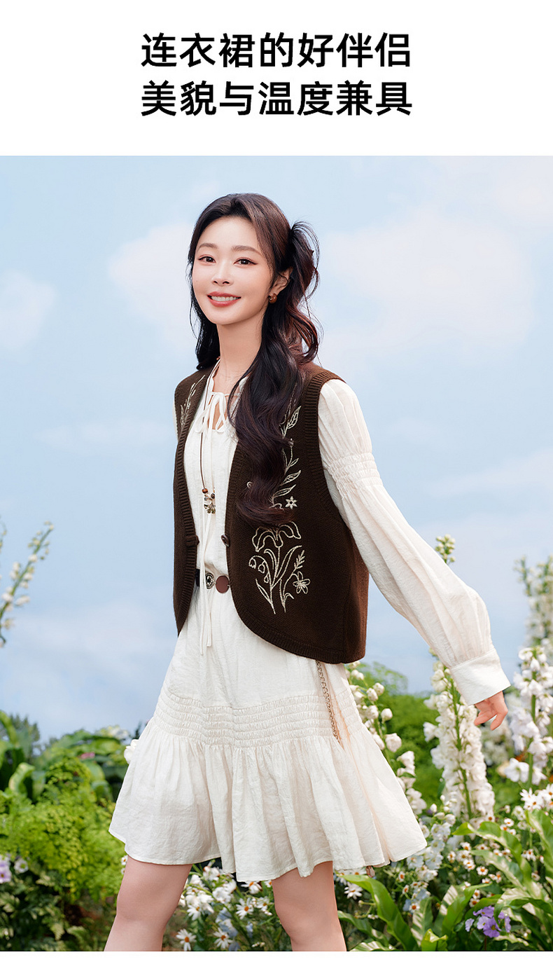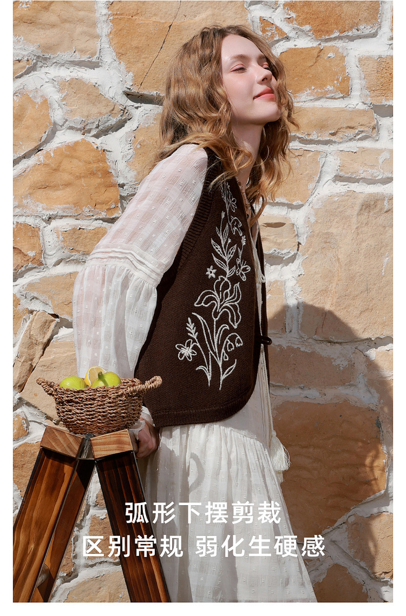 【宋轶同款】三彩2026春季新款V领无袖毛衣绣花小开衫外套马夹毛衫叠穿M
