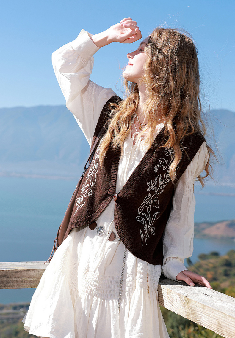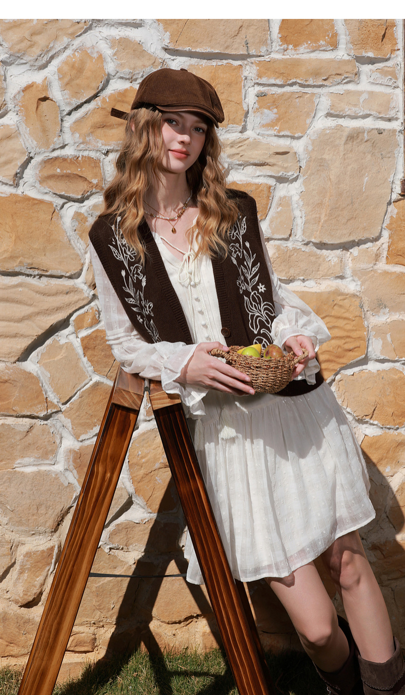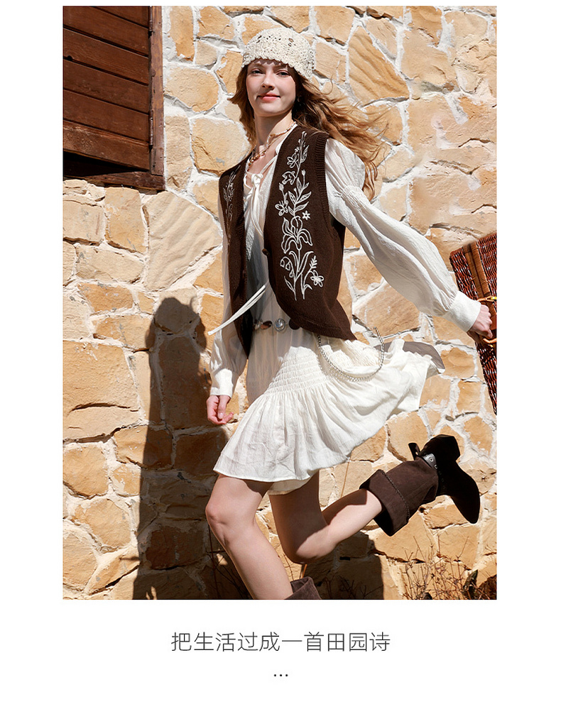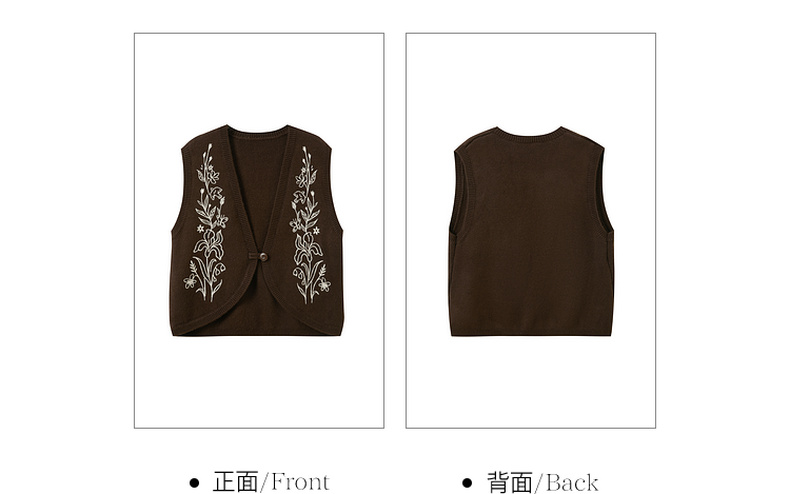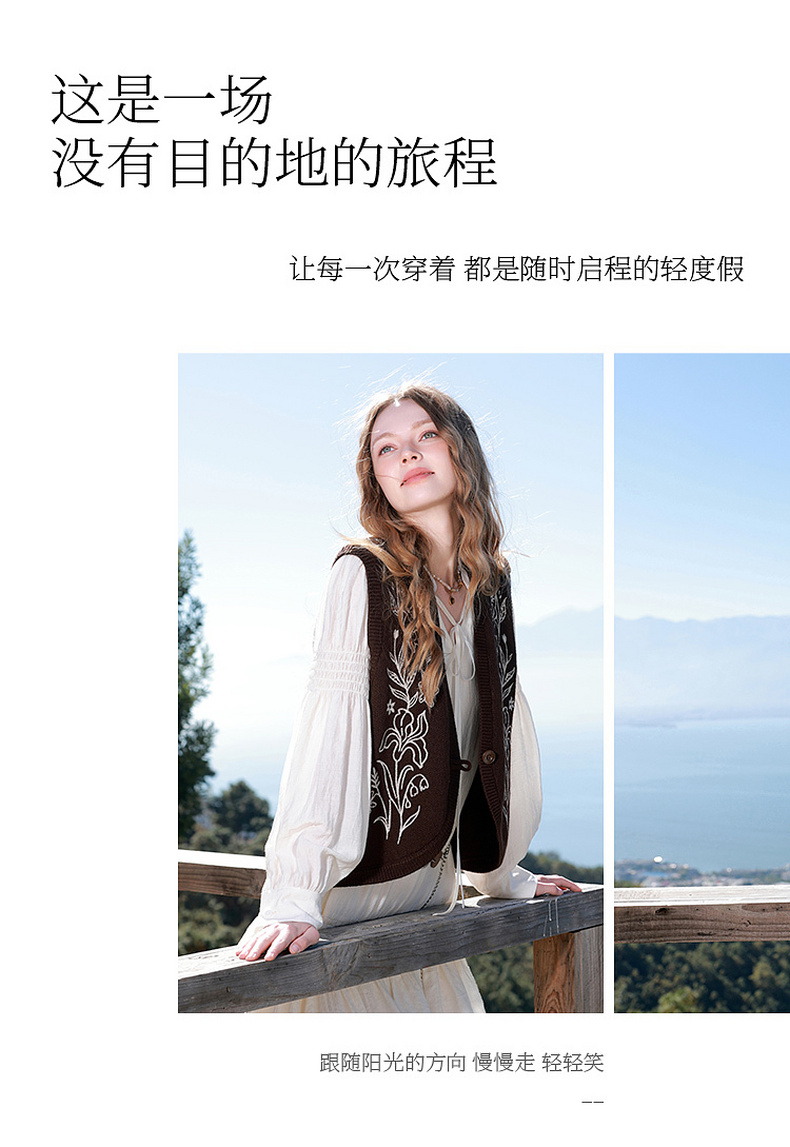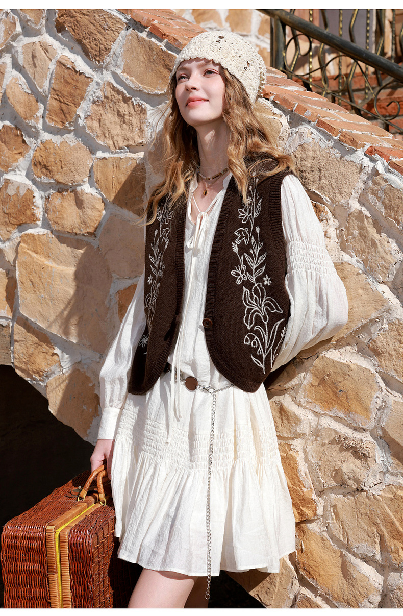 【宋轶同款】三彩2026春季新款V领无袖毛衣绣花小开衫外套马夹毛衫叠穿M