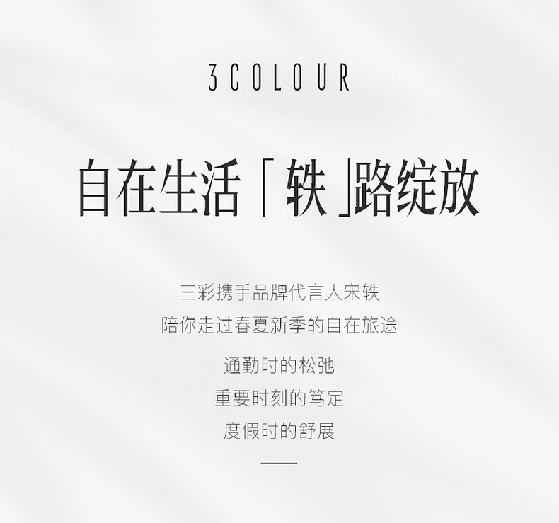 - 3COLOUR,一直致力于探索自我与时尚审美,用穿衣哲学折射生活主张,在流动中探寻恒久。
