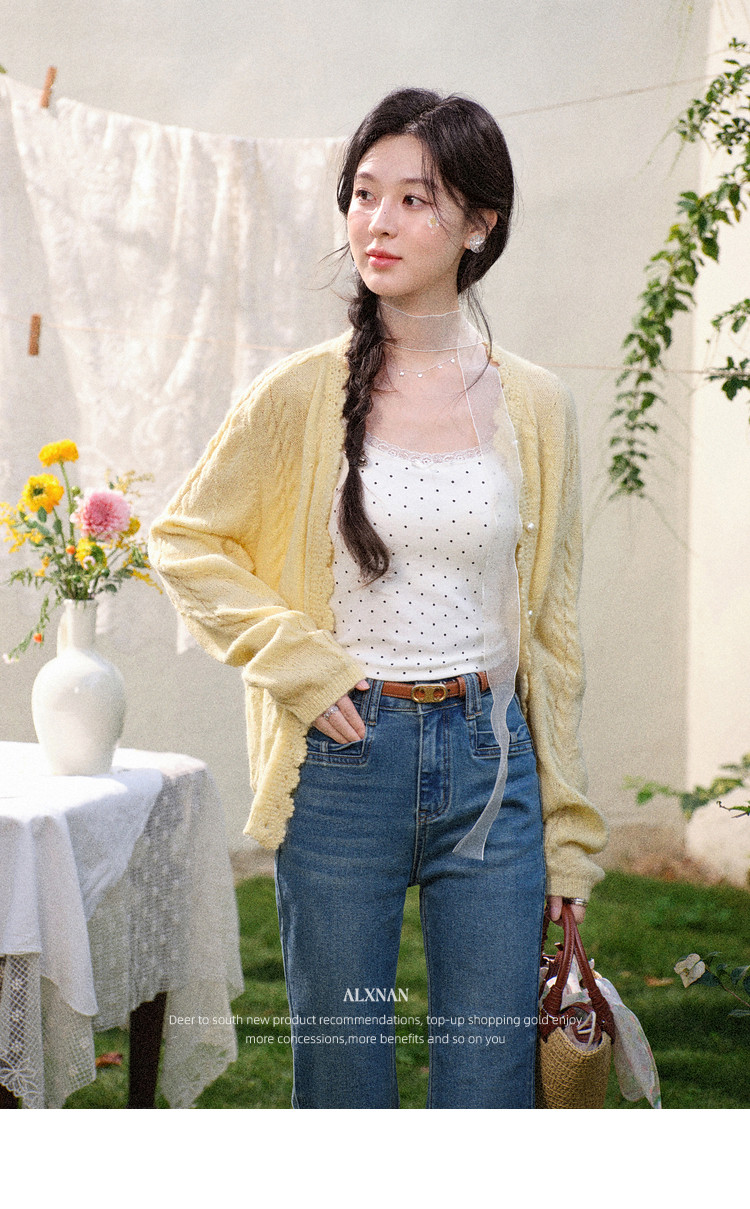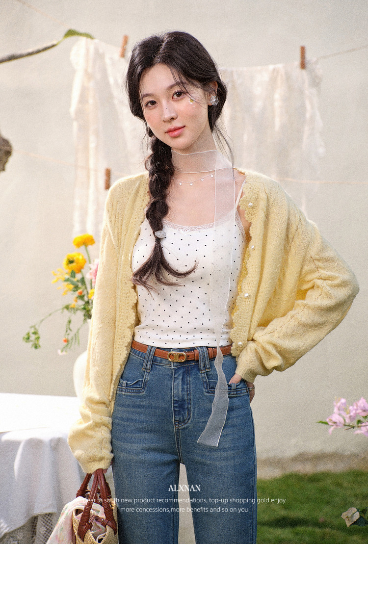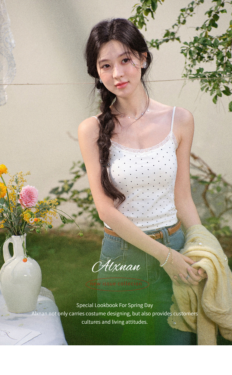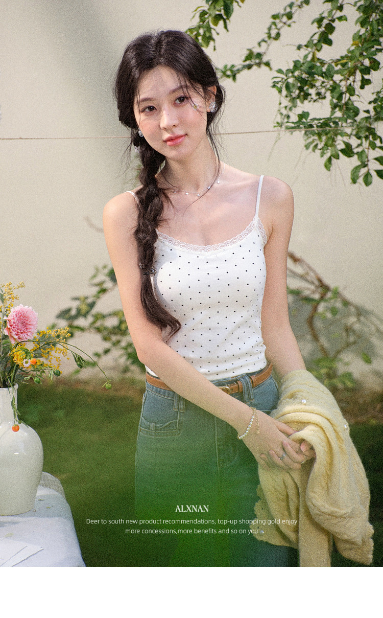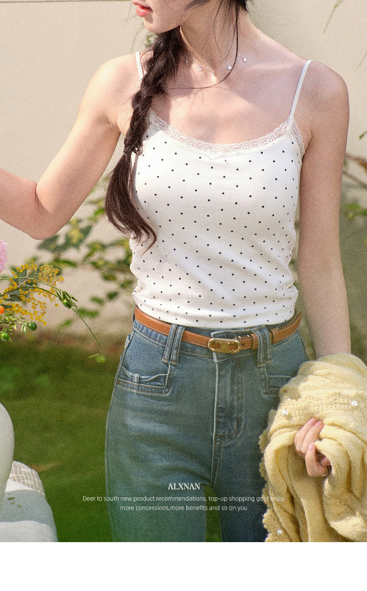 鹿向南「私域暖调」杏色蕾丝边波点背心吊带女春修身显瘦内搭上衣