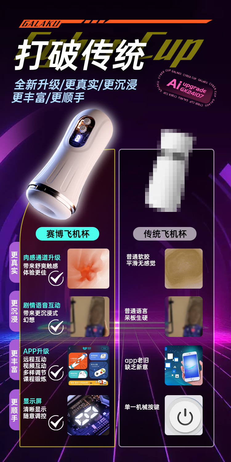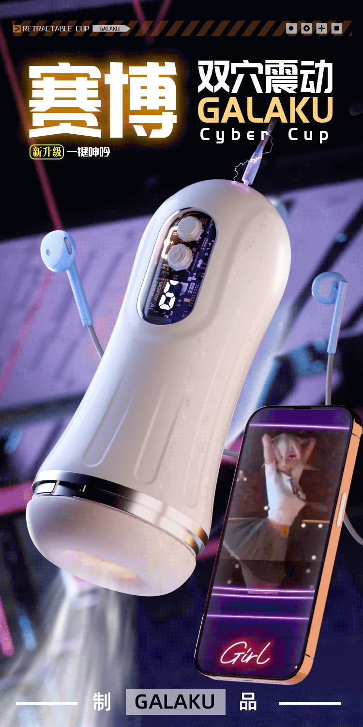【男用器具】Galaku 赛博朋克飞机杯AI白色-显示屏/发声/震动【产品不带耳机 需要自配圆头3.5mm耳机 】