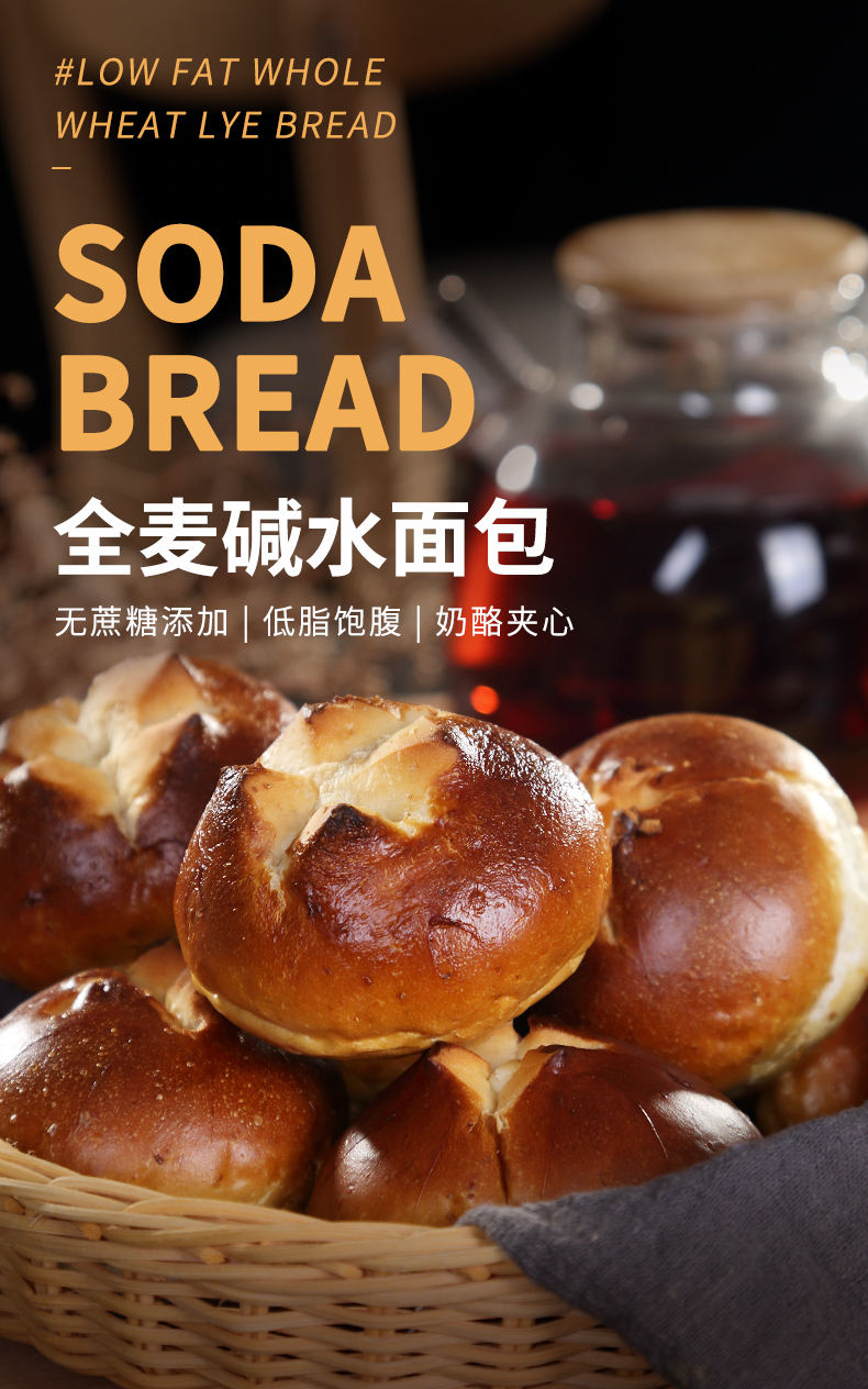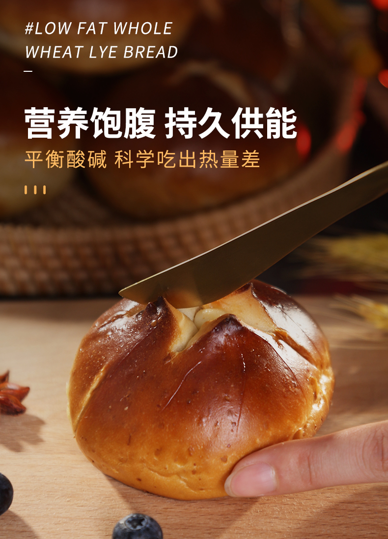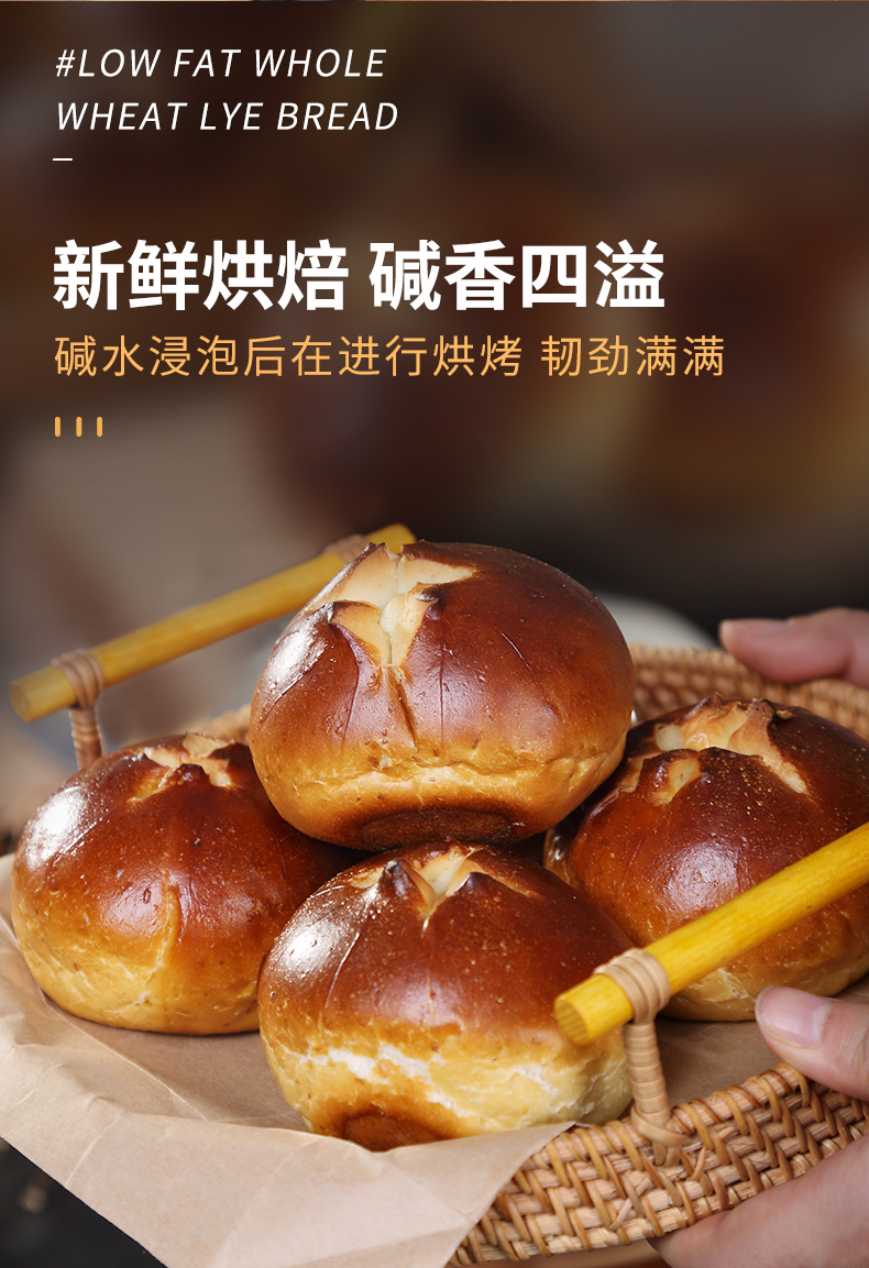昔日印象全麦碱水面包奶酪夹心结早餐代餐粗粮欧包碱水球