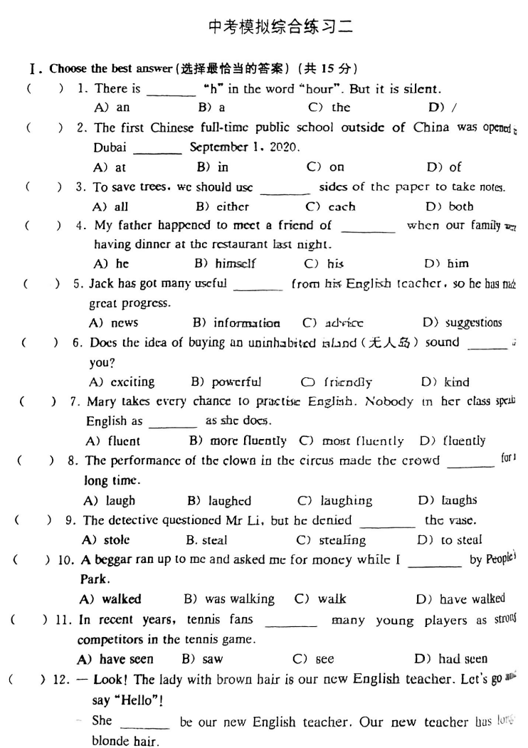 ② 需要系统梳理初中语法知识点,复习巩固,力争中考英语满分的学生