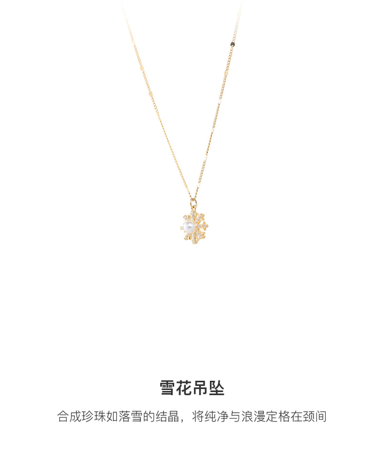 【冰雪奇缘】三彩2026新款雪花珍珠吊坠项链轻奢童话约会法式经典
