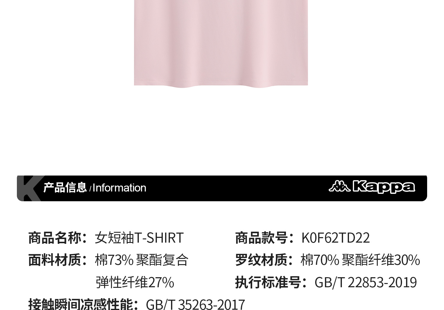 Kappa卡帕背靠背短袖女款2025新款夏季运动休闲凉感t恤索罗娜上衣K0F62TD22