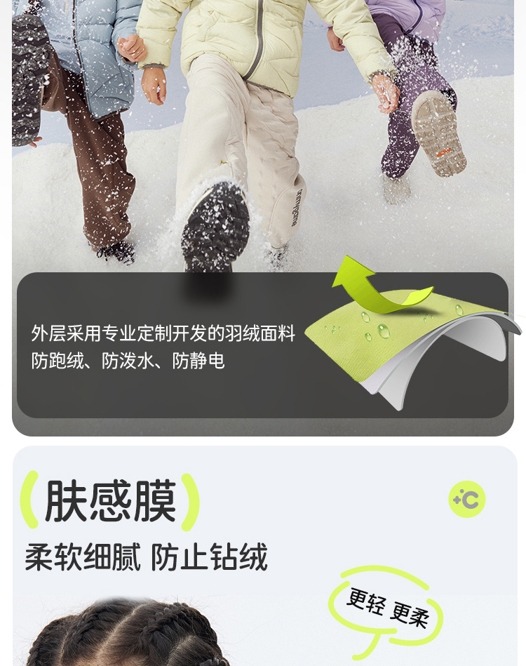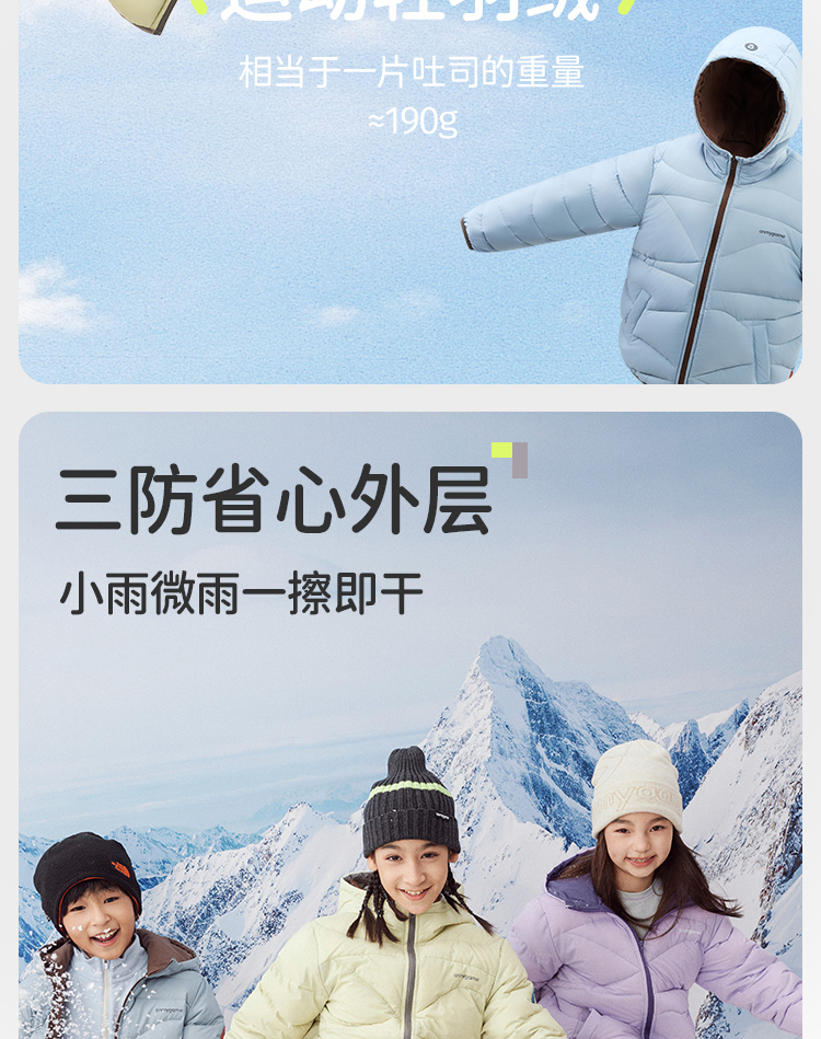 onmygame【肤感膜】男女童羽绒服轻量户外三防安心绒KD80E310489