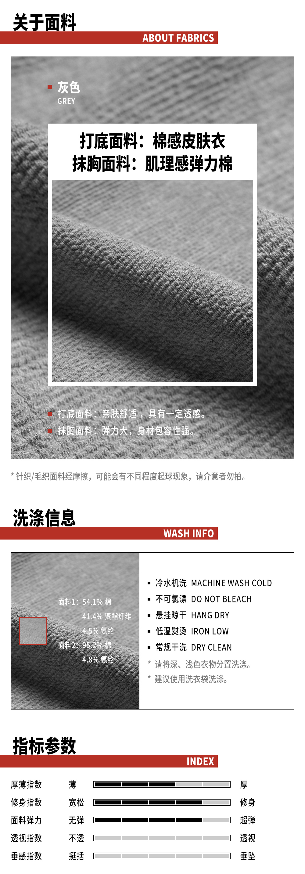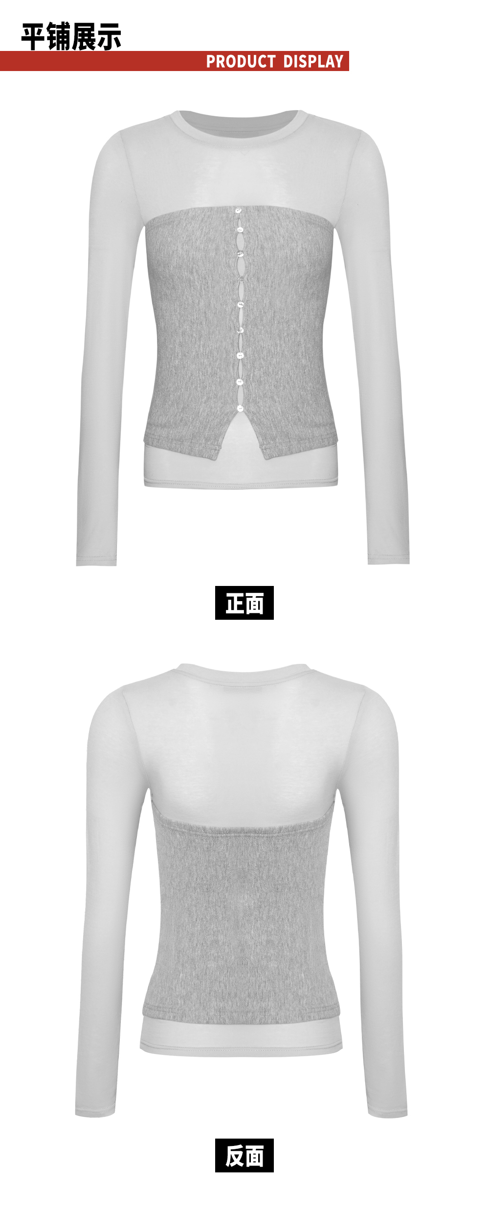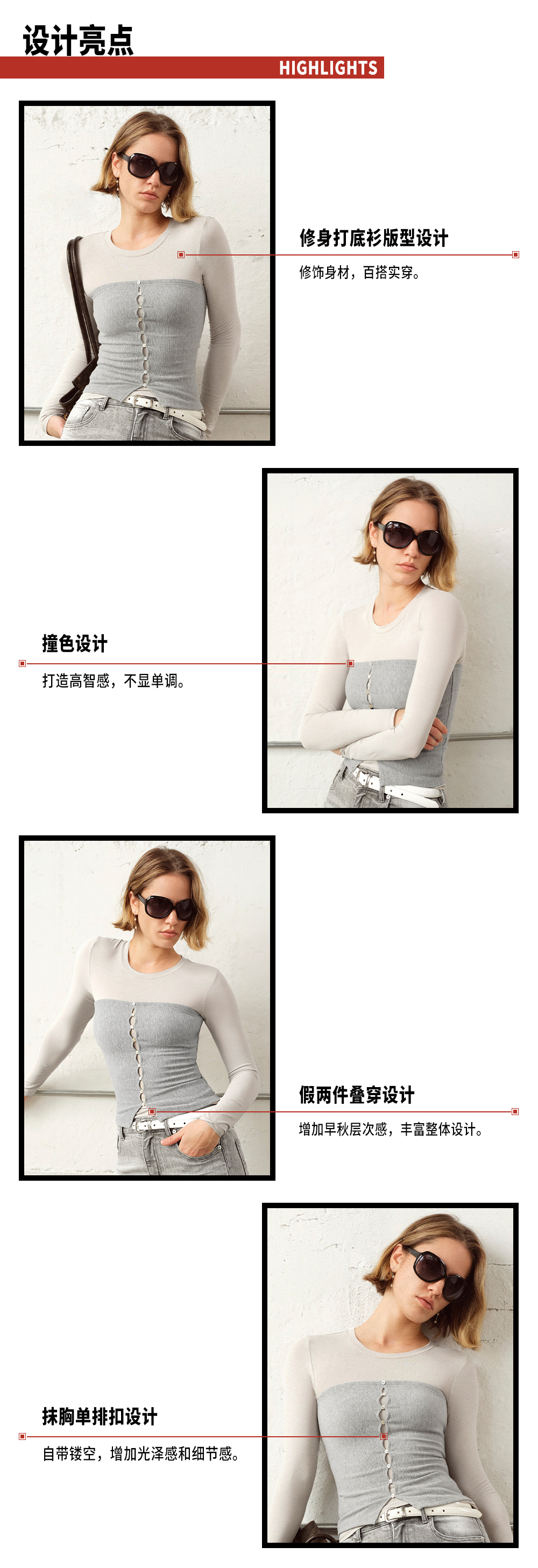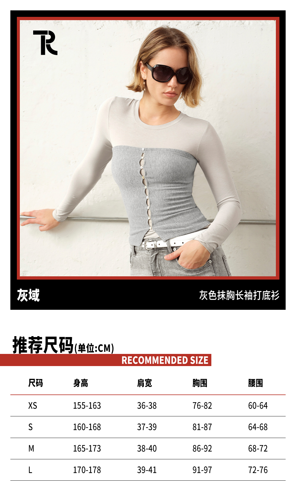 TR她热 灰域 灰色撞色拼接假两件设计感修身弹力抹胸打底衫