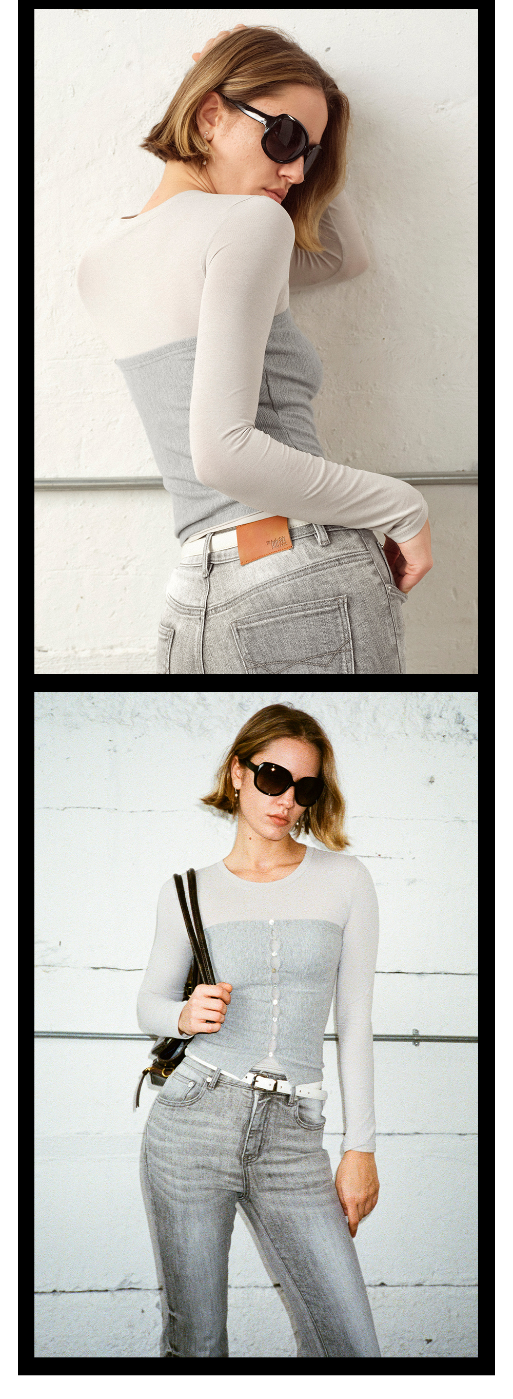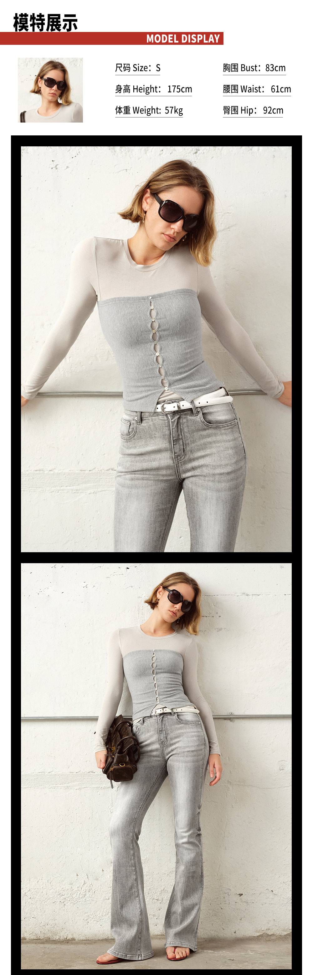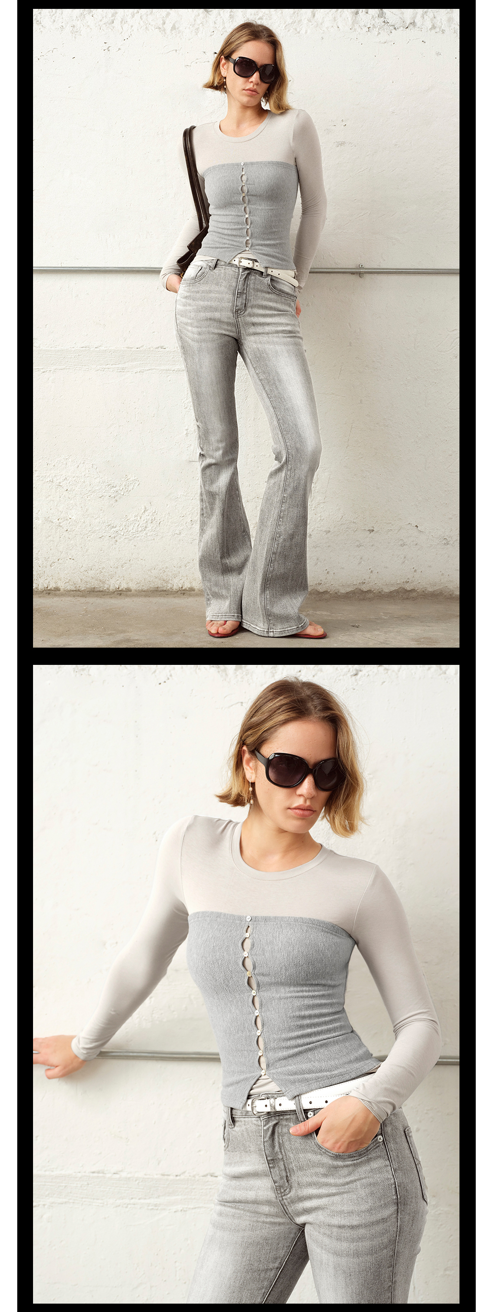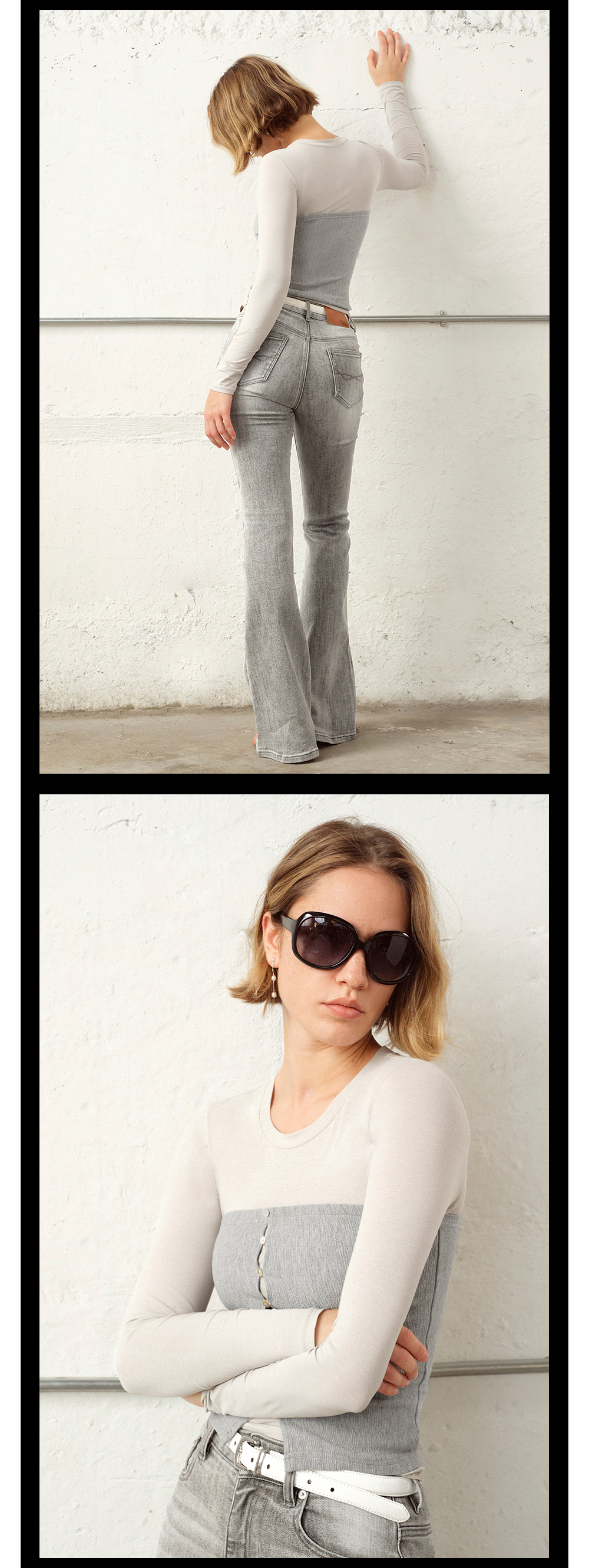TR她热 灰域 灰色撞色拼接假两件设计感修身弹力抹胸打底衫