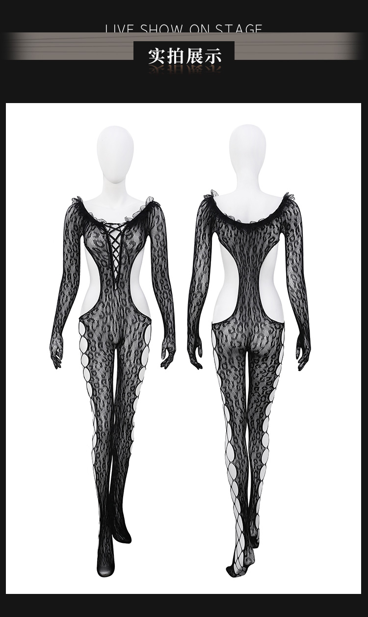 【情趣内衣】霏慕 性感豹纹露臀连身网袜ZY97
