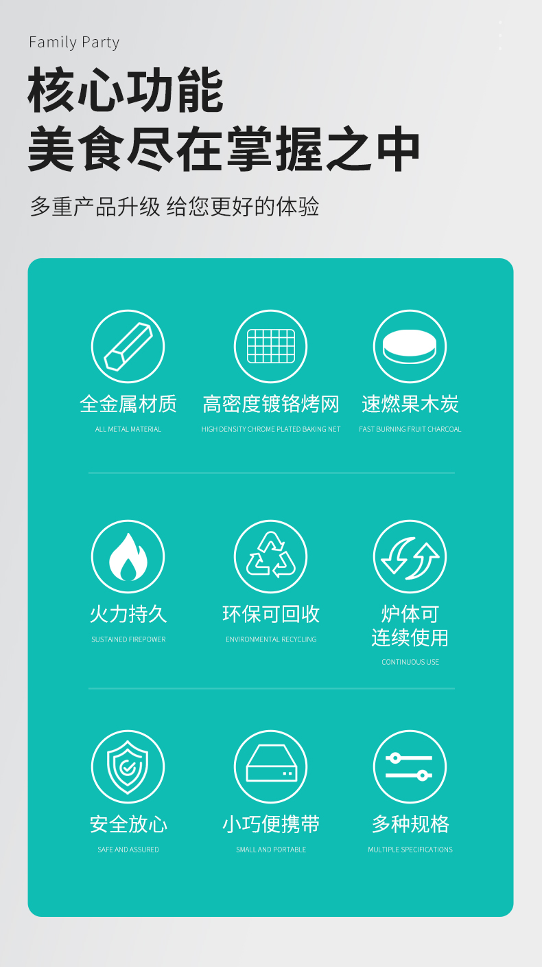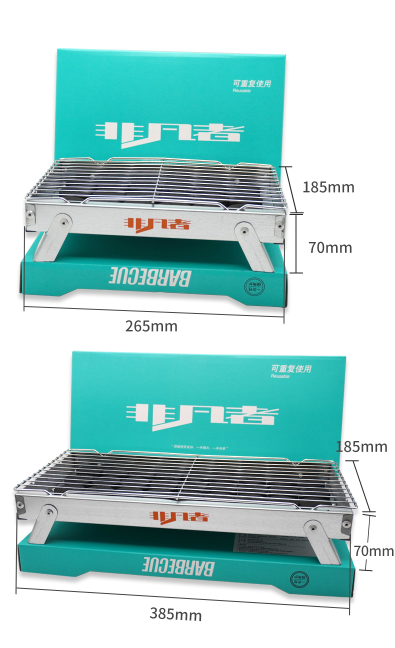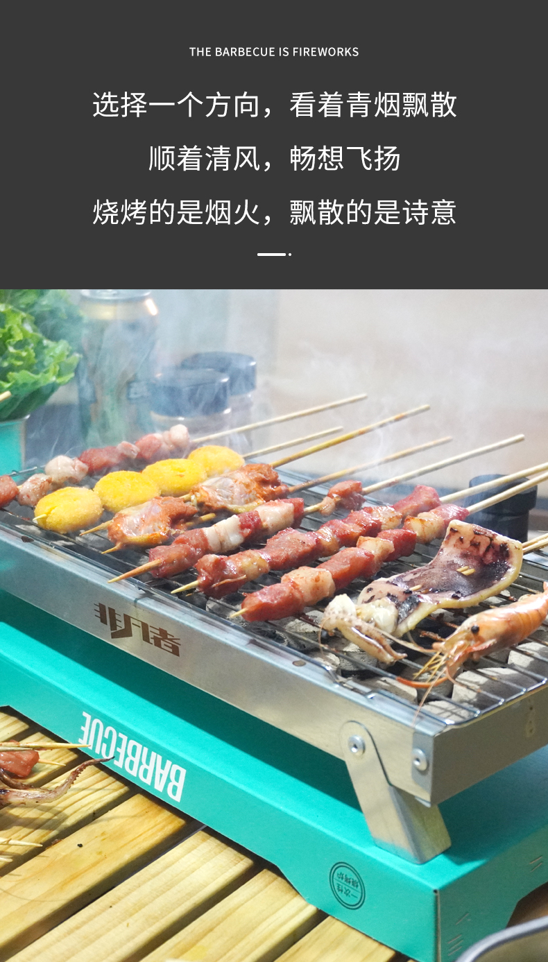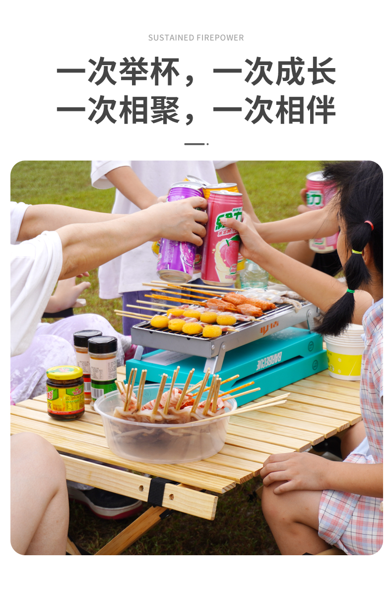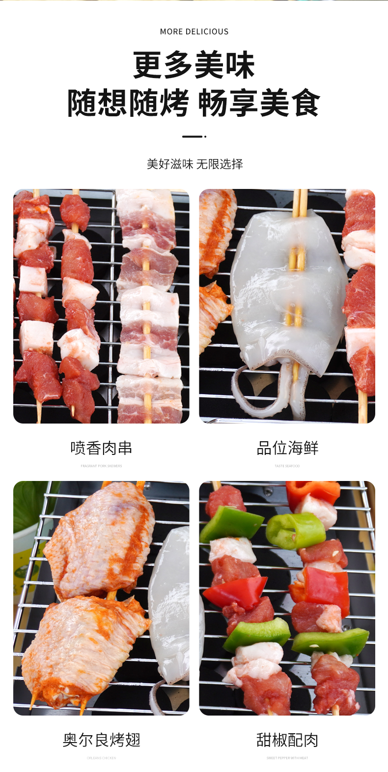 【烧烤神器】烤炉套餐桌面旅行烧烤架户外露营烧烤可携式木炭烤肉炉烧烤炉便捷烤肉野外烧烤工具小型烧烤架(金属烤炉+烤网+24块炭+油刷+碳夹+竹签1包(50根左右))265*185*70mm