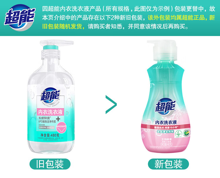 超能内衣洗液480g*2瓶