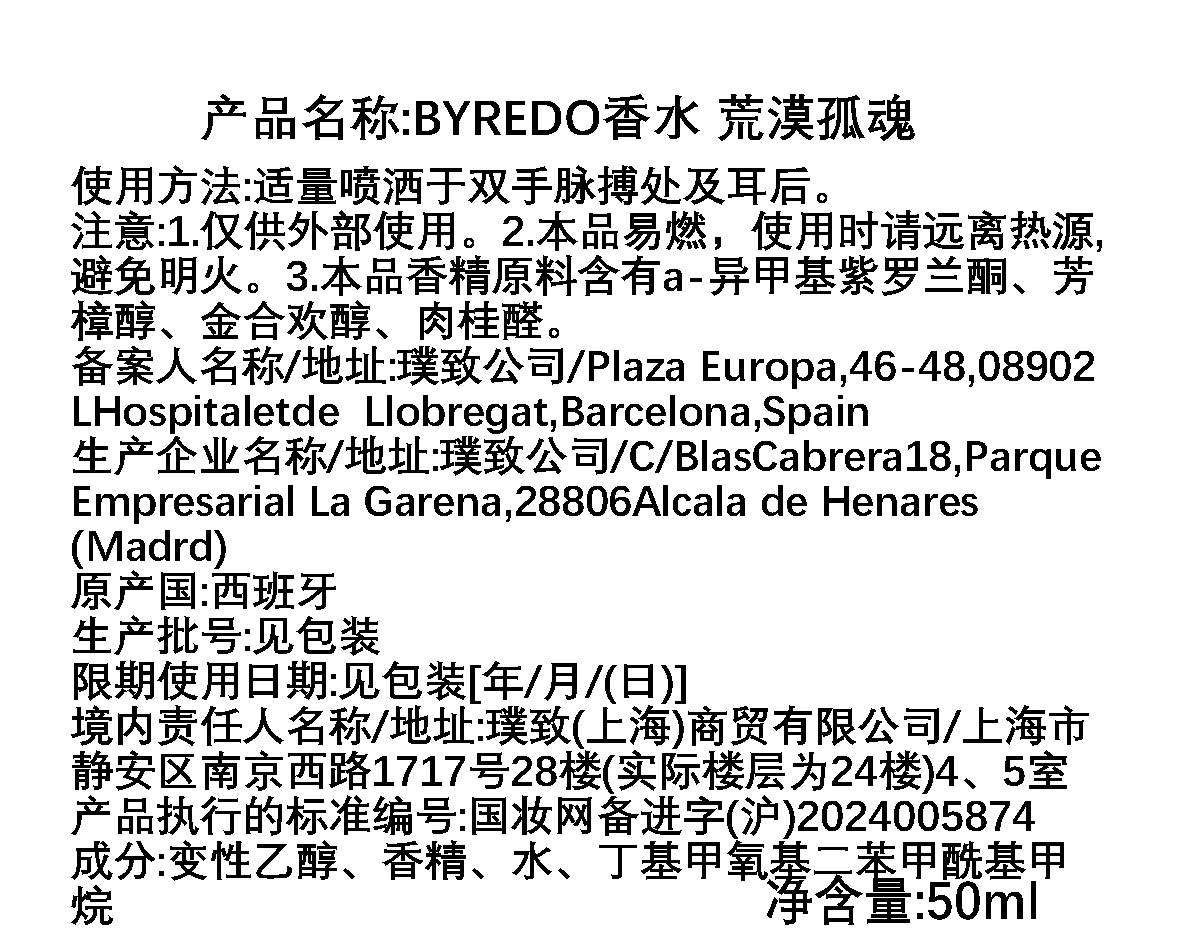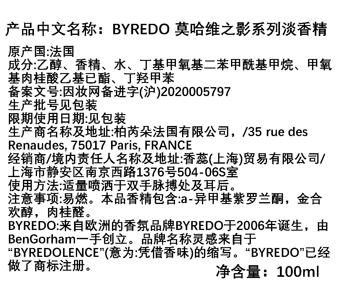 BYREDO百瑞德/柏芮朵 荒漠孤魂/莫哈维之影香水