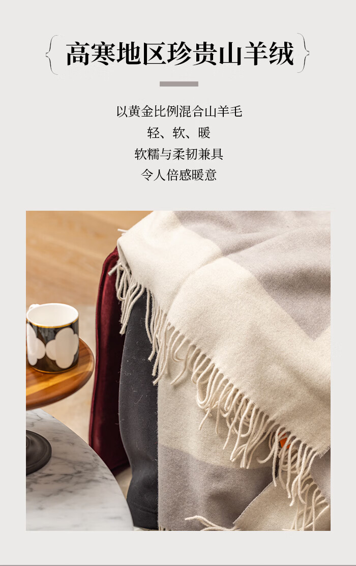 罗莱悦礼-罗莱 粹·经典羊毛羊绒盖毯(灰)