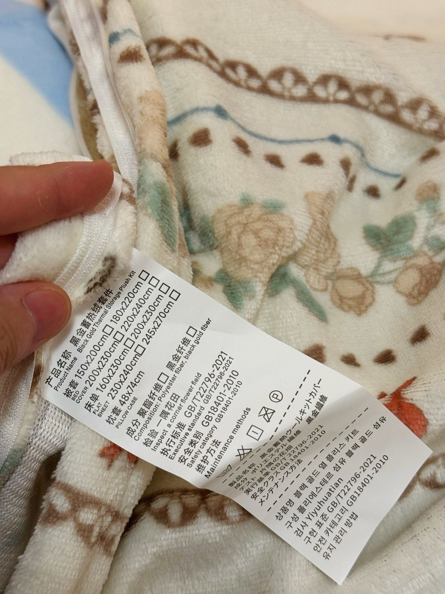 水洗标参考,不同的代工厂水洗标略有差异,为正常现象~黑金蓄热绒是在牛奶绒基础上再升级,水洗标材质分为:黑金蓄热绒/牛奶绒两种成分标,实际面料克重和使用效果一样。