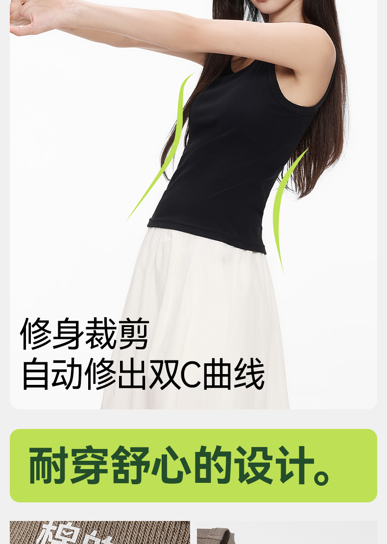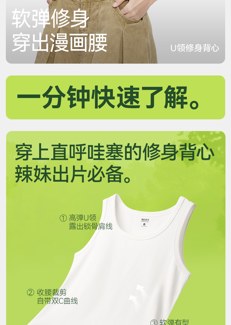 「棉的美学」白色U领打底吊带背心女春夏季2025新款内搭外穿上衣