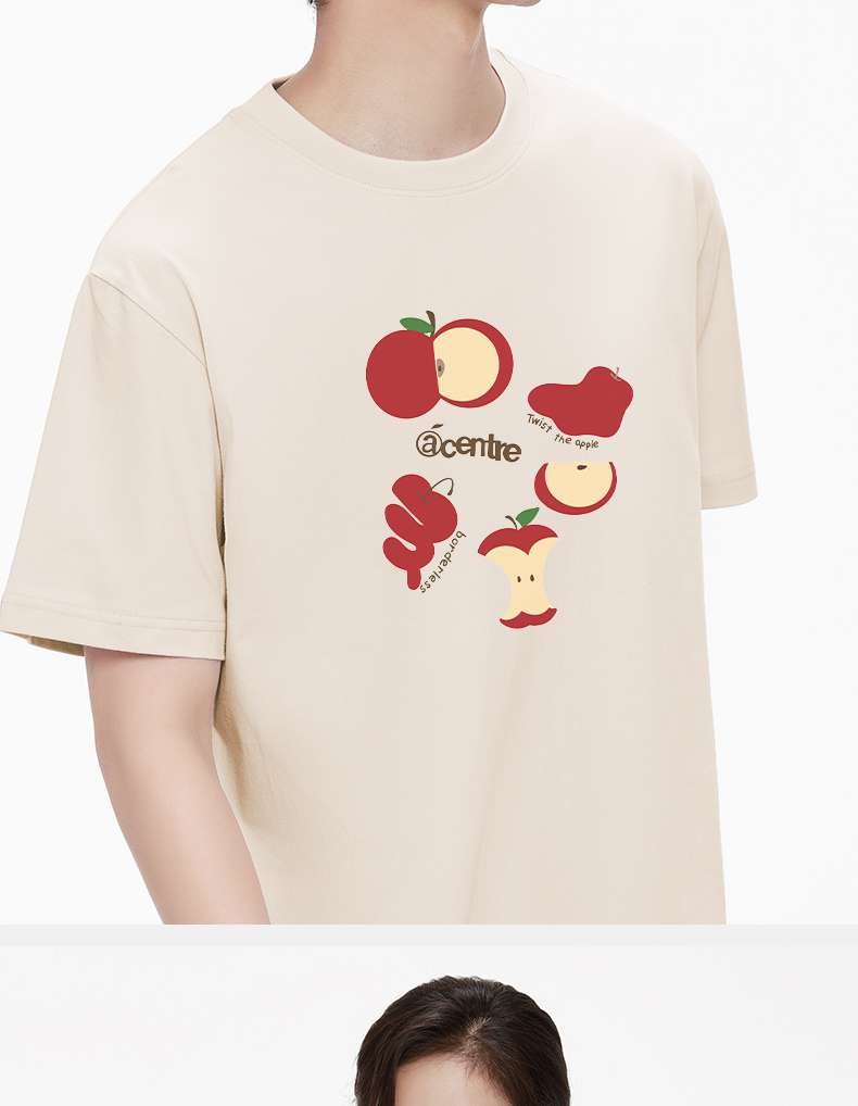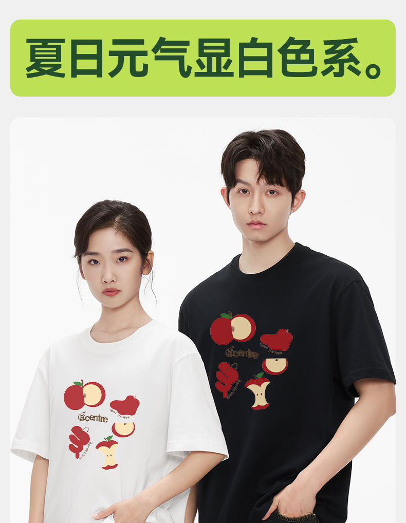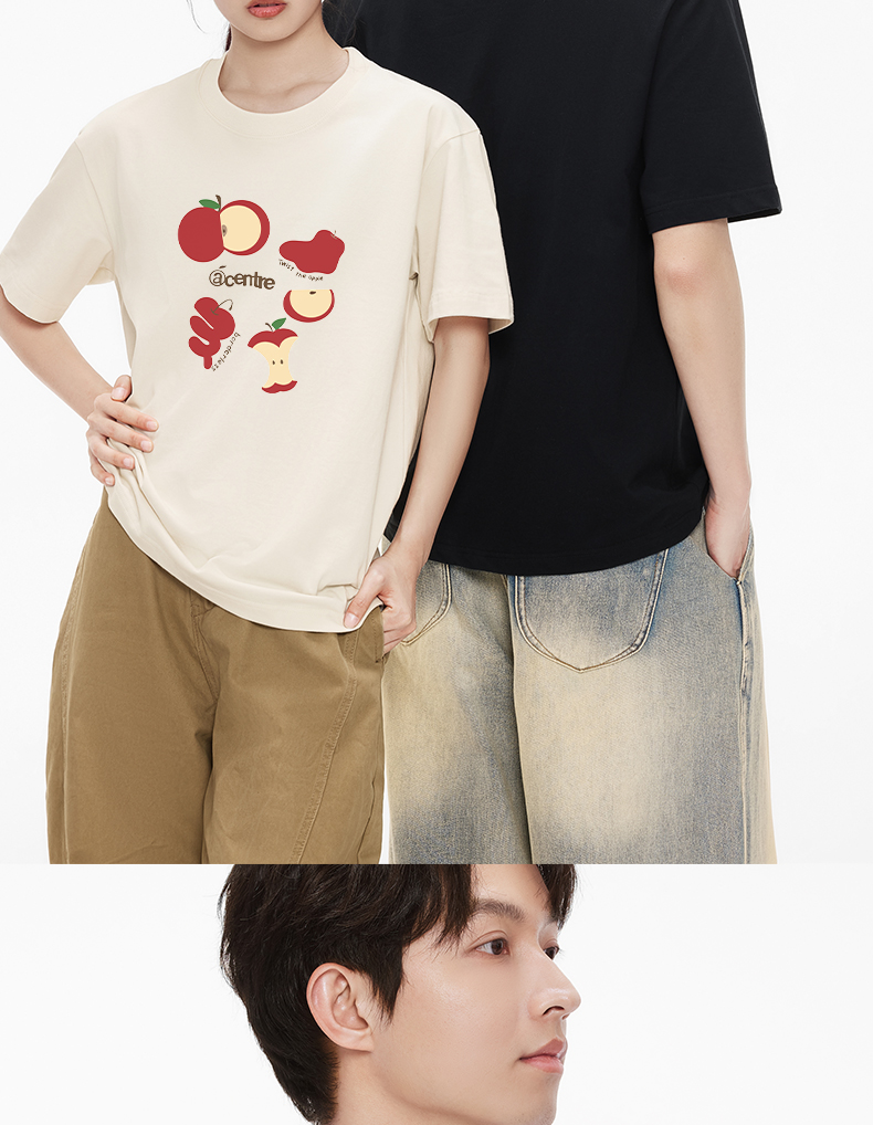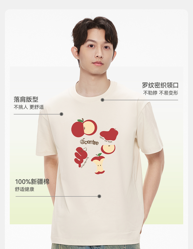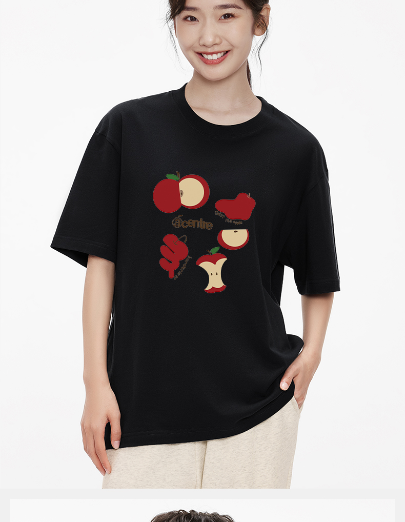 「棉的美学」夏季纯棉新款苹果印花T恤宽松百搭活力清爽短袖上衣
