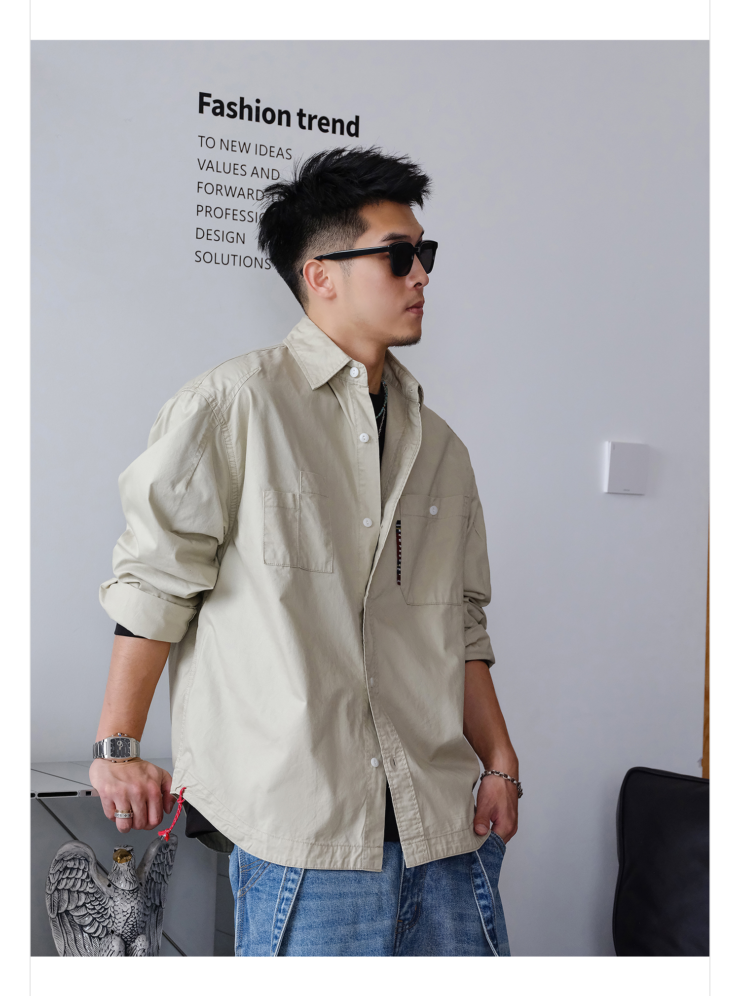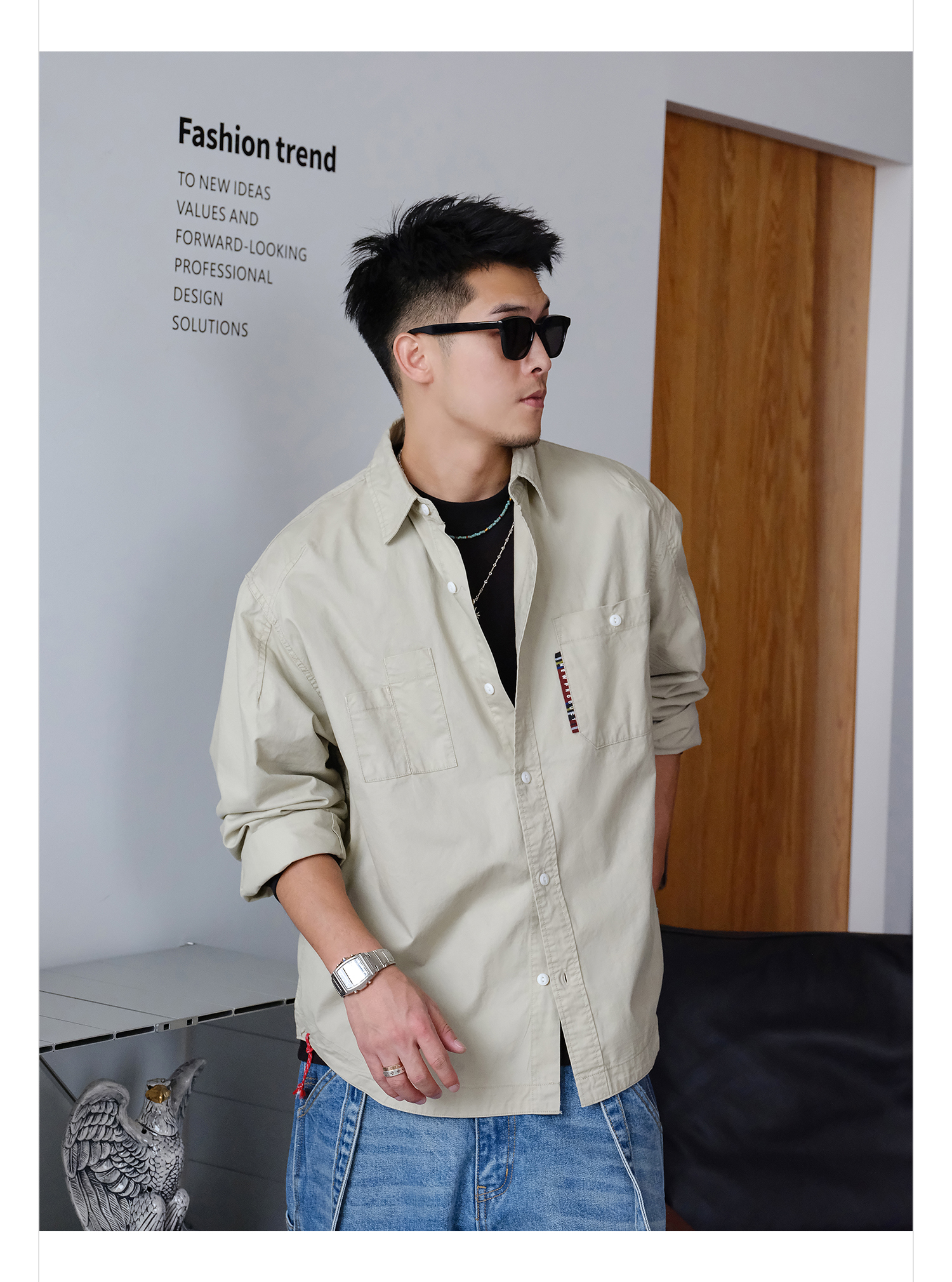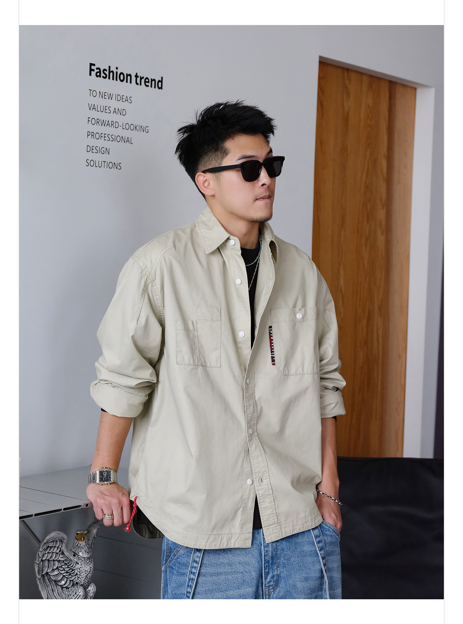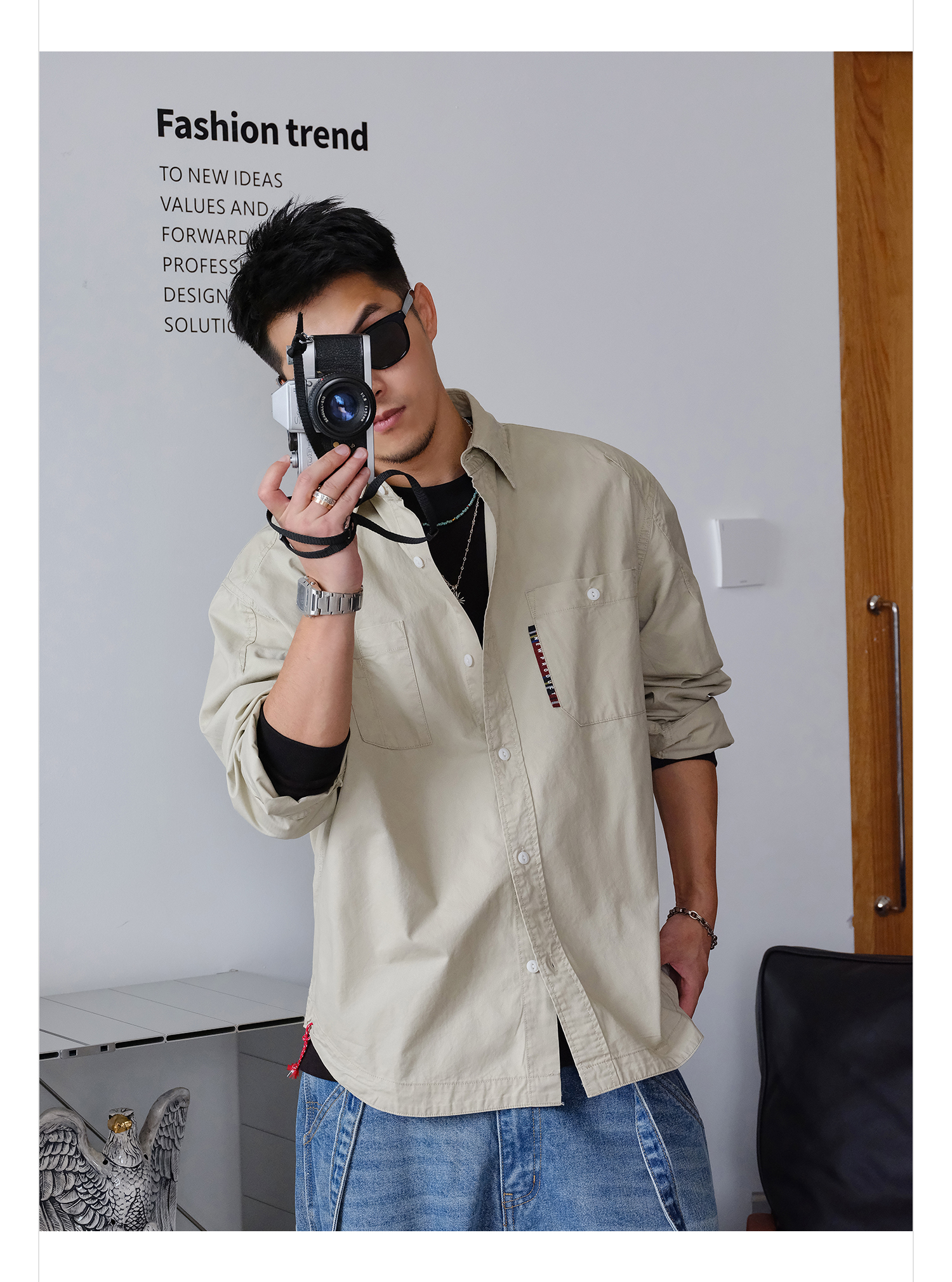 徐太浪日系复古设计感红绳长袖衬衫男2025新款秋季纯棉休闲衬衣潮