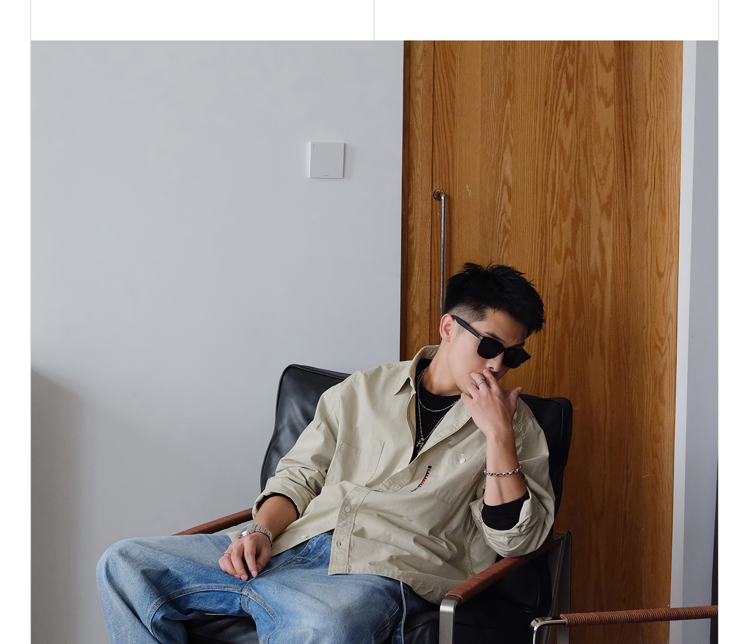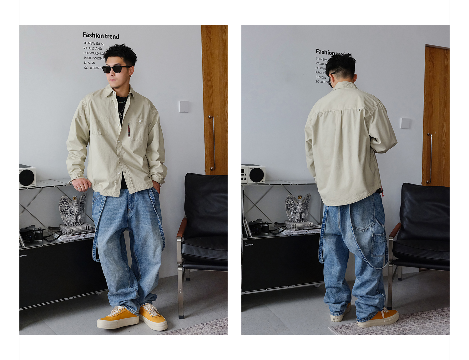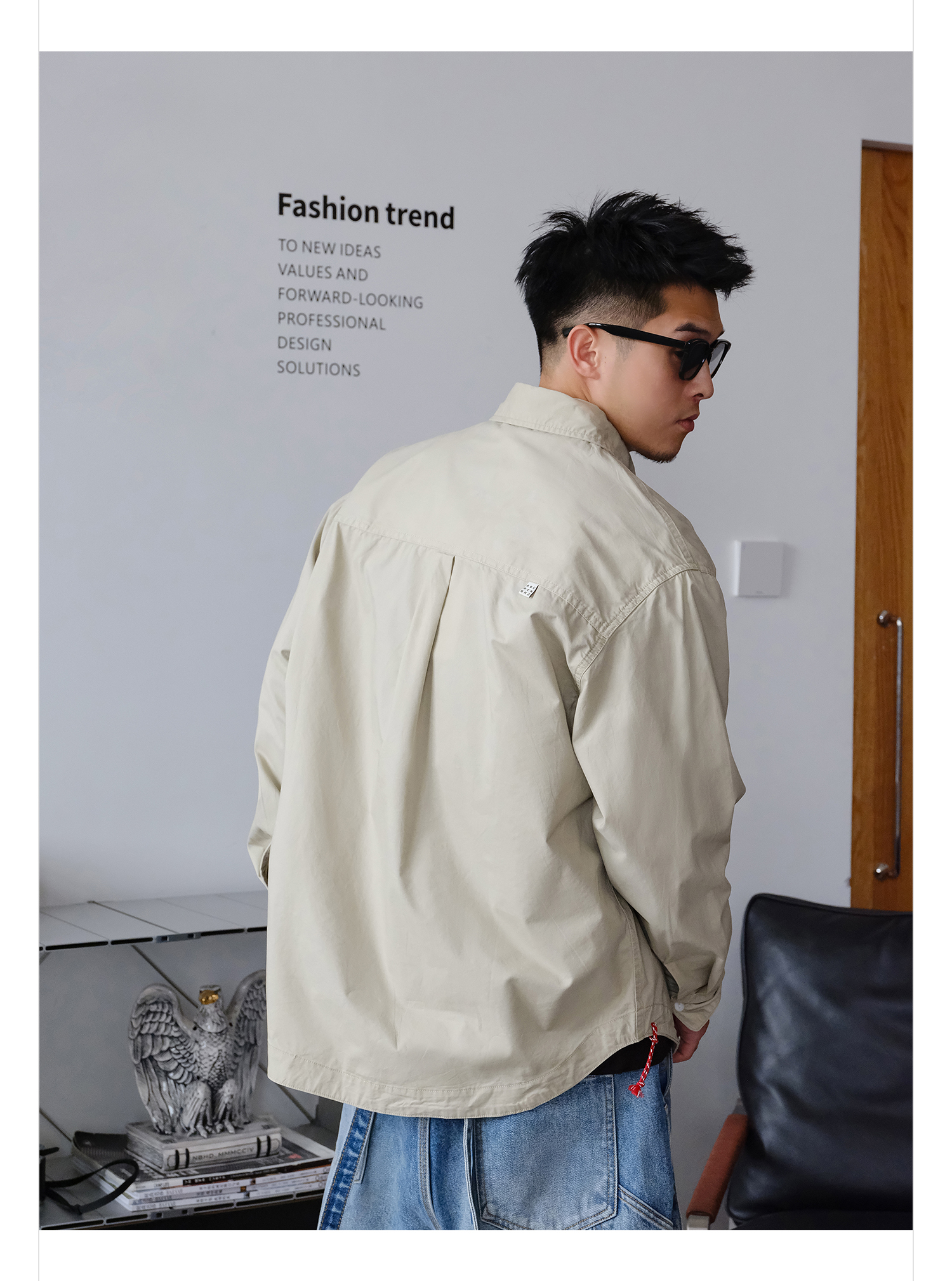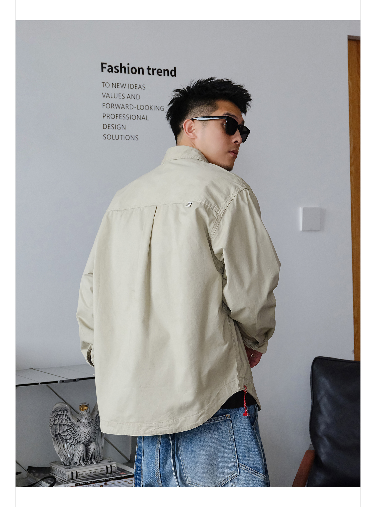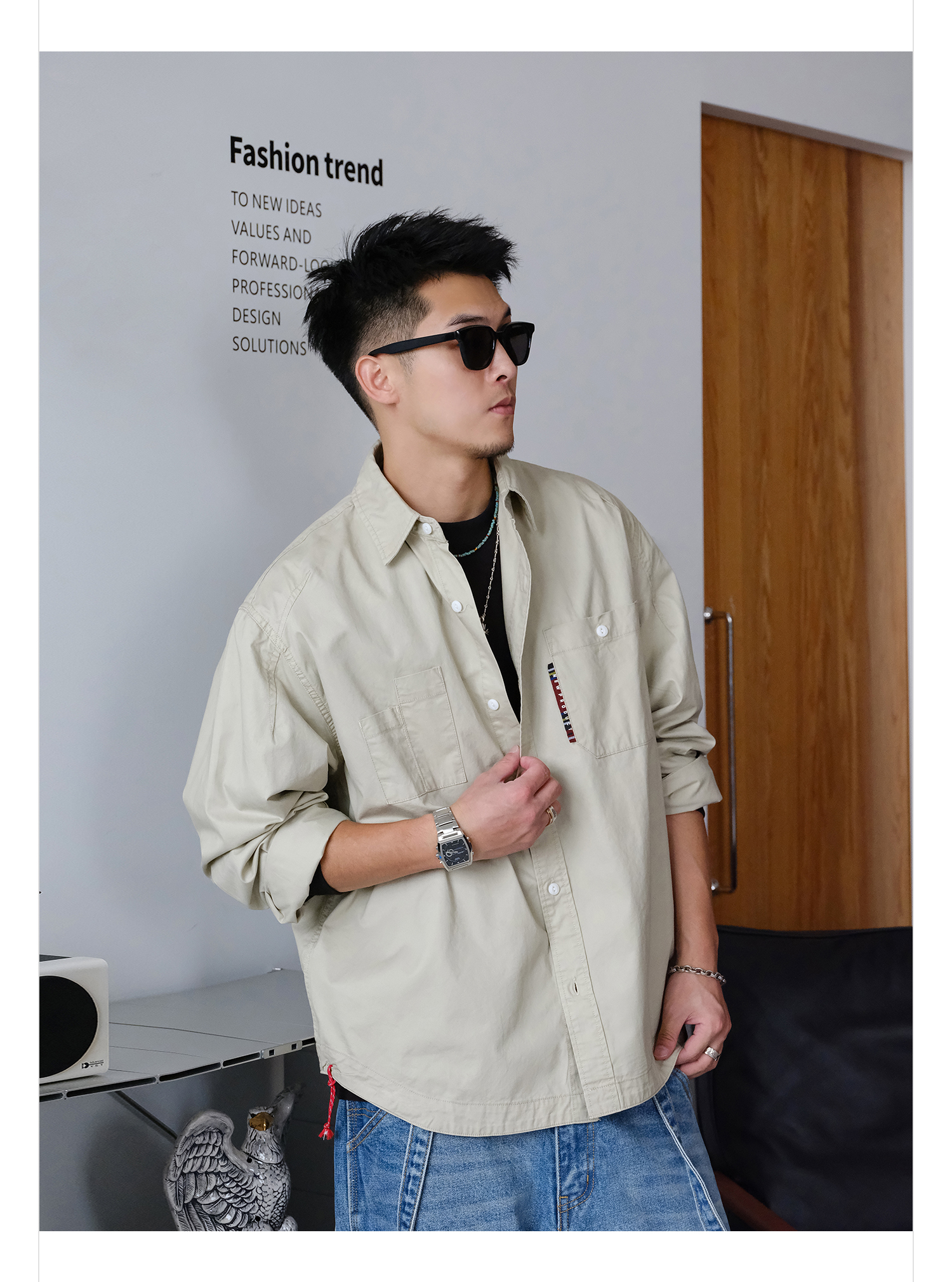 徐太浪日系复古设计感红绳长袖衬衫男2025新款秋季纯棉休闲衬衣潮