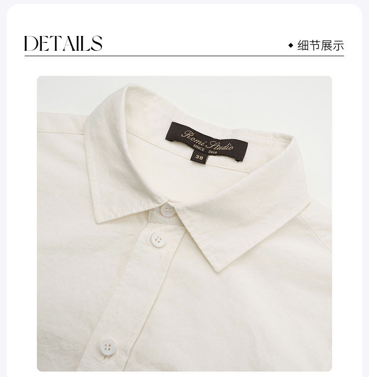 ROMI STUDIO“Cozy Design”棉质自然皱感宽松翻领休闲衬衣24SST080