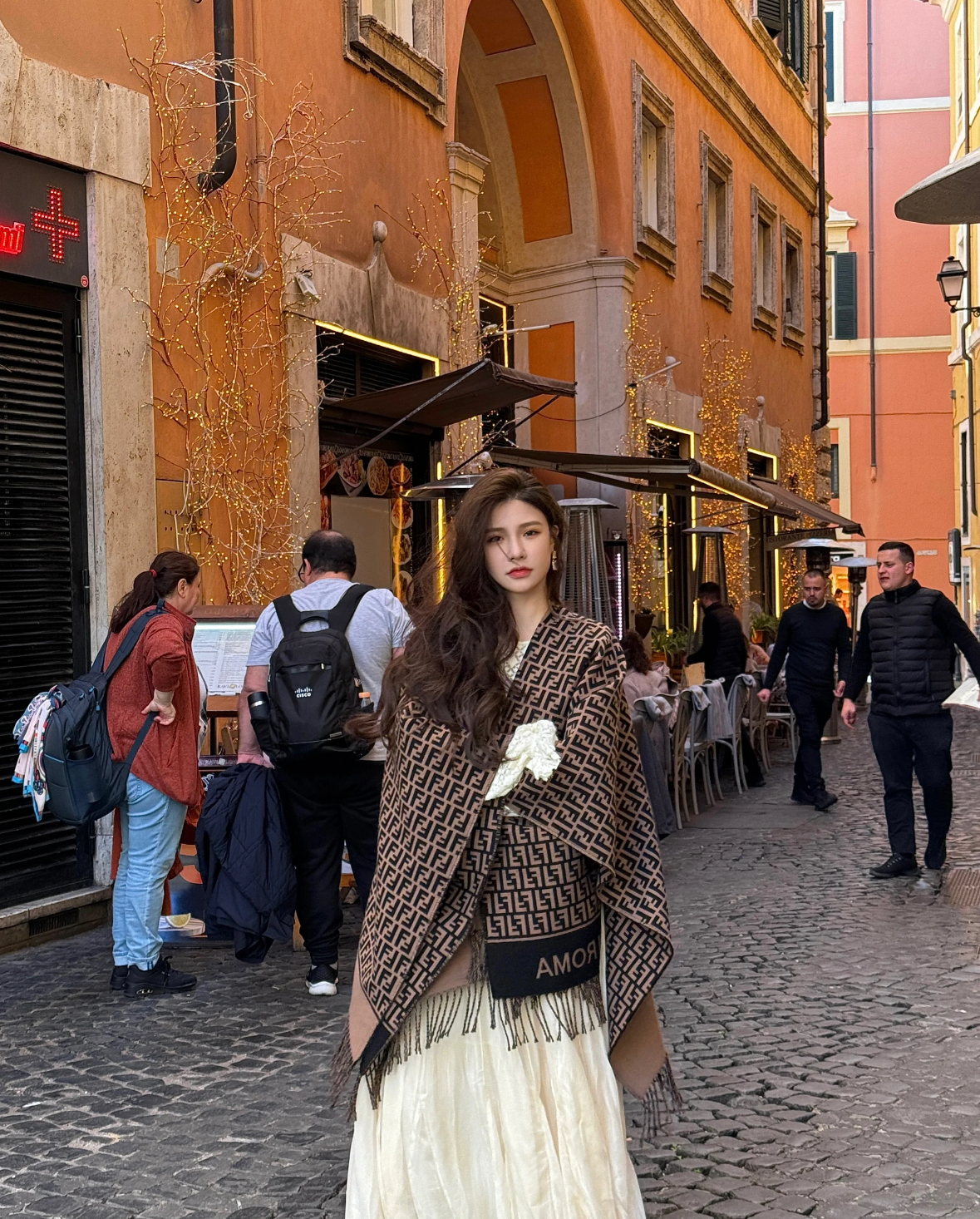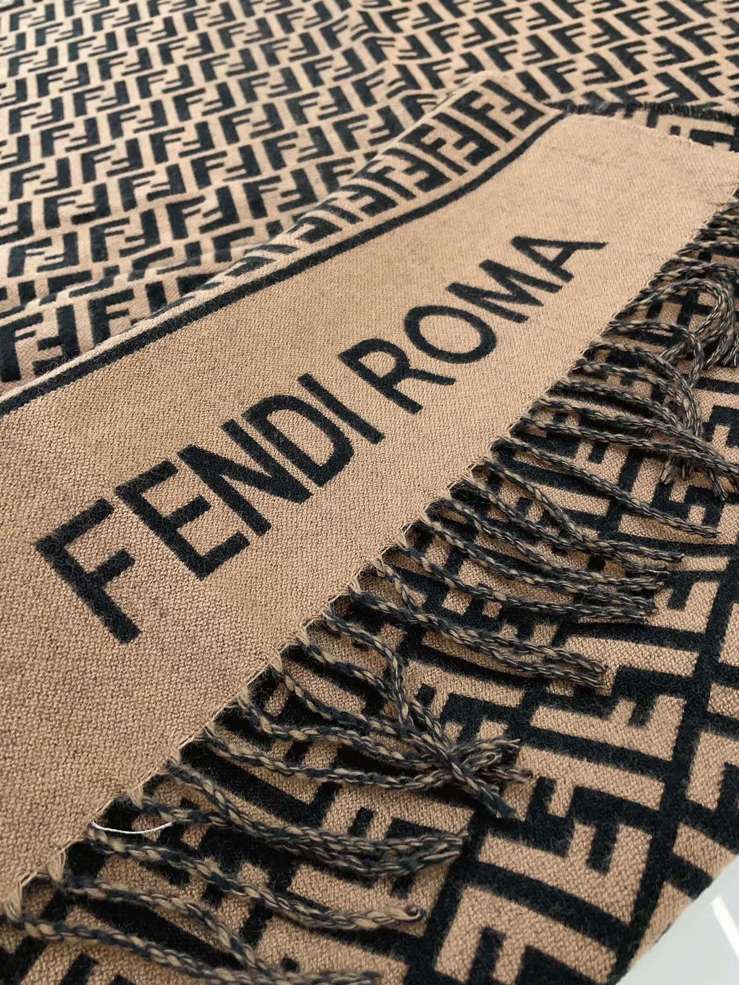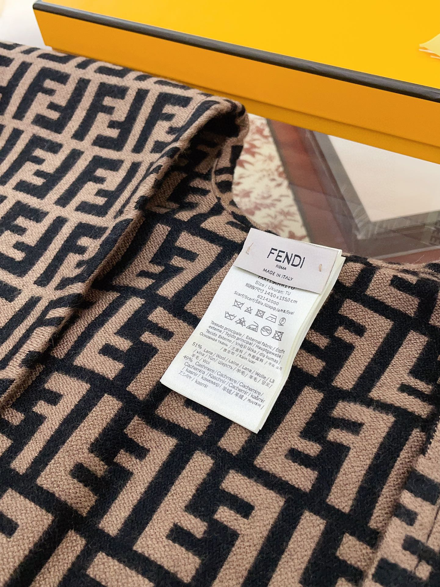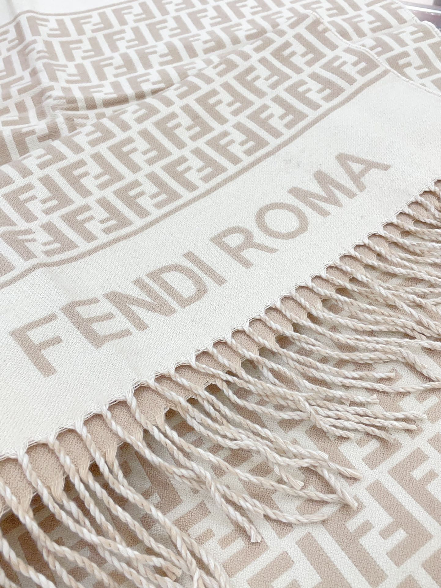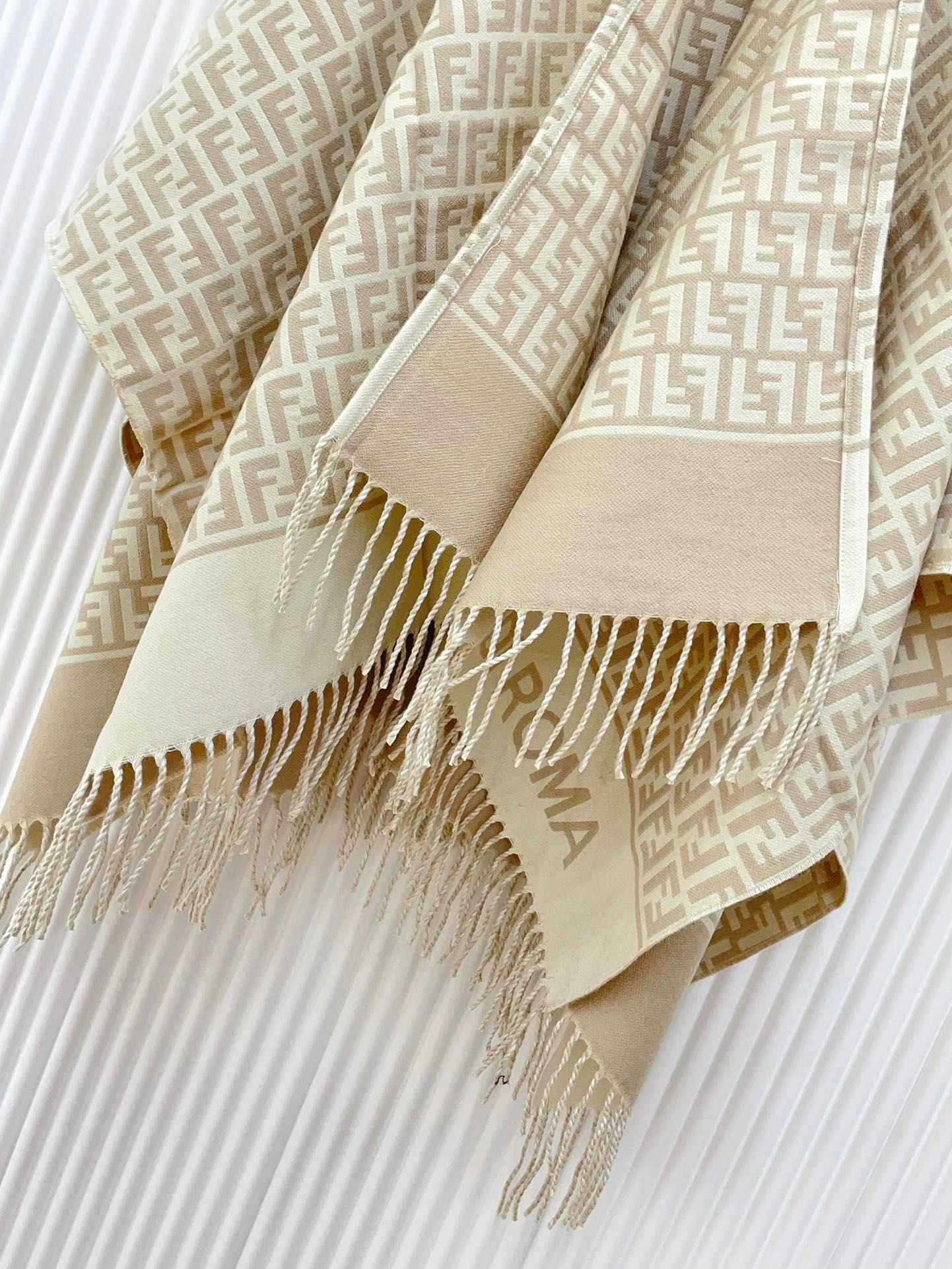 上身效果气场非常强大!纯手工精梳处理。绝对是重磅!清晰明了的FF字母,毛羽紧致分明,版型更是非常有型,用手机拍出来都能惊艳全场 高密度精工细作 大牌的东西真的非常考究,匠心之作。规格:95%羊毛5%真丝 ,140*140cm