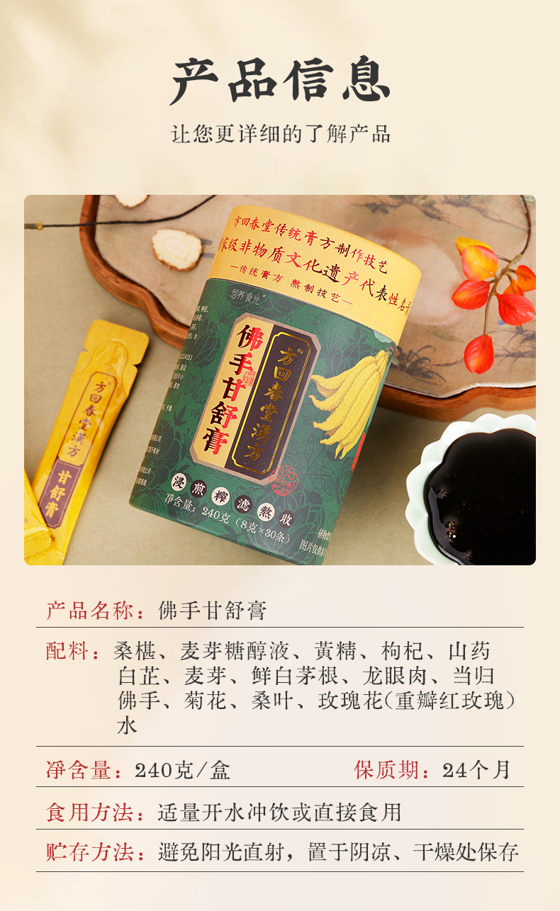 方回春堂漢方佛手甘舒膏 精选本草 传统膏方 非遗技艺
