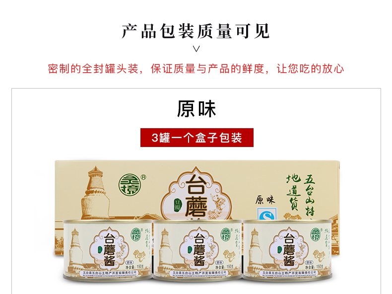 五台山台蘑酱150g*3罐装原味蘑菇酱拌饭酱下饭酱拌面酱 山西特产
