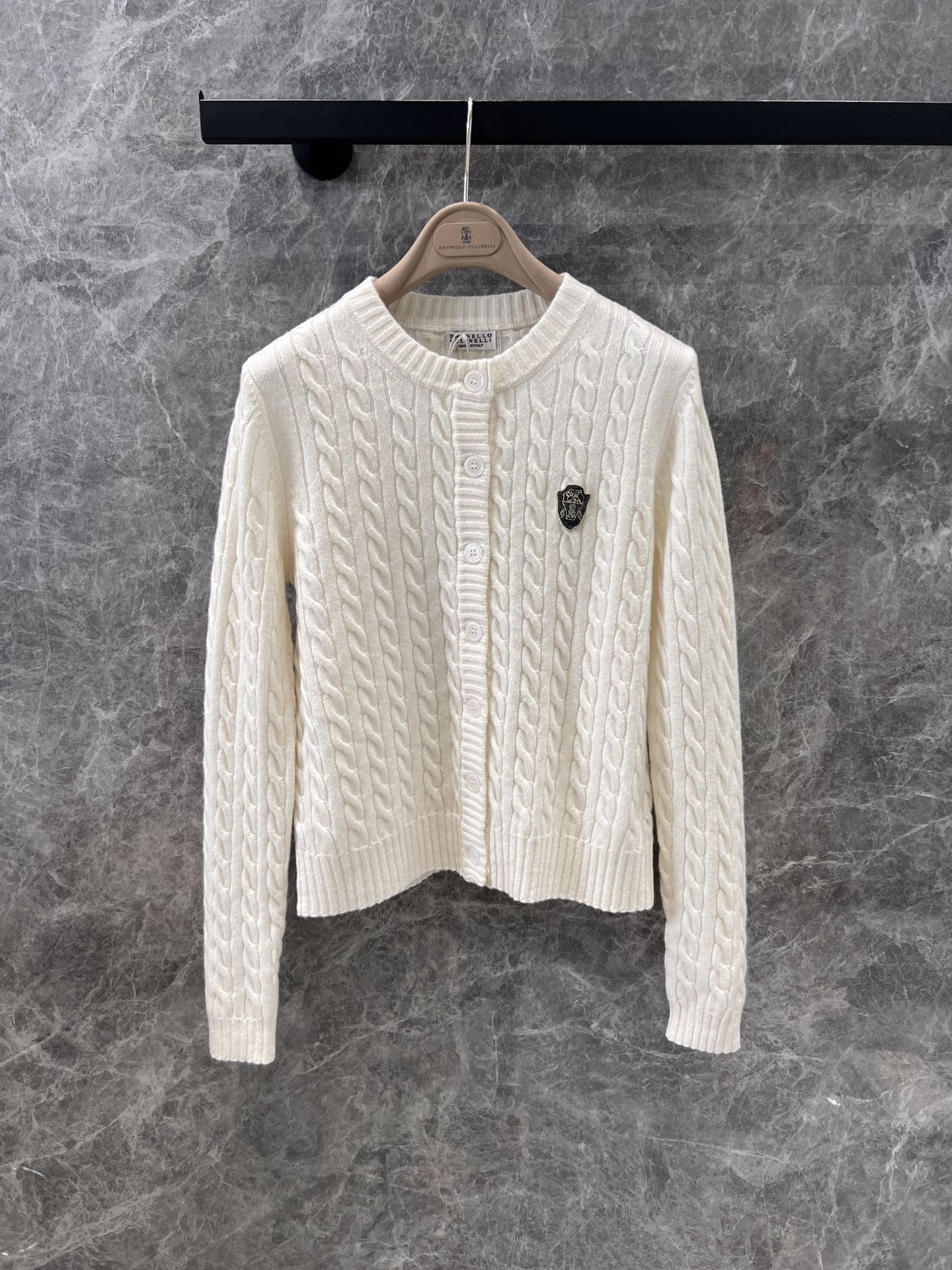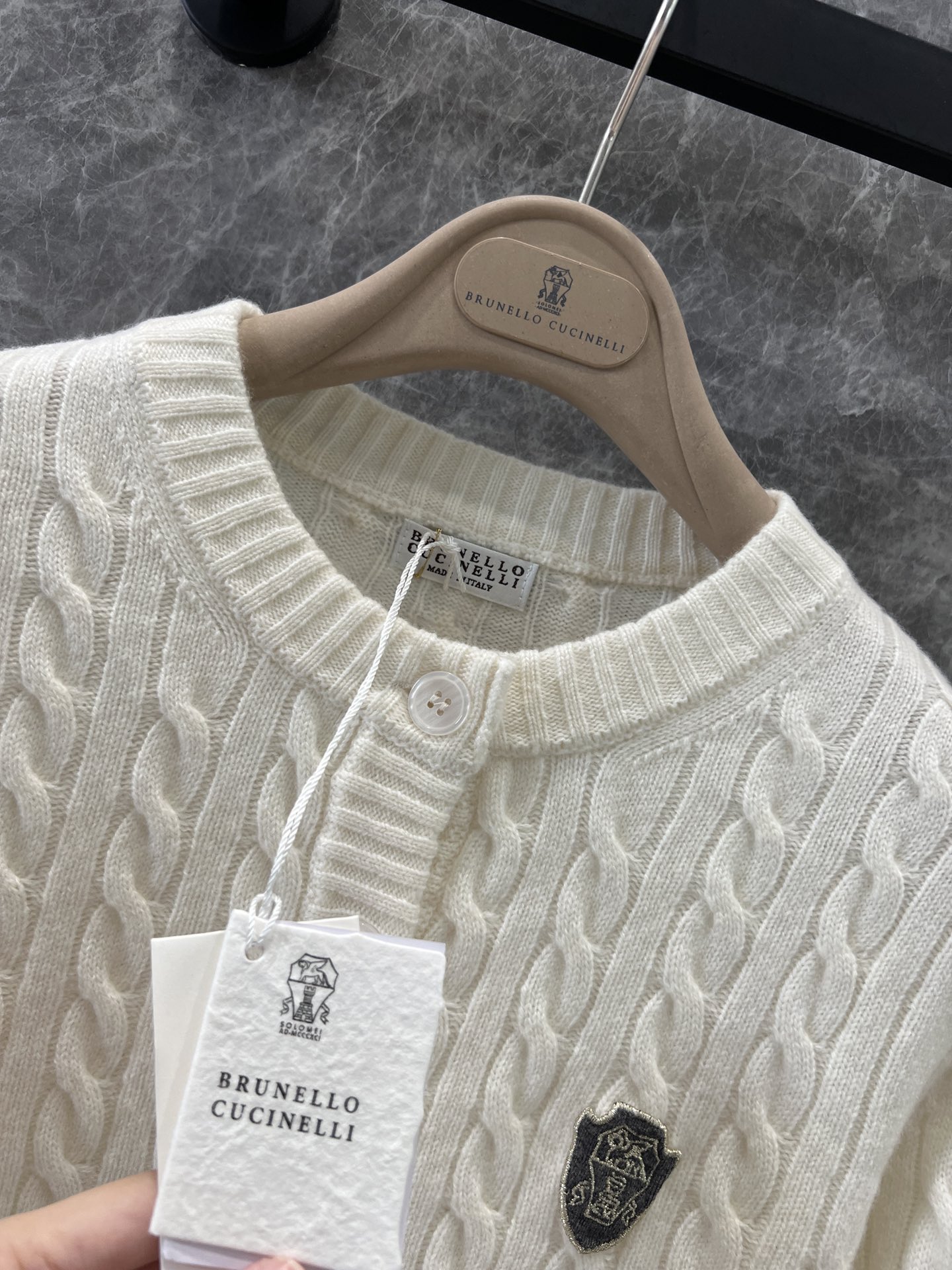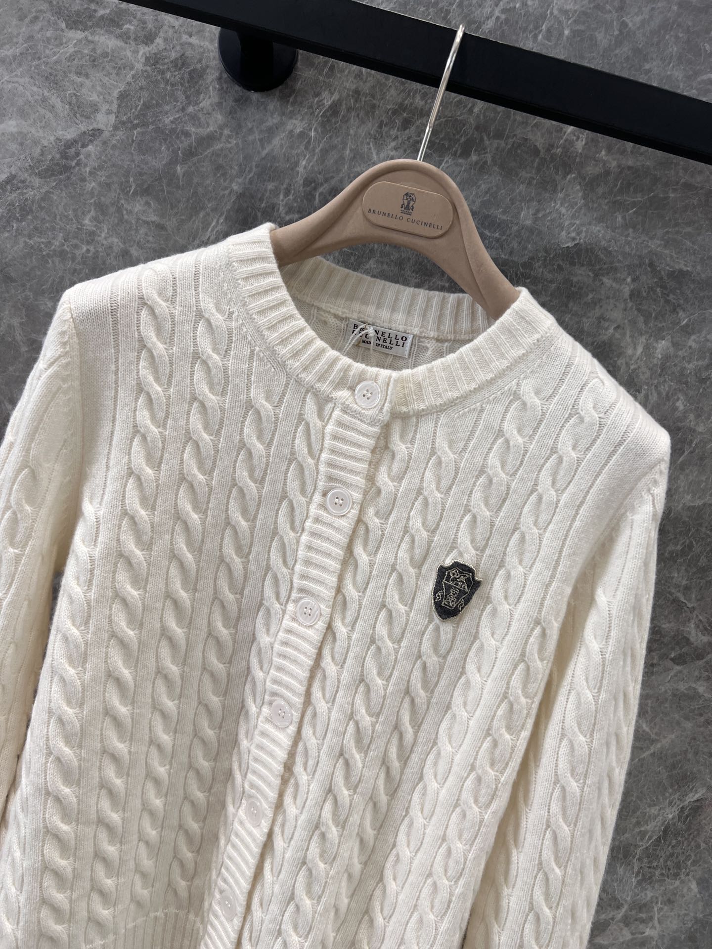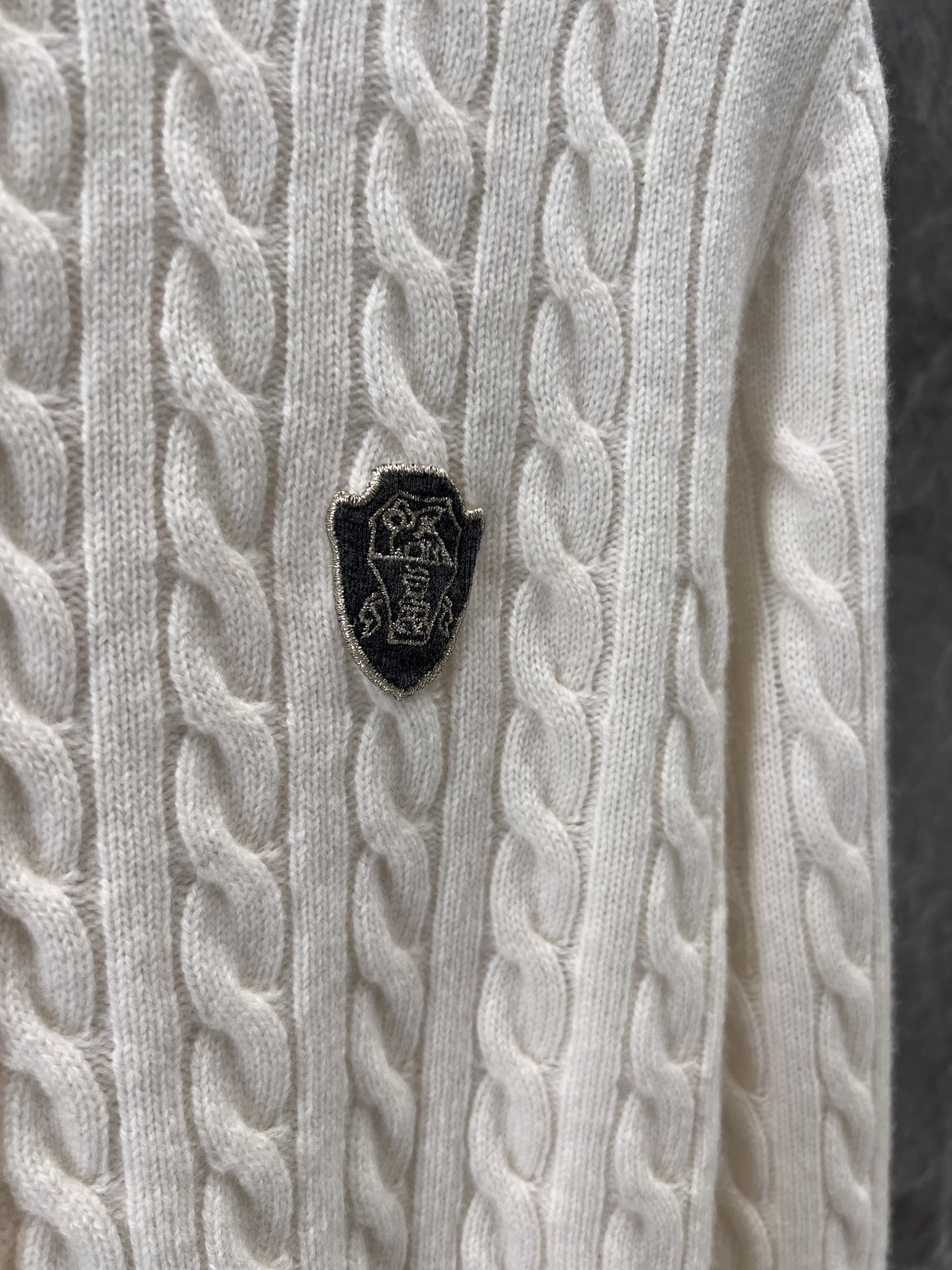Brunello Cucin*lli 24AW秋冬新款 老钱风金丝徽章绞花羊绒修身开衫丨⚠独家高版出品!