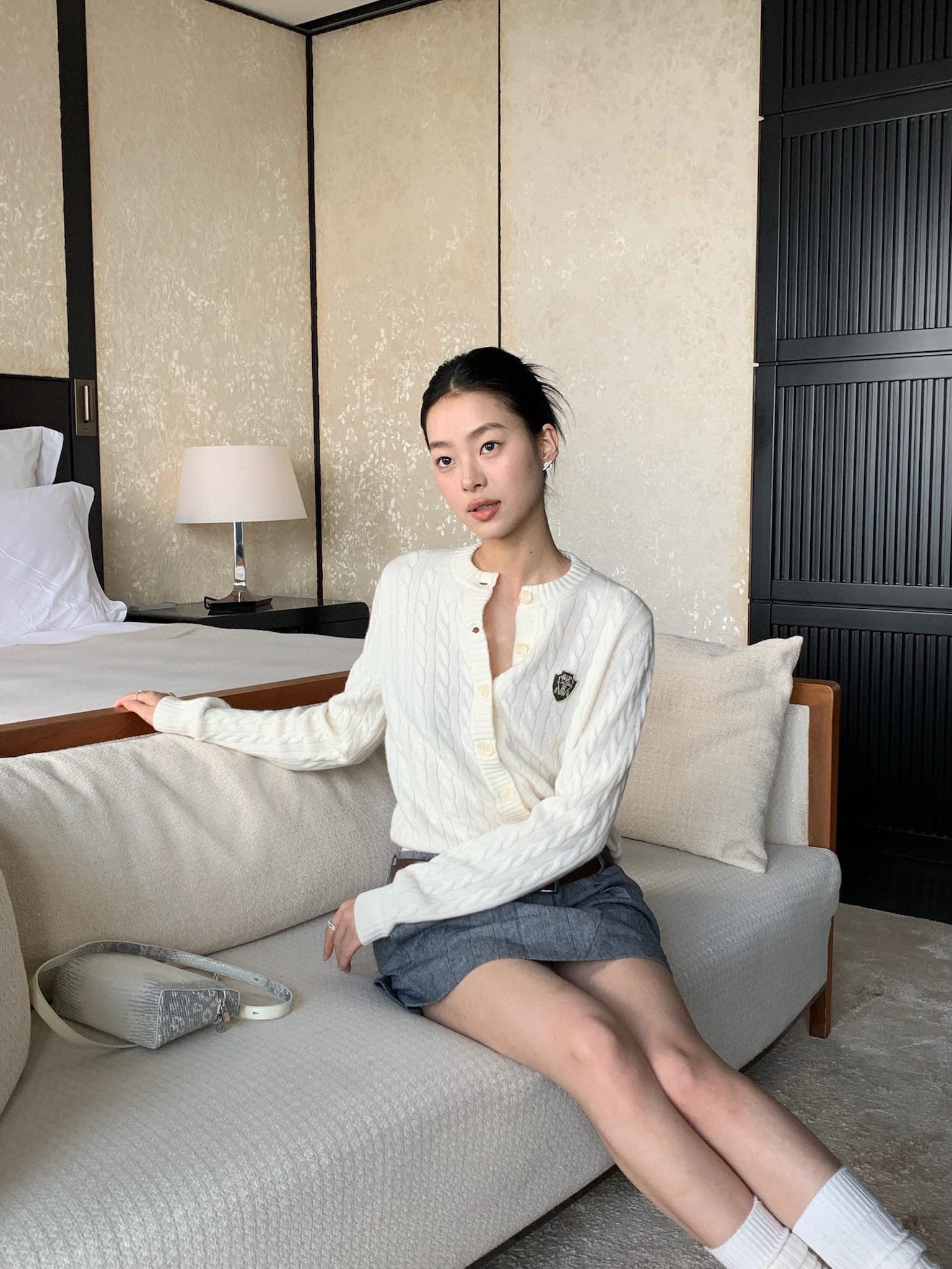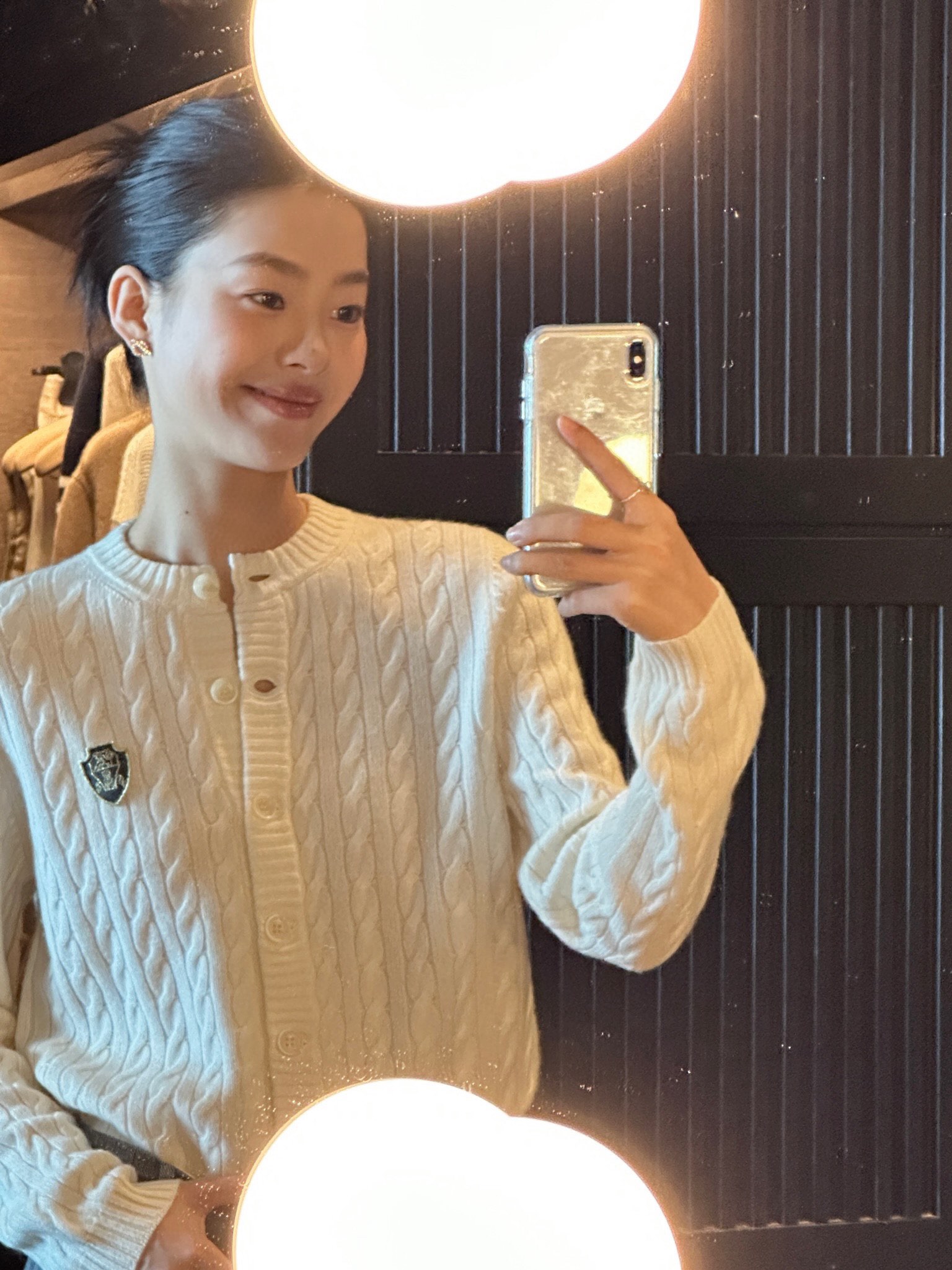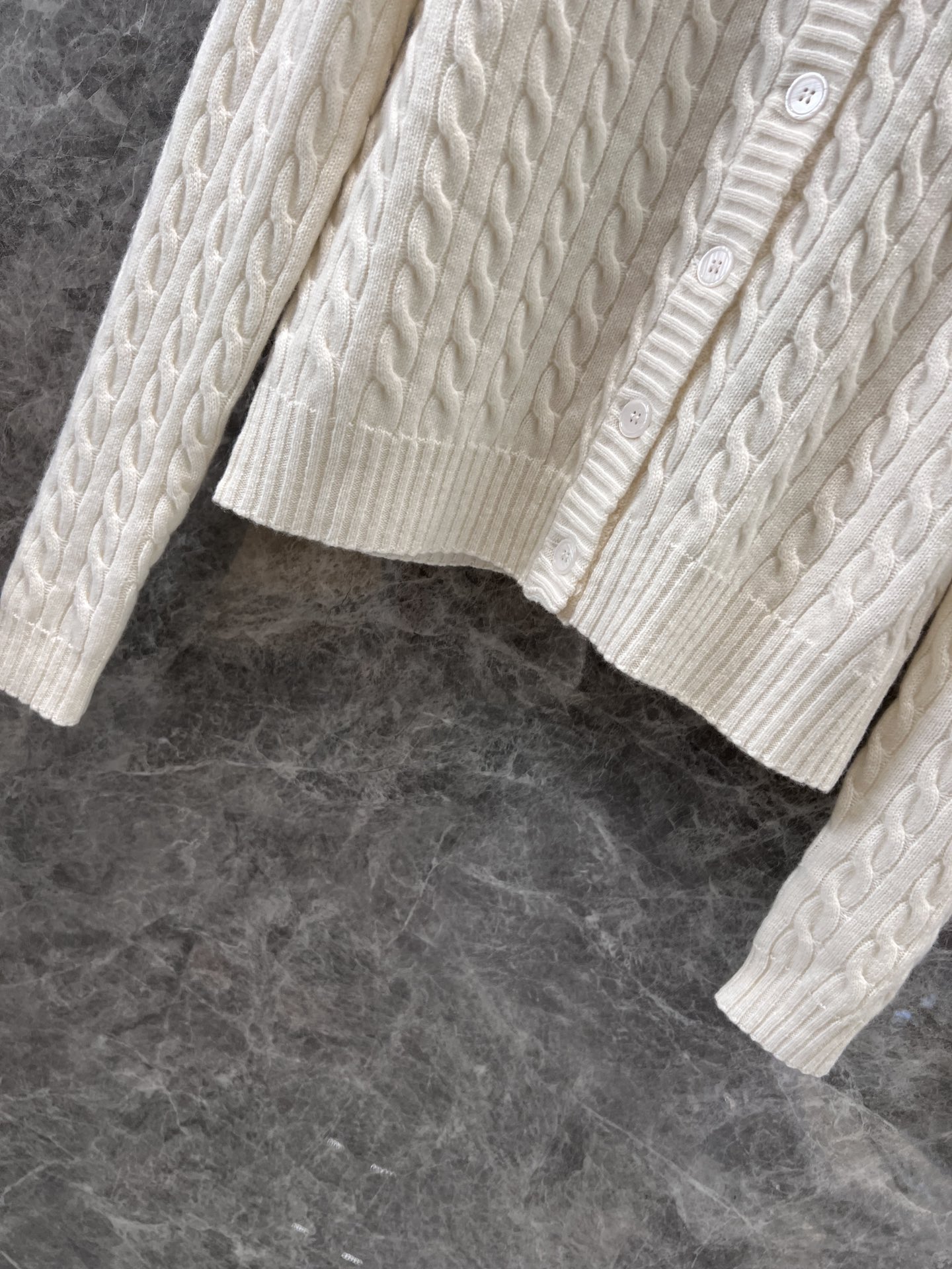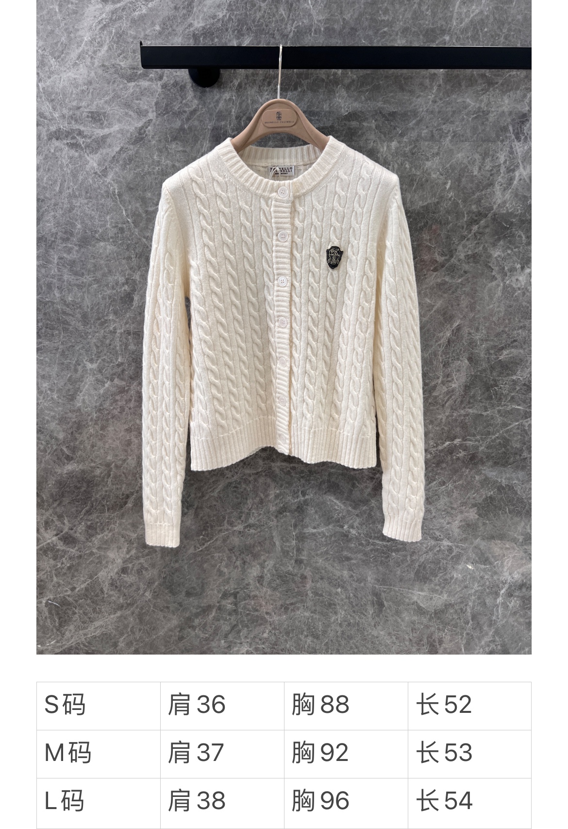 Brunello Cucin*lli 24AW秋冬新款 老钱风金丝徽章绞花羊绒修身开衫丨⚠独家高版出品!
