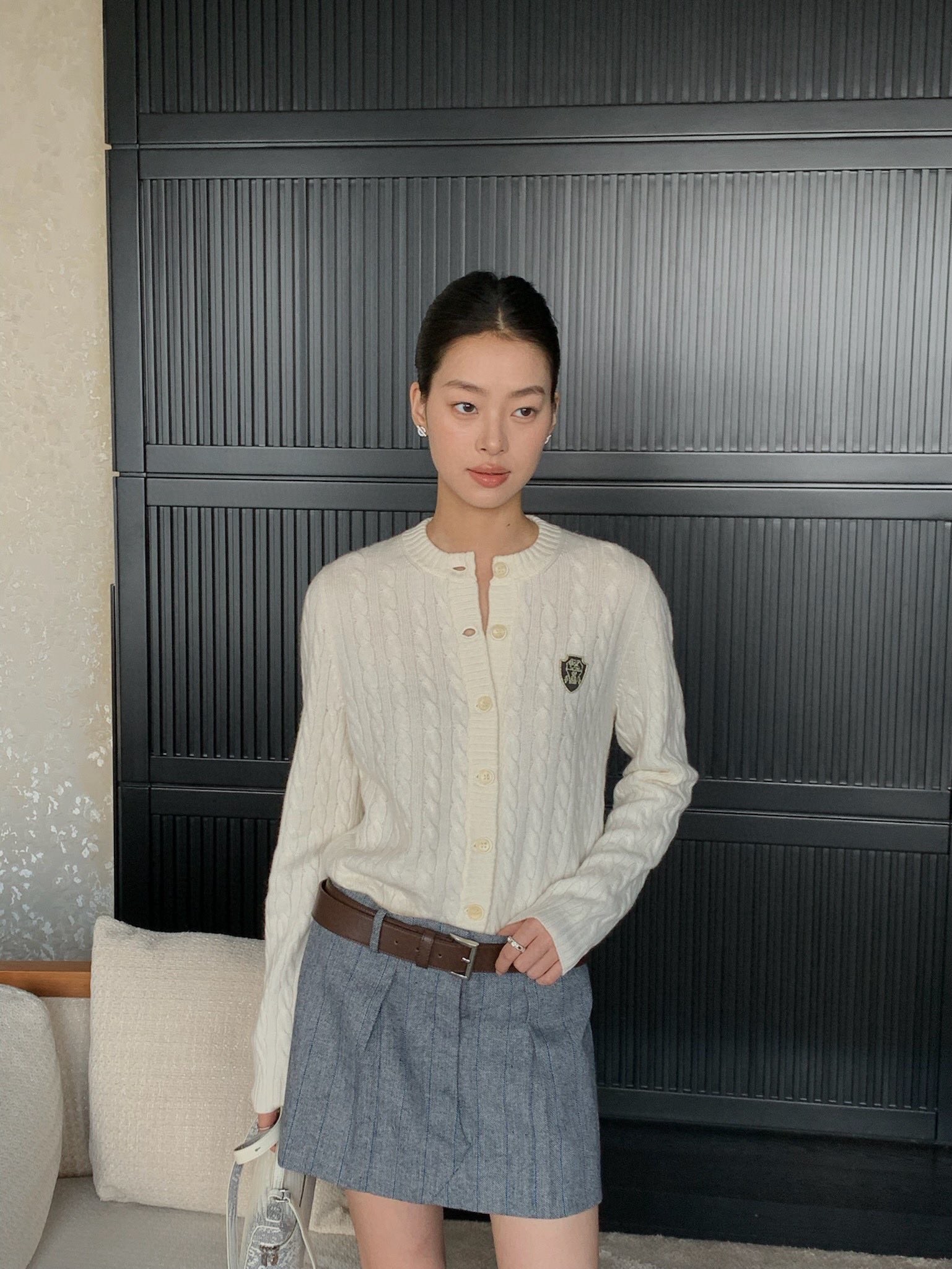 BrunelloCucin*lli24新款老钱风金丝徽章绞花修身羊绒针织开衫(UY*DQJB)