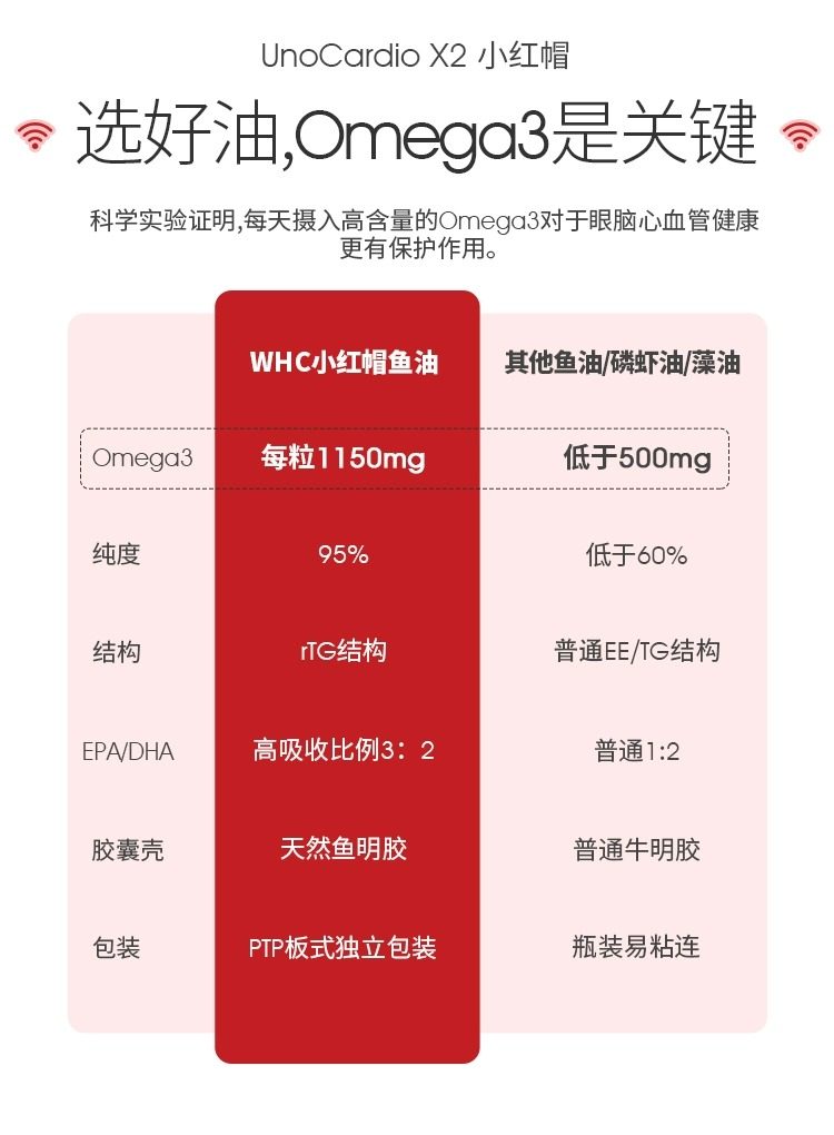 比利时进口 WHC小红帽深海鱼油rTG结构95高纯度Omega3呵护眼脑