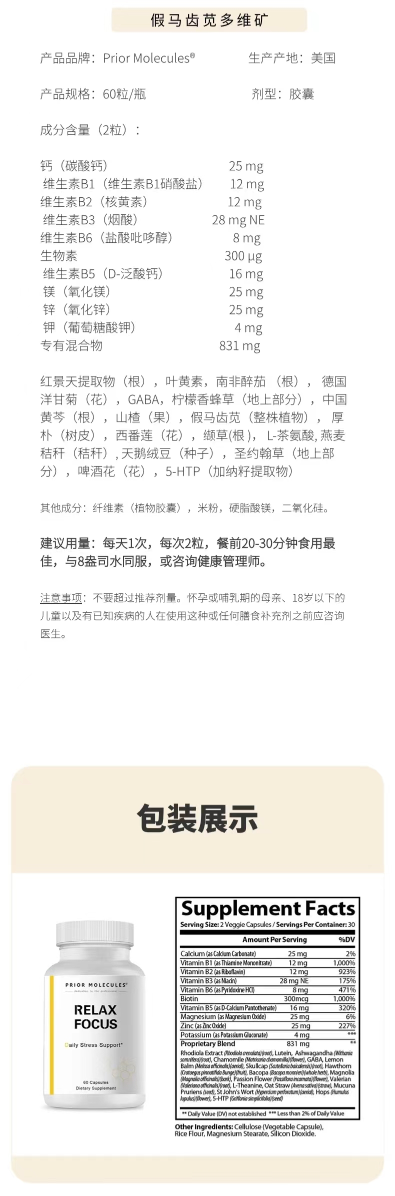 Prior Molecules 假马齿笕多维矿 RELAX FOCUS 60粒/瓶 05/25