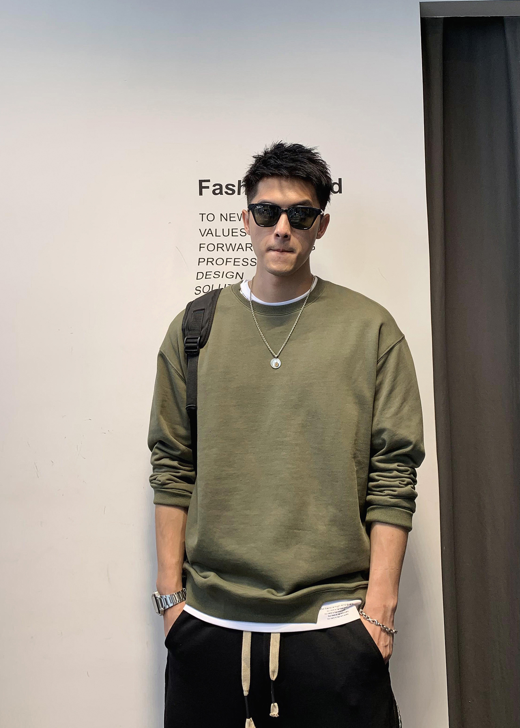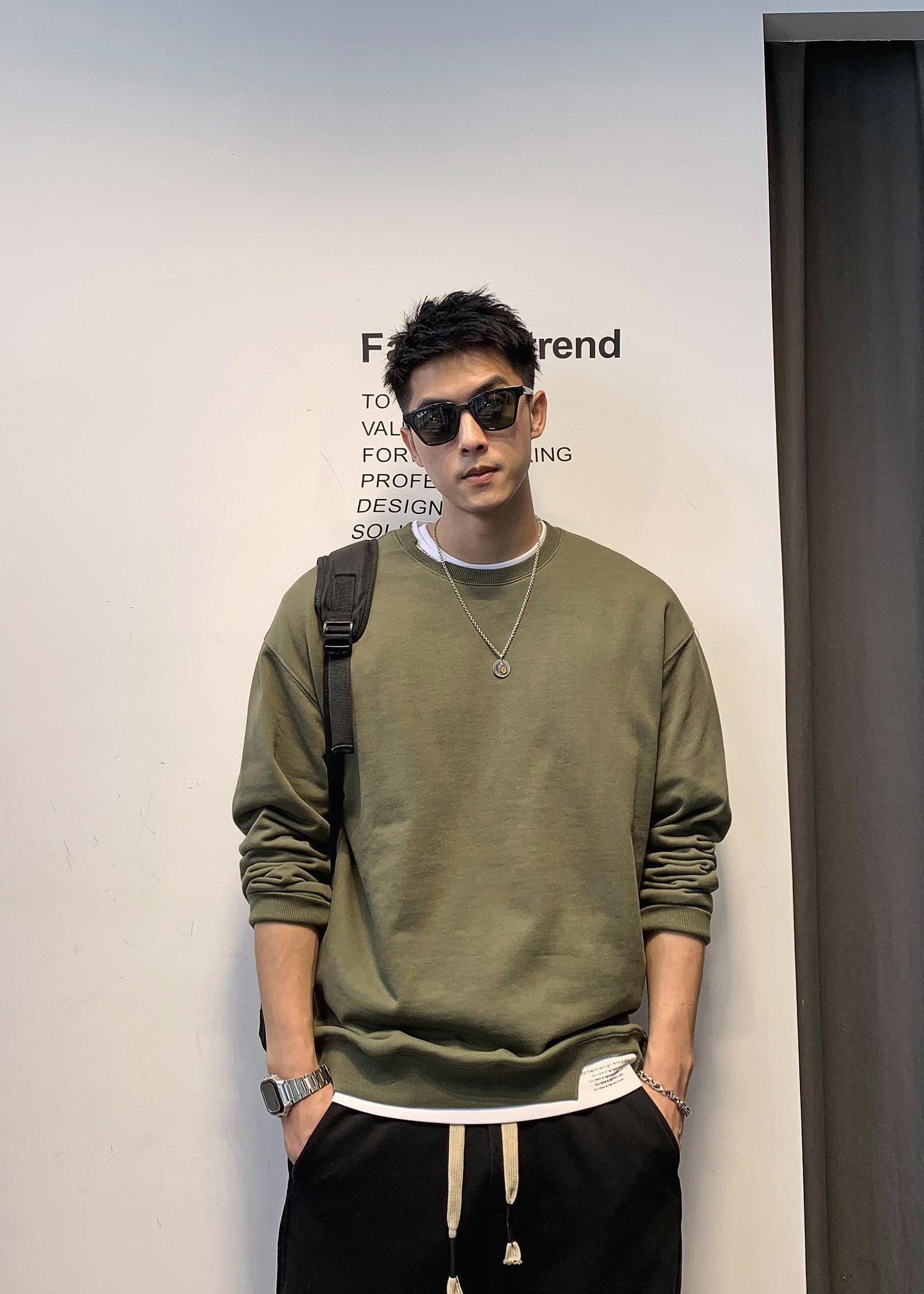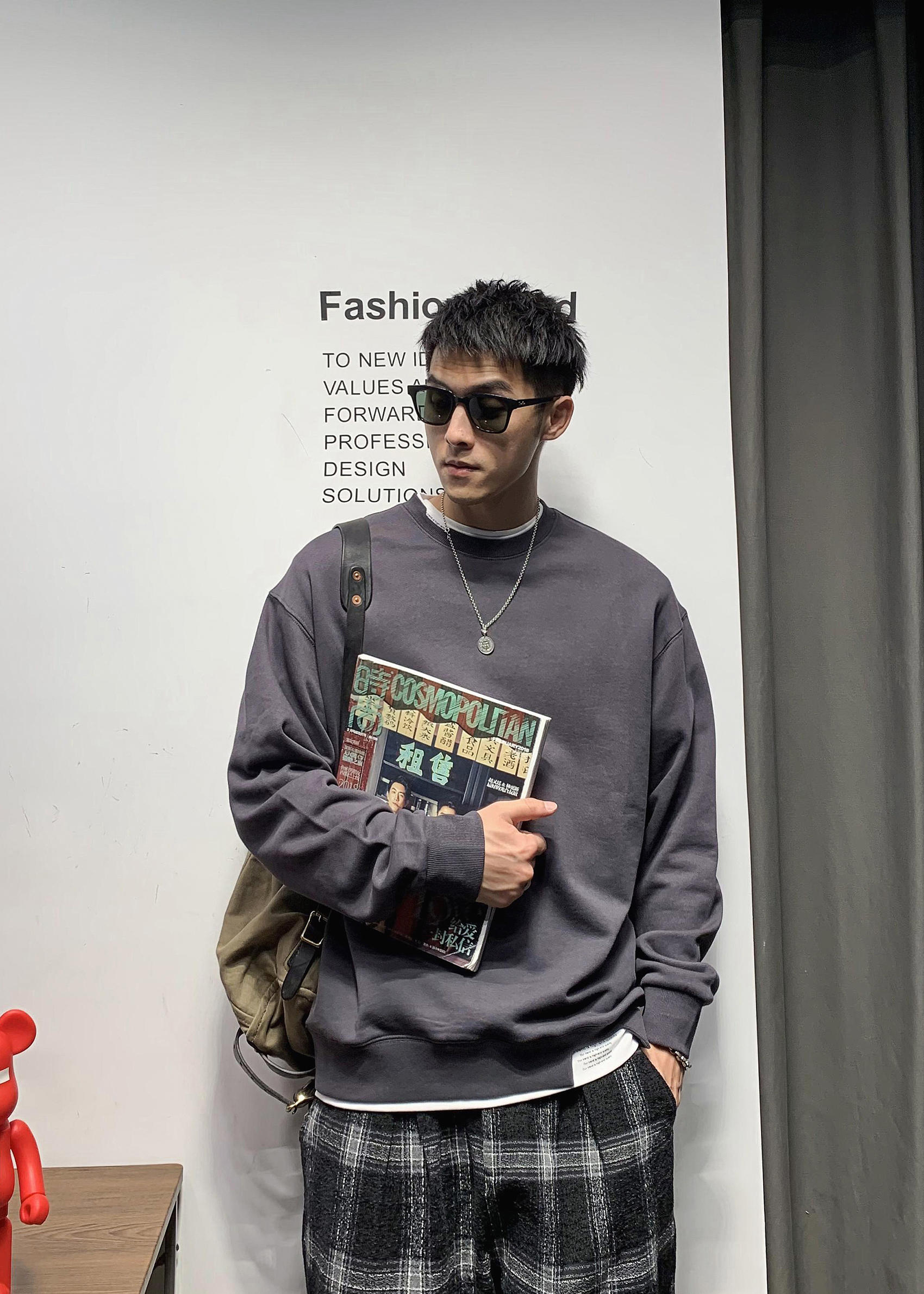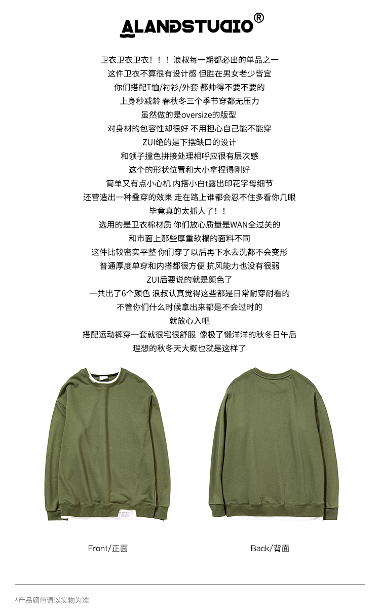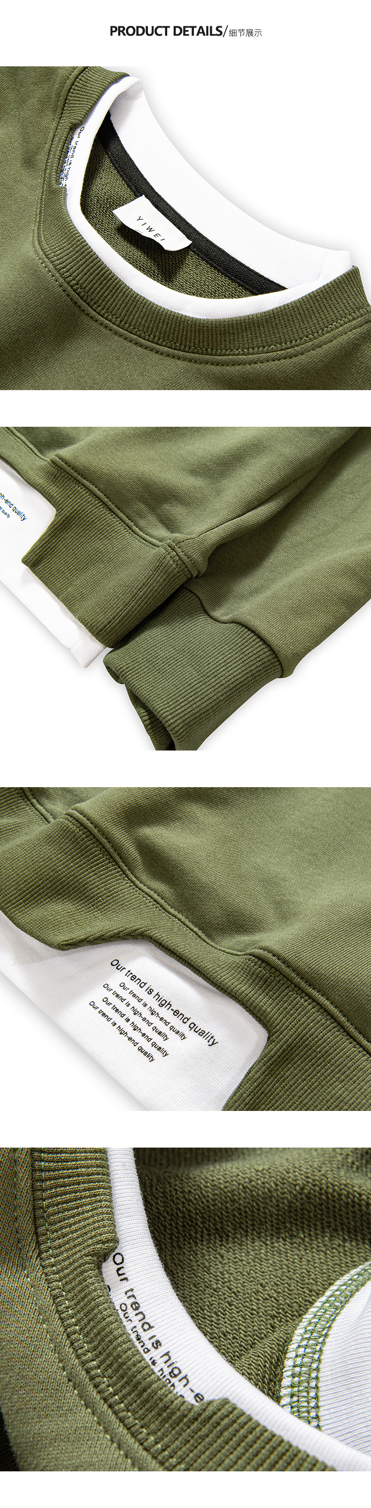 徐太浪日系假两件无帽卫衣男春秋潮牌套头圆领内搭打底衫男生上衣