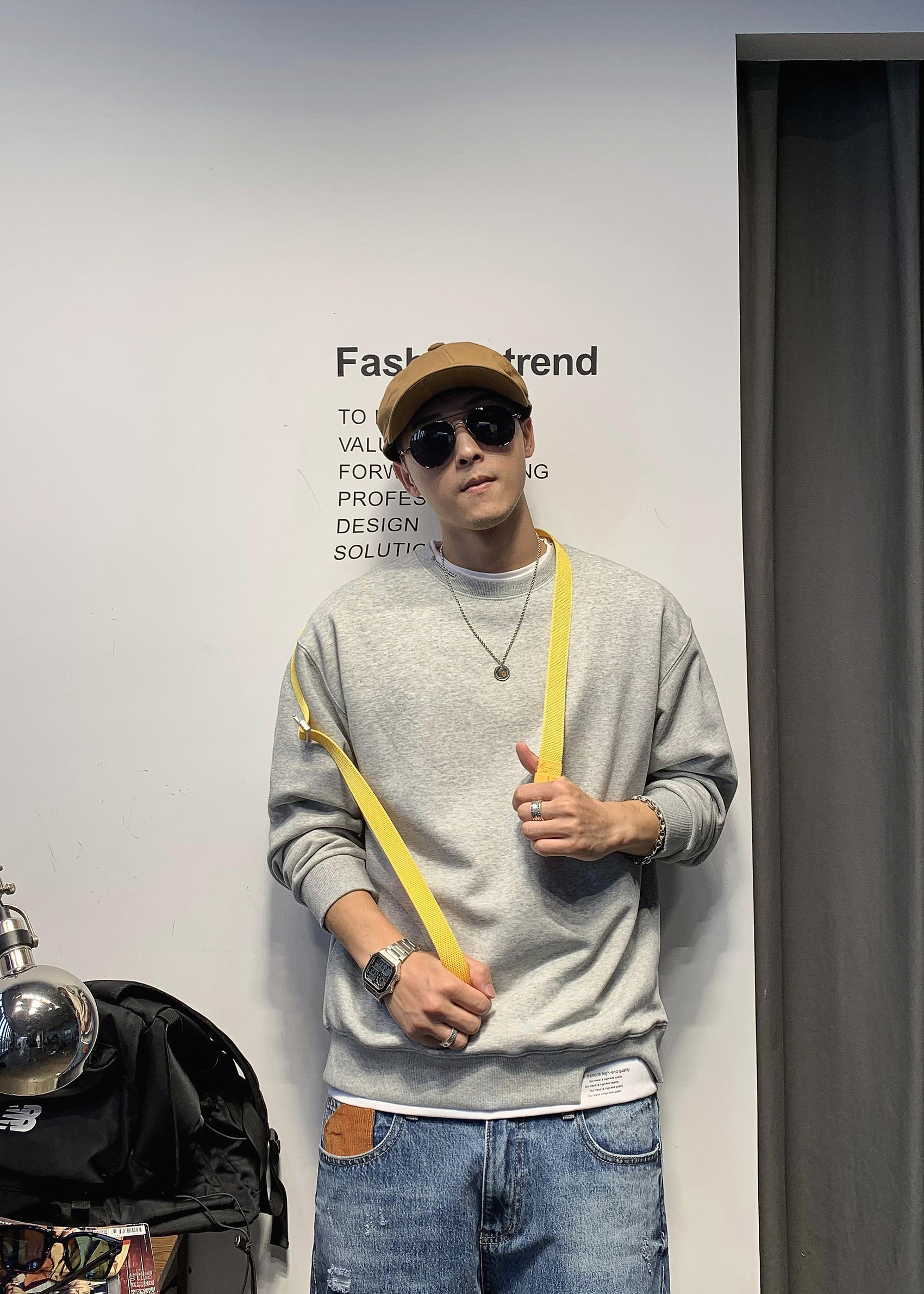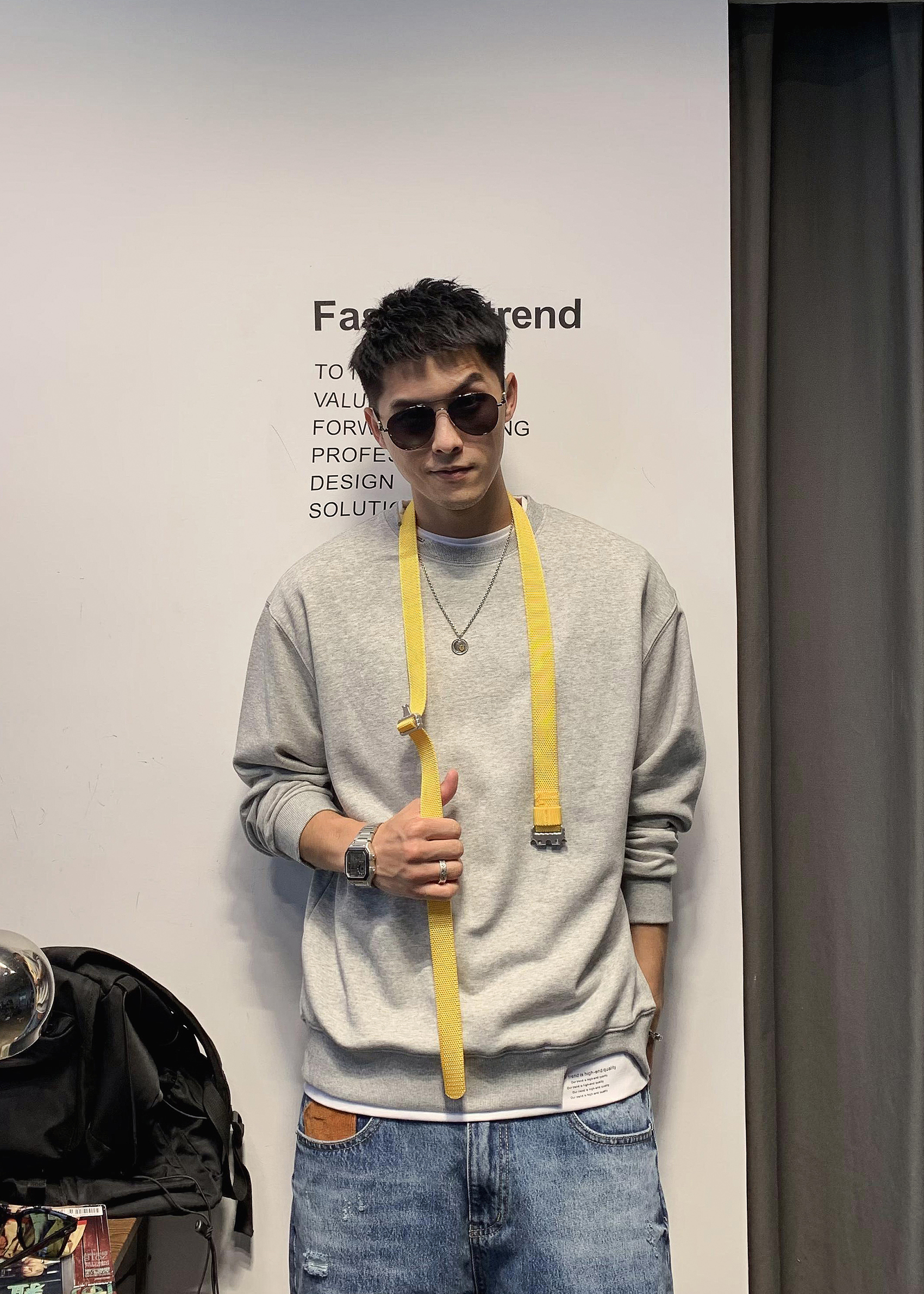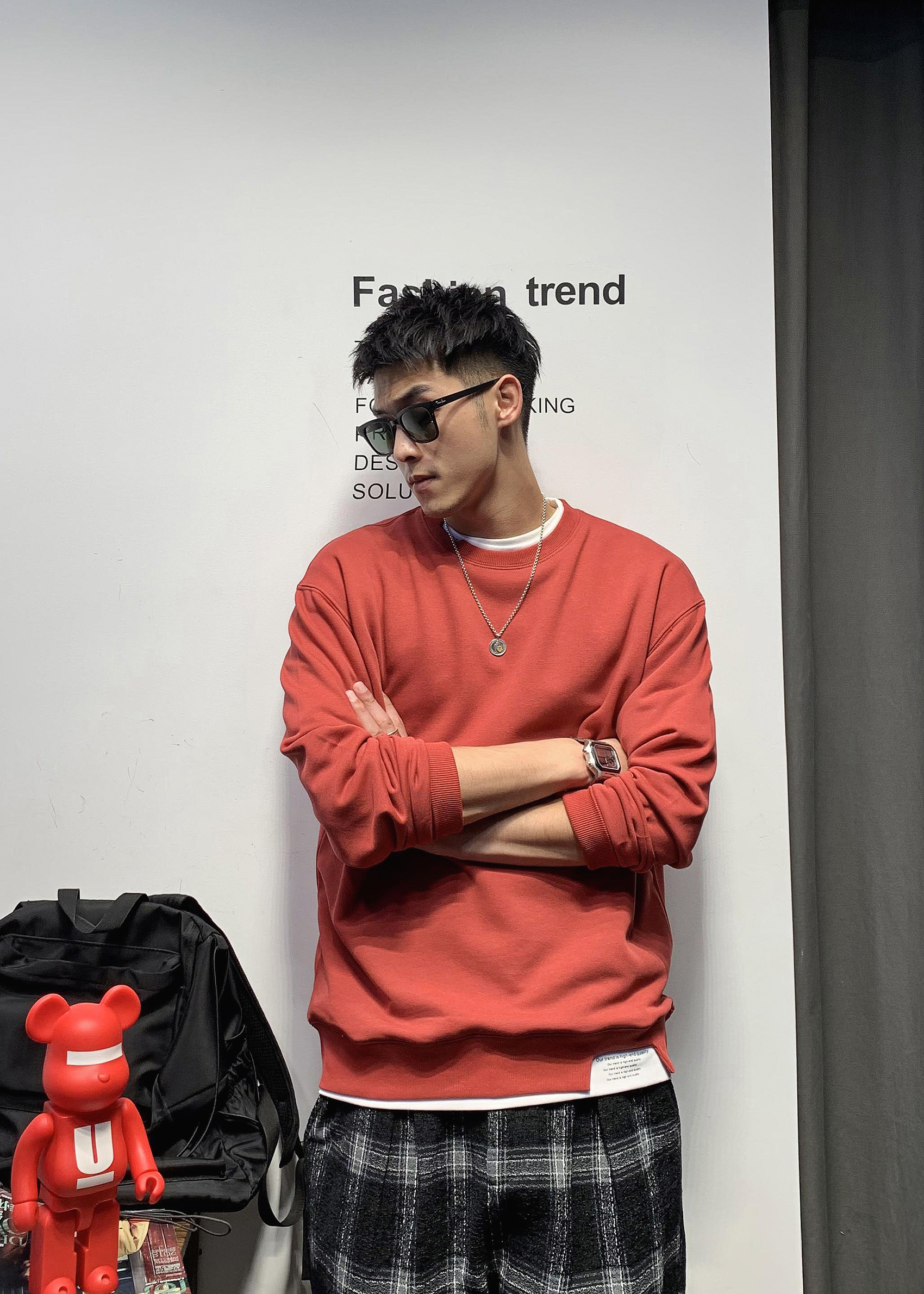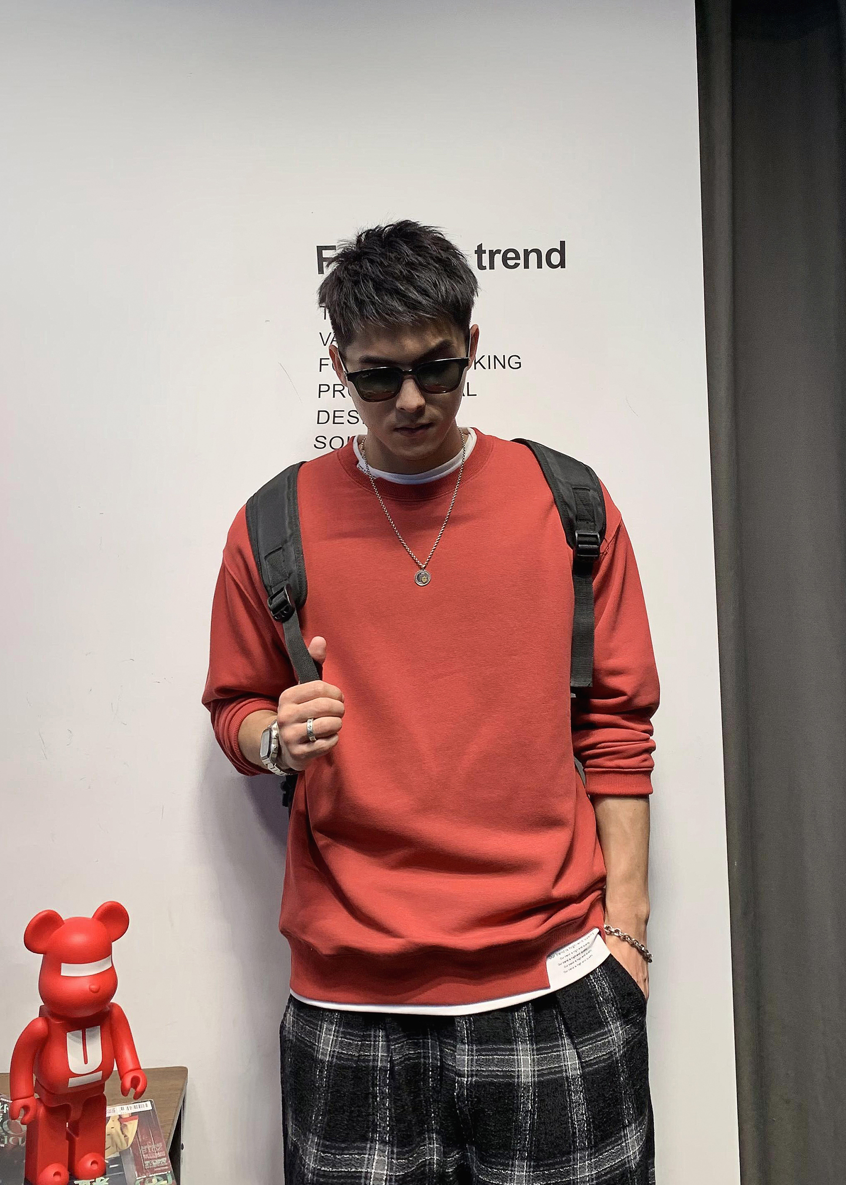 徐太浪日系假两件无帽卫衣男春秋潮牌套头圆领内搭打底衫男生上衣