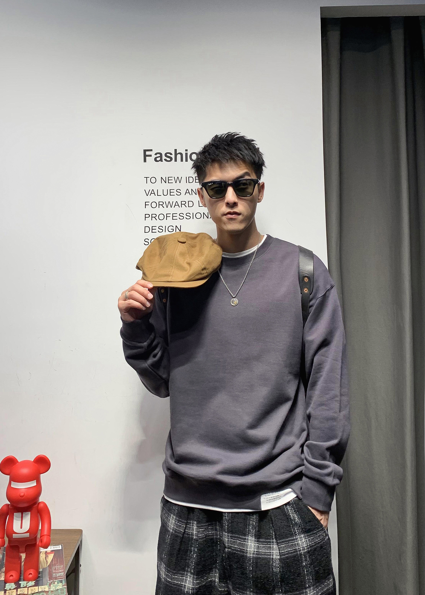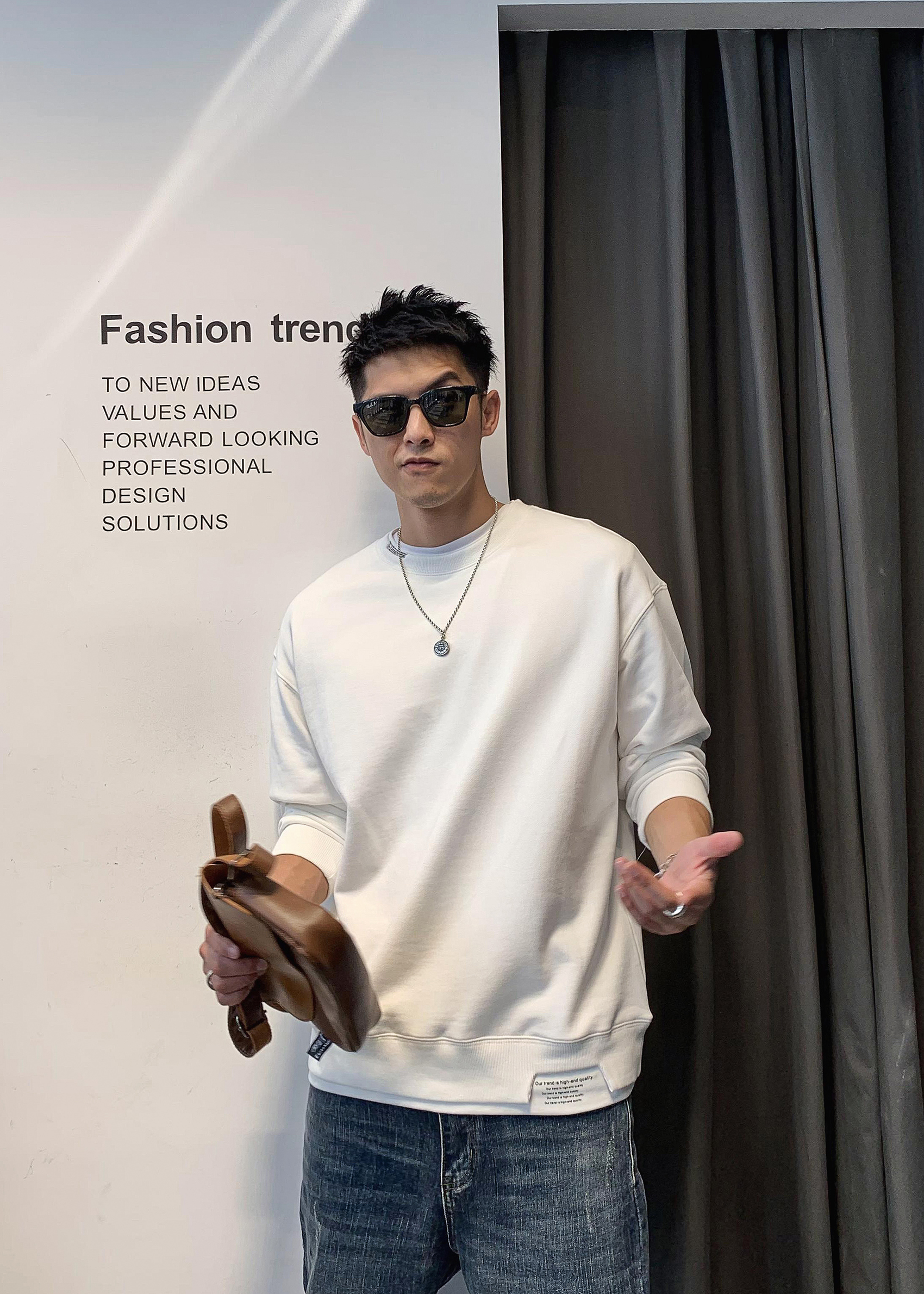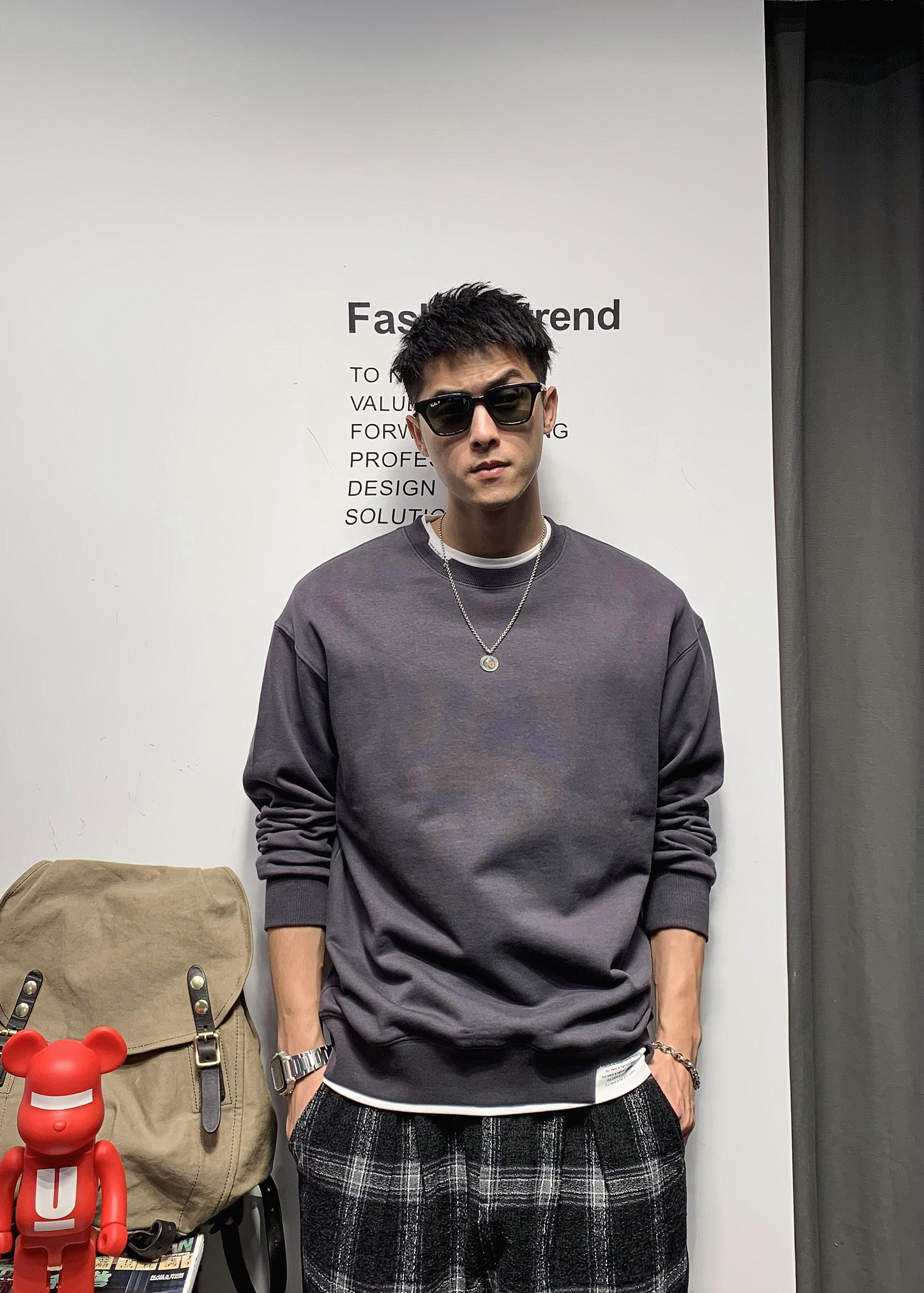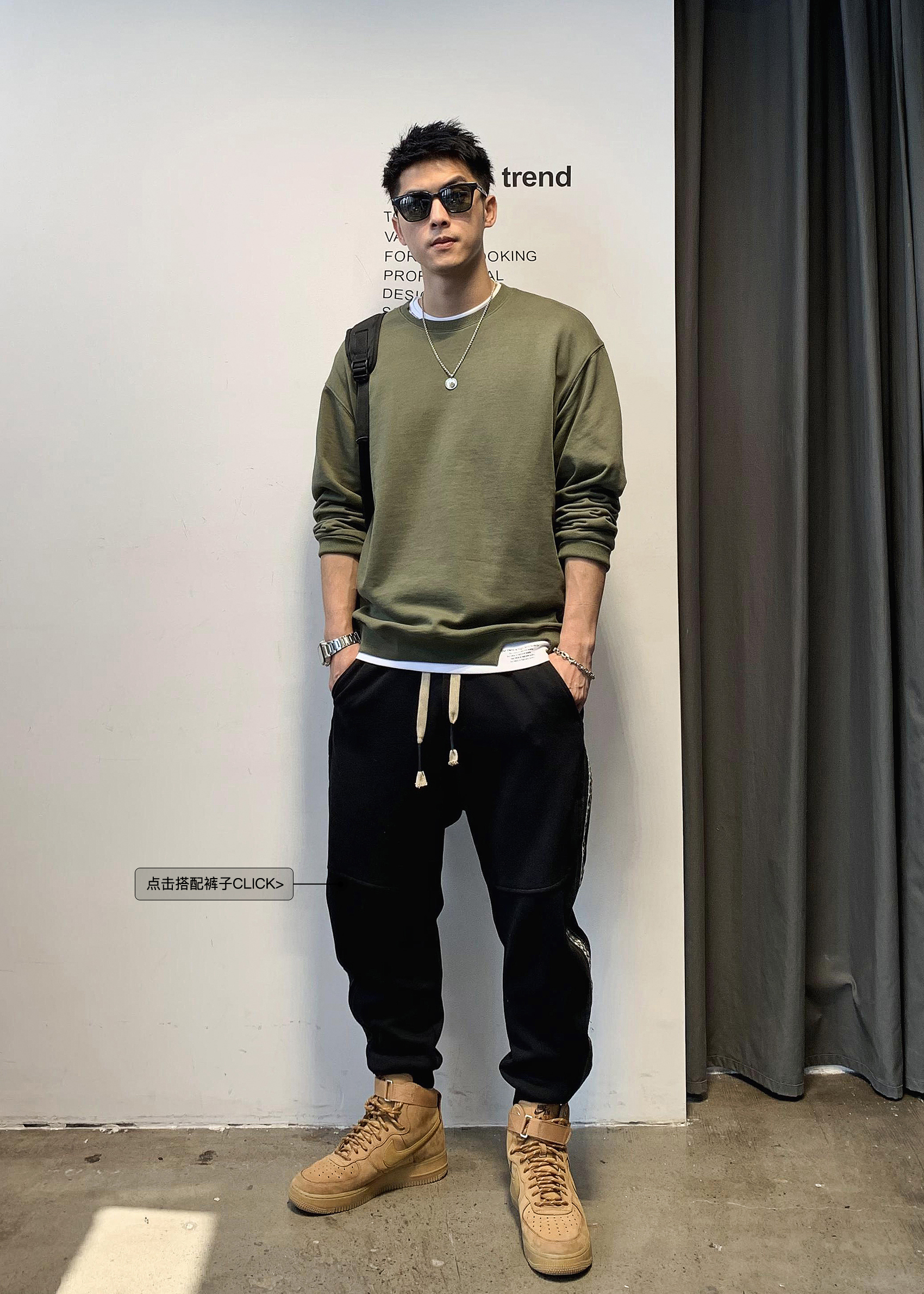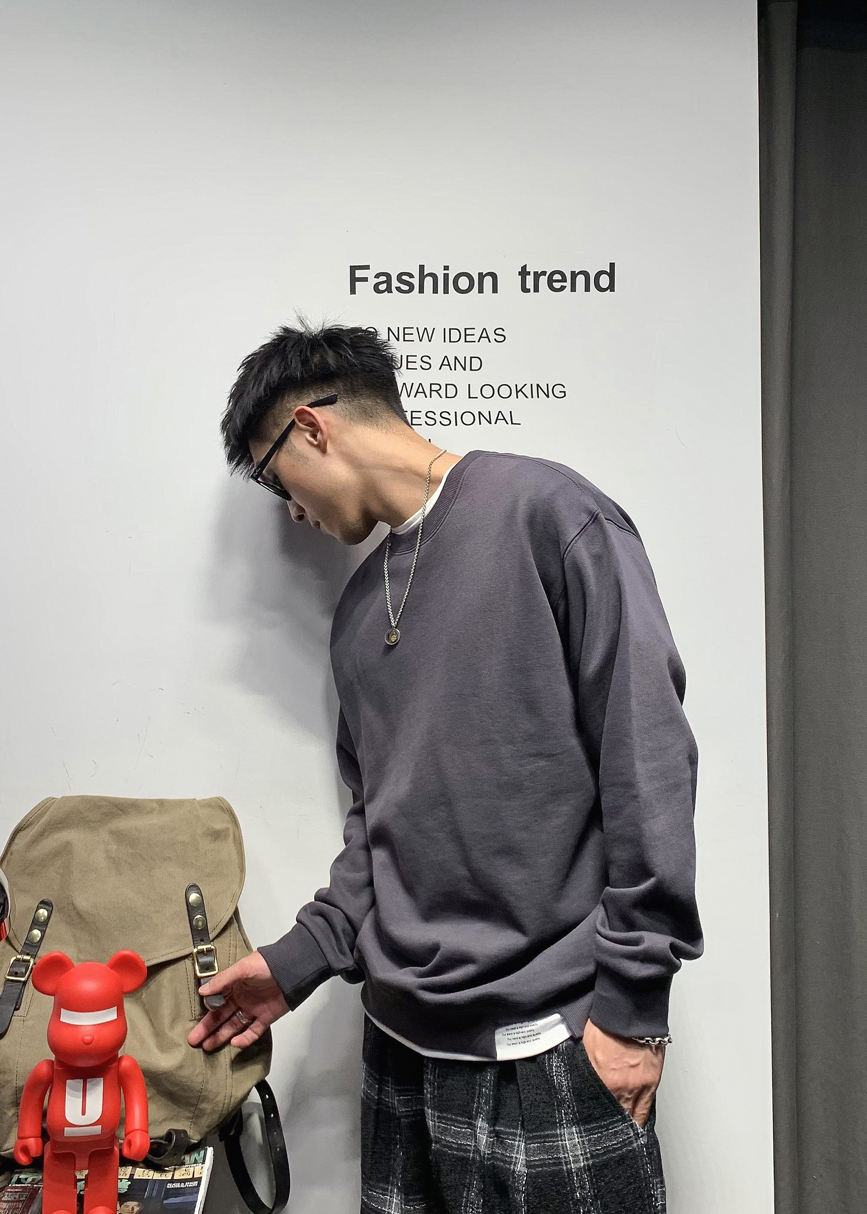 徐太浪日系假两件无帽卫衣男春秋潮牌套头圆领内搭打底衫男生上衣