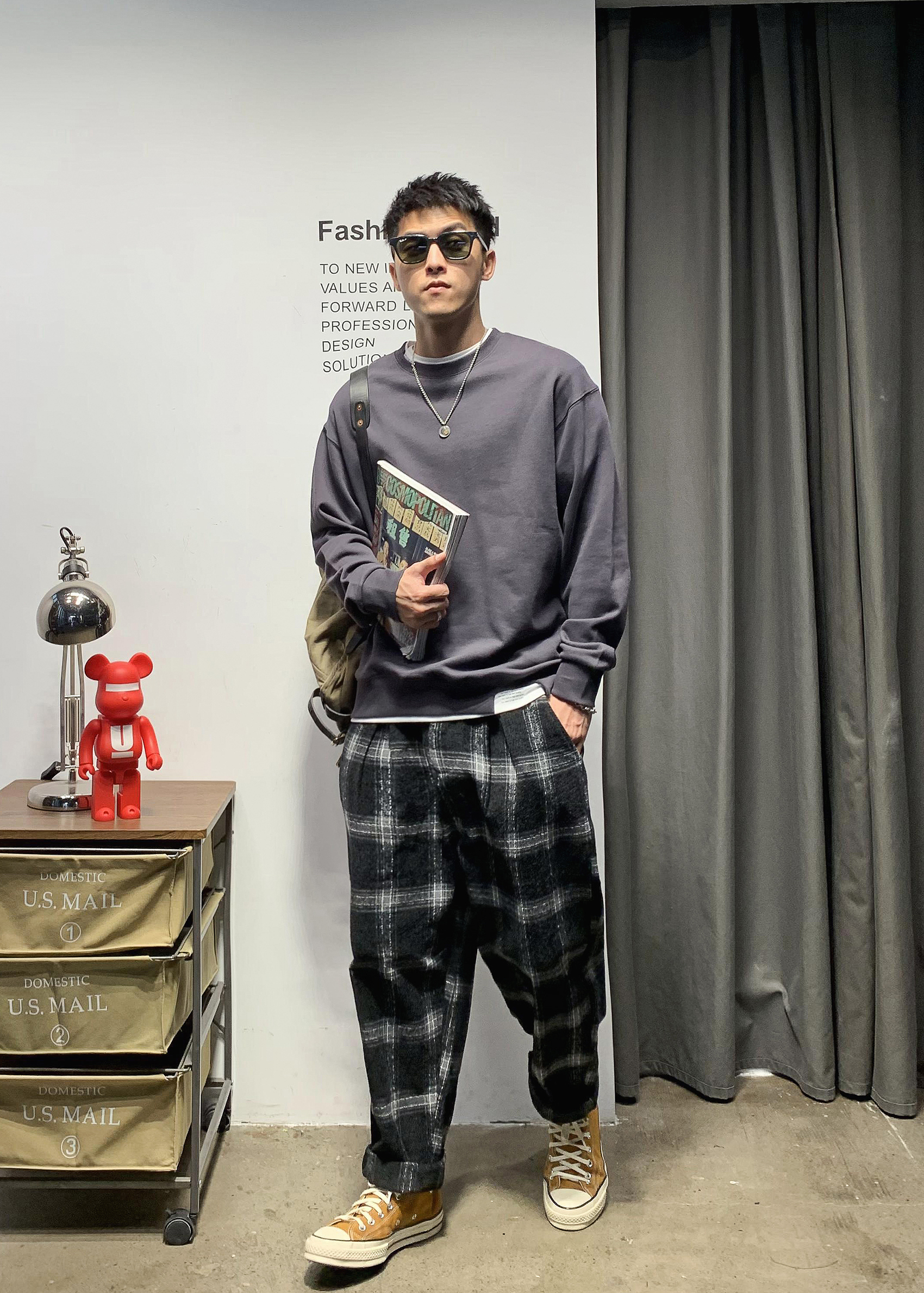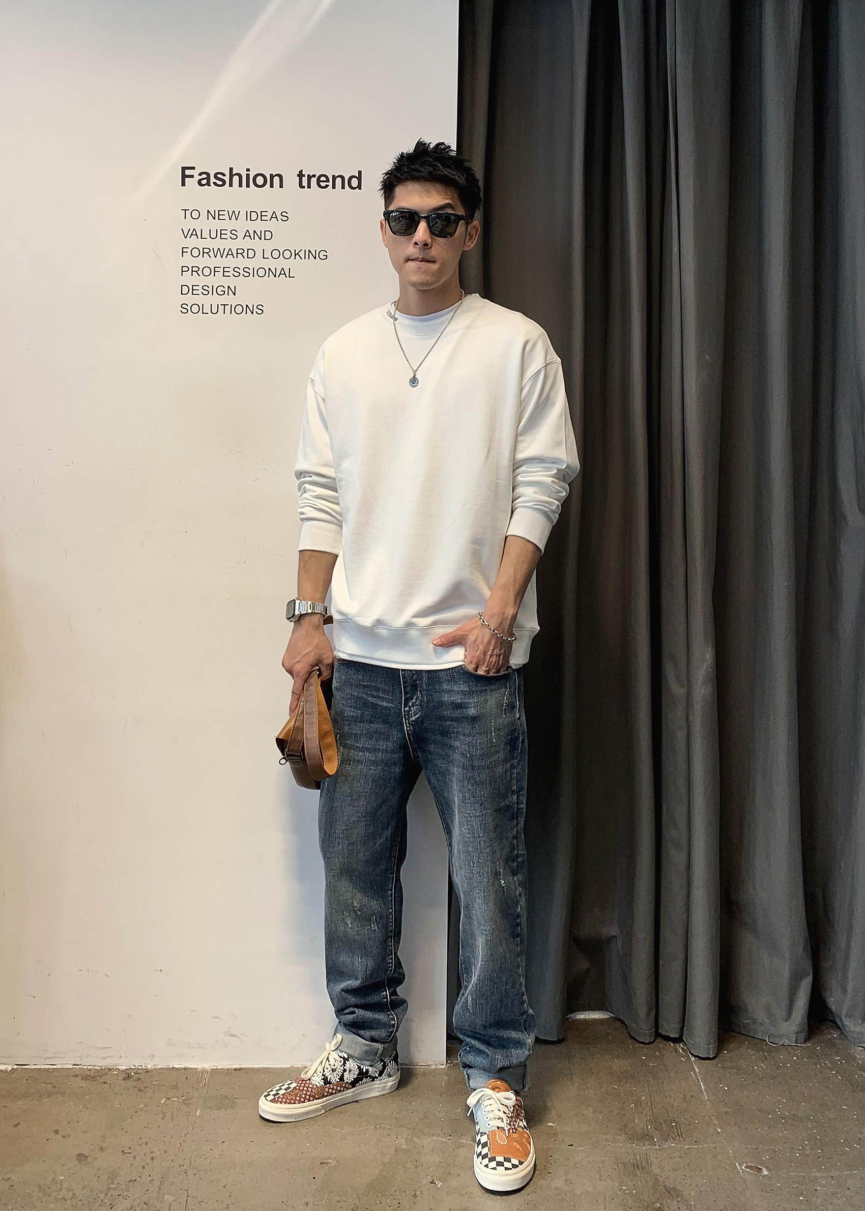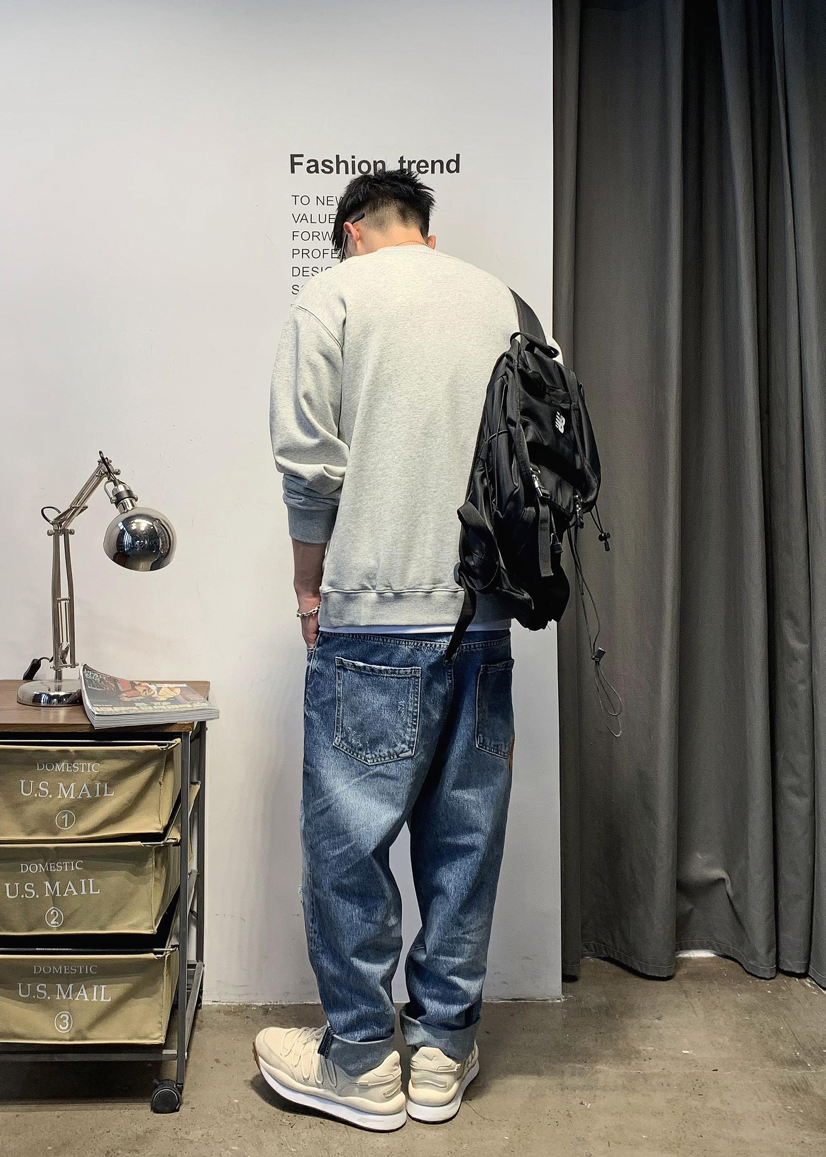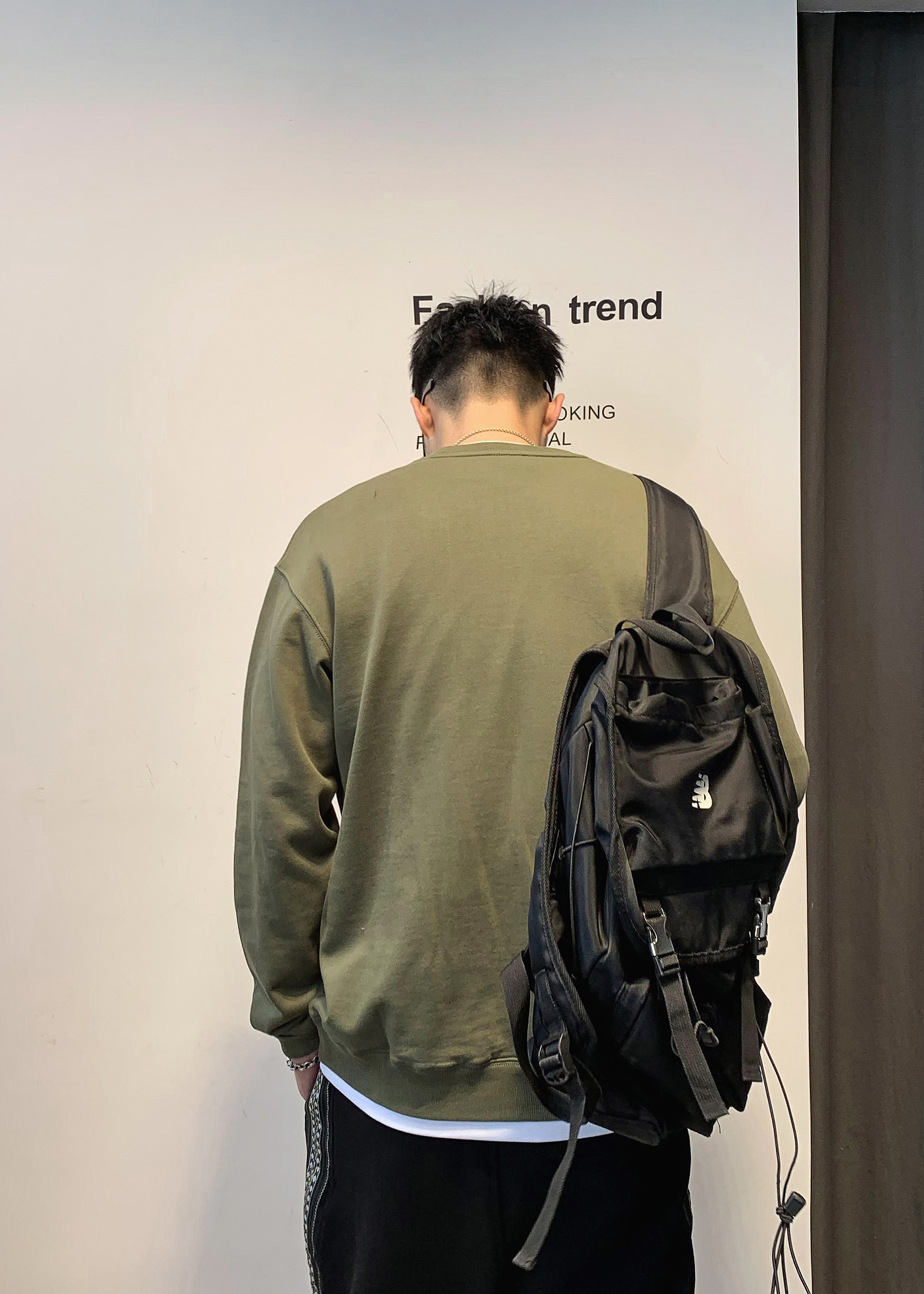 徐太浪日系假两件无帽卫衣男春秋潮牌套头圆领内搭打底衫男生上衣
