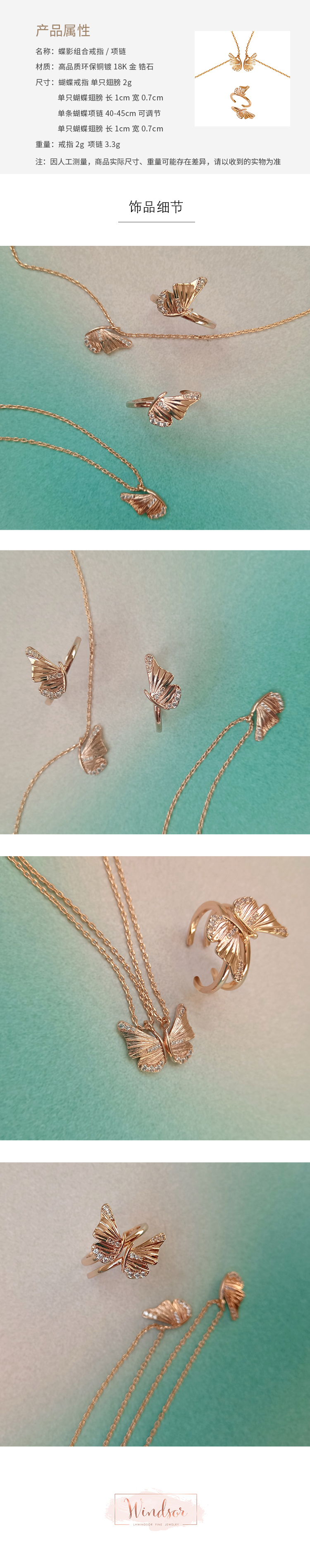 LHWINDSO 温莎珠宝 蝶影组合戒指 项链