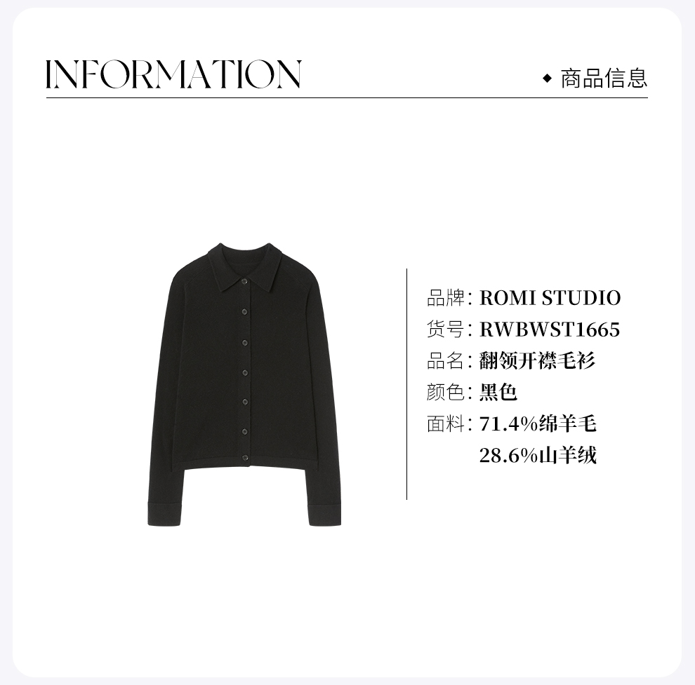 ROMI STUDIO“知性优雅”山羊绒绵羊毛混纺翻领长袖开衫 RWBWST1665