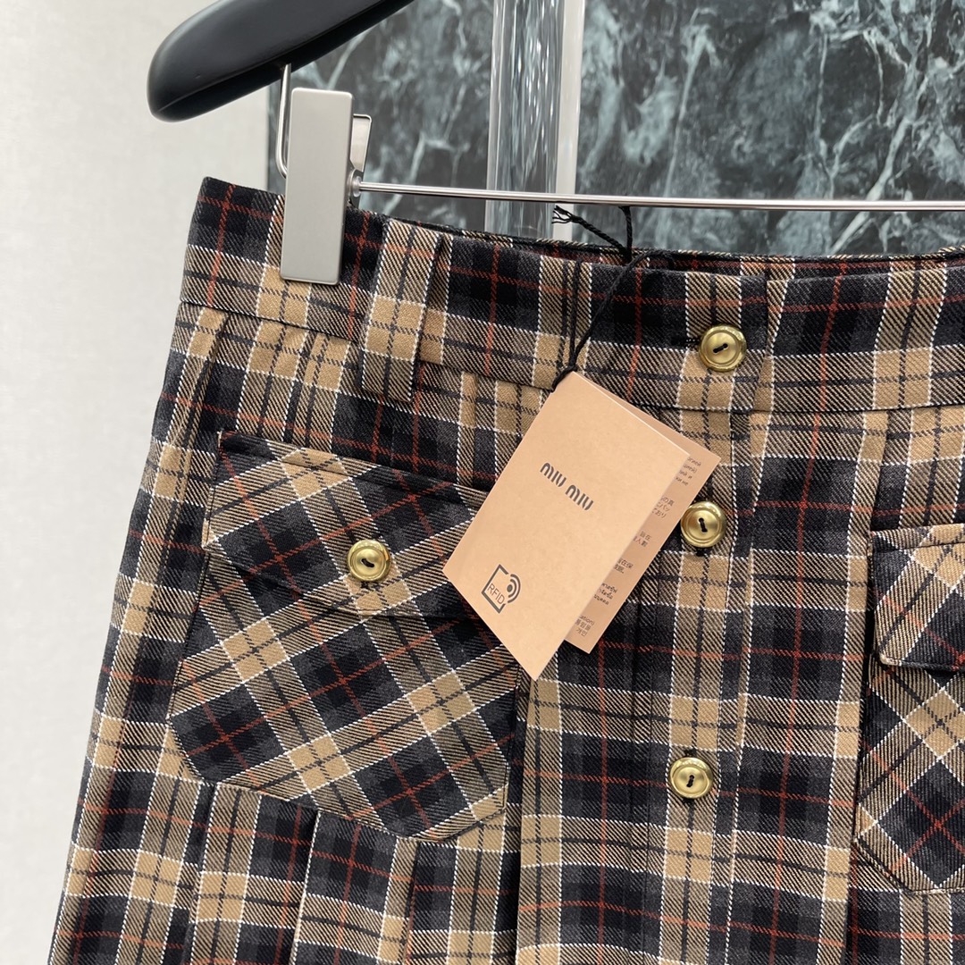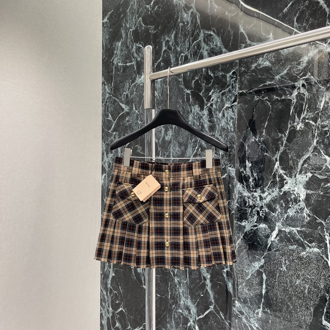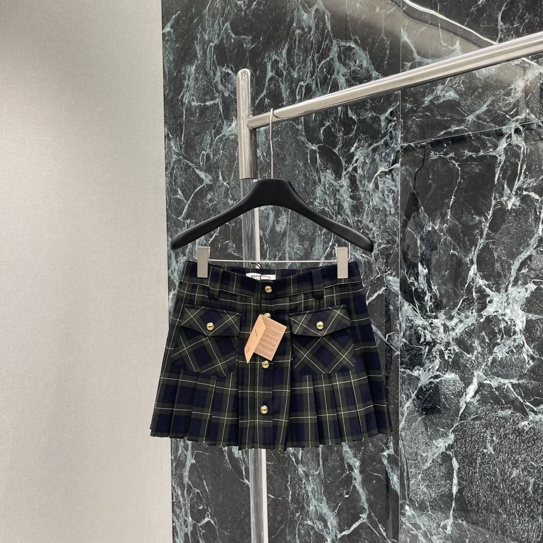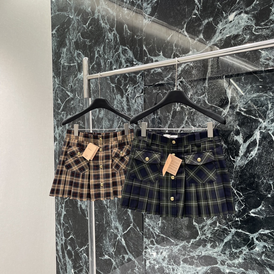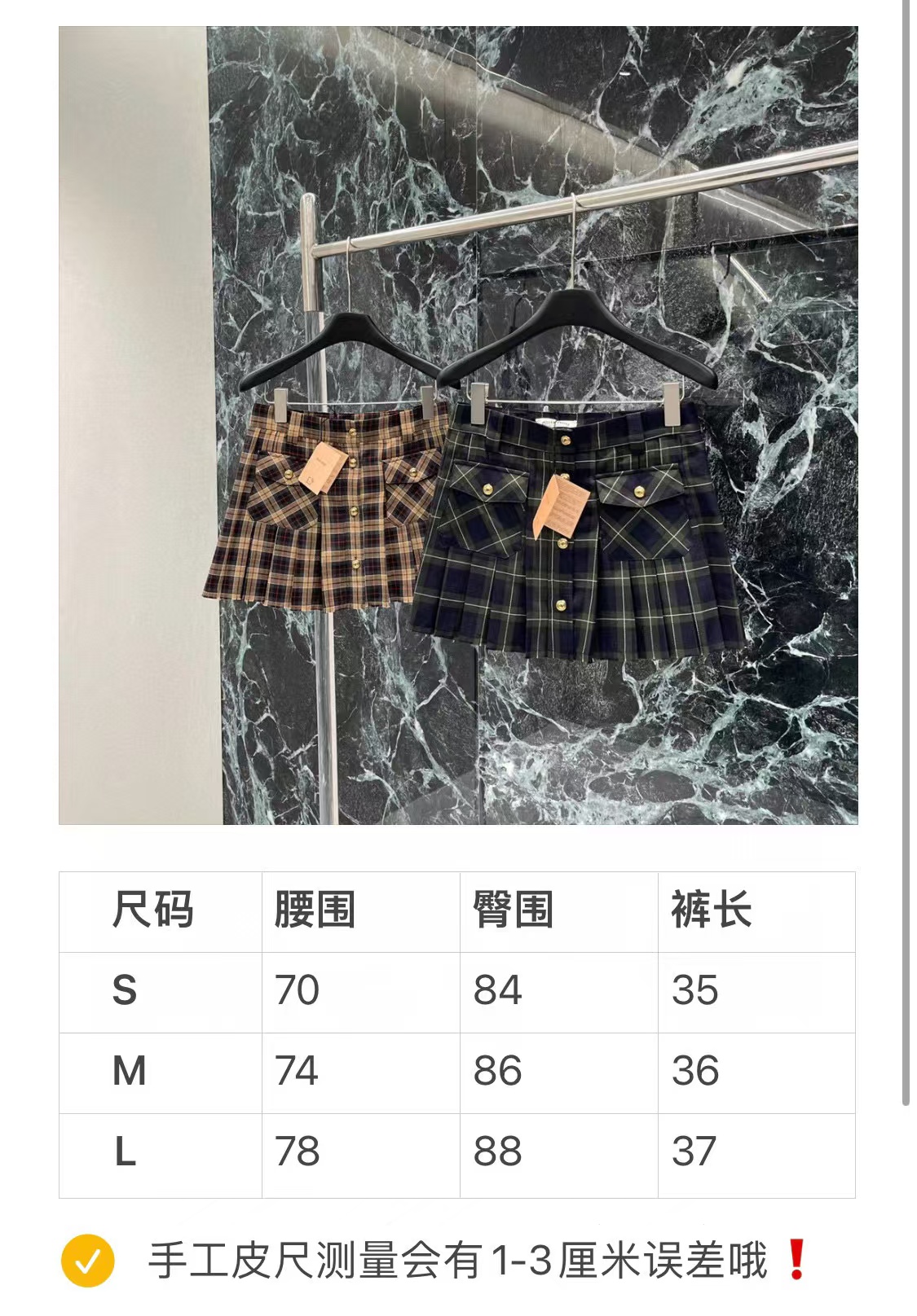 Miu 2024秋冬新款 复古学院风格纹压褶半裙!定制金扣缀饰双口袋,可甜可盐气质少女风!百搭神器怎么搭都好看,强烈推荐自留款。两个色现货SML