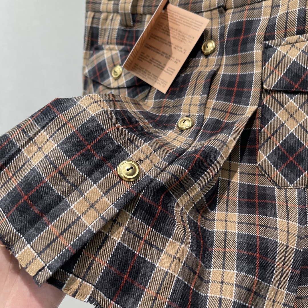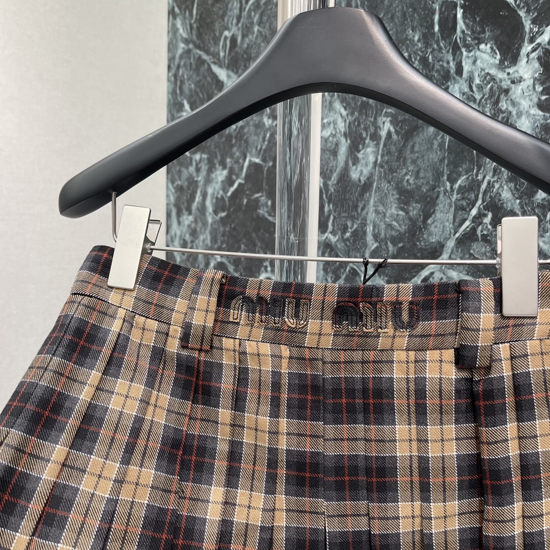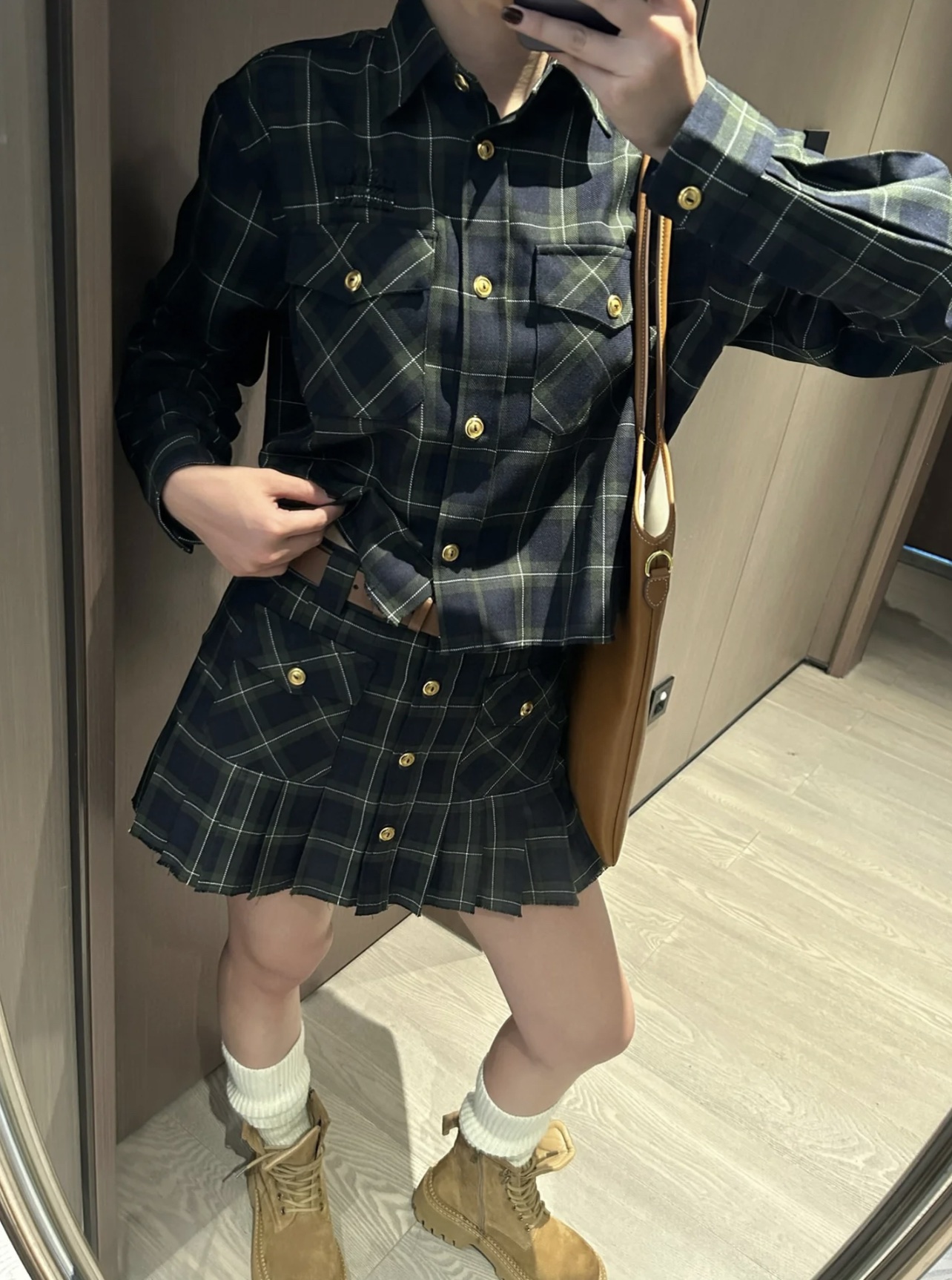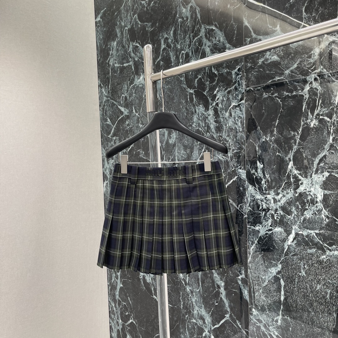Miu 2024秋冬新款 复古学院风格纹压褶半裙!定制金扣缀饰双口袋,可甜可盐气质少女风!百搭神器怎么搭都好看,强烈推荐自留款。两个色现货SML