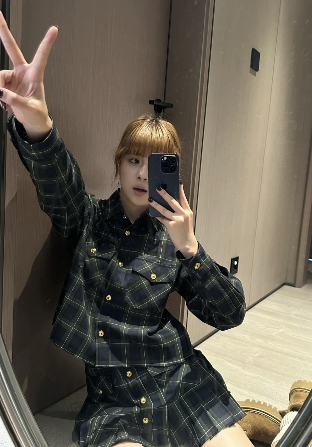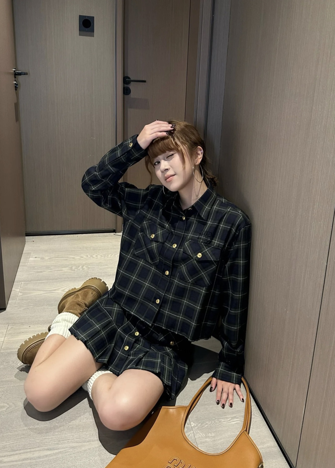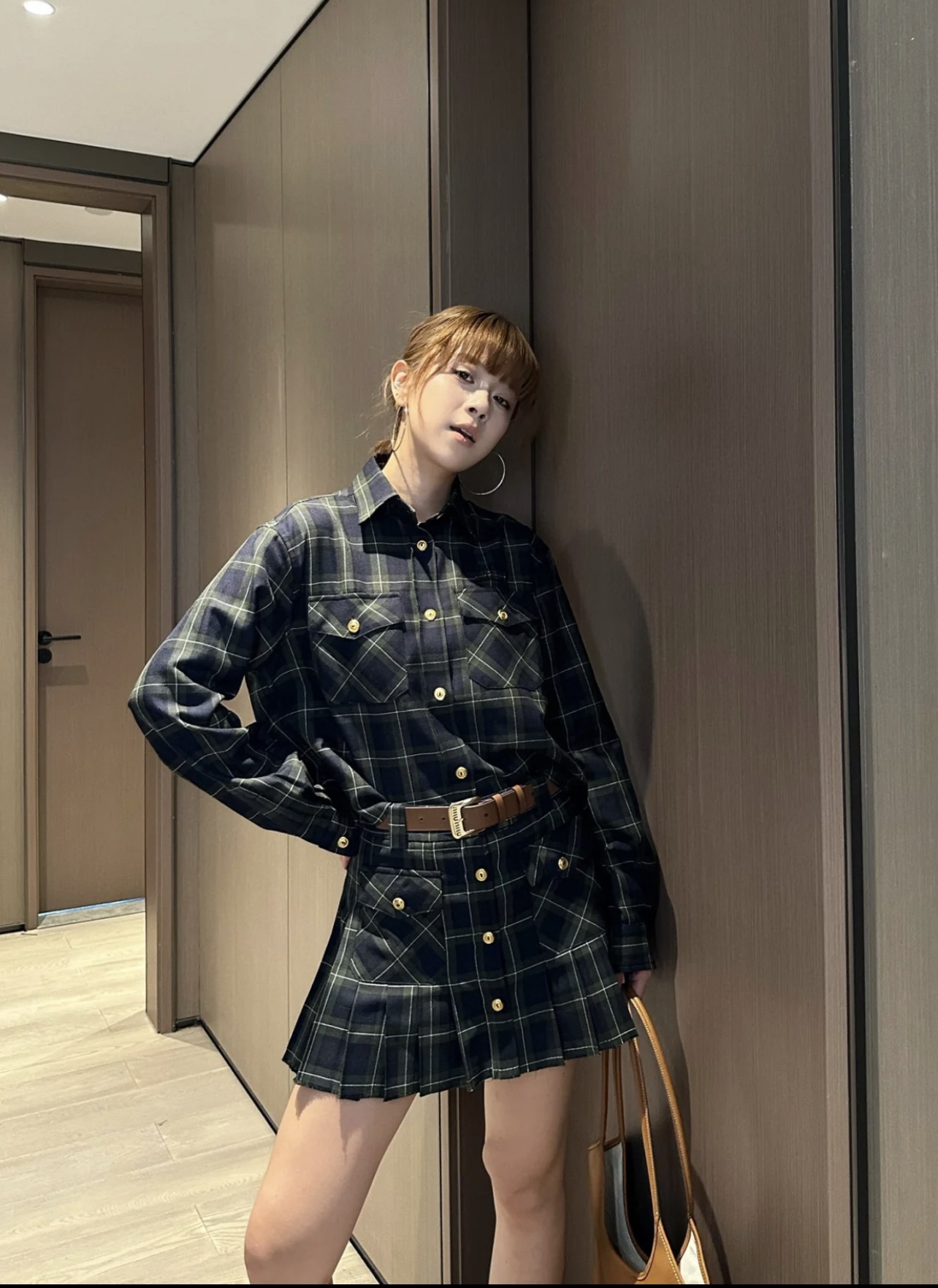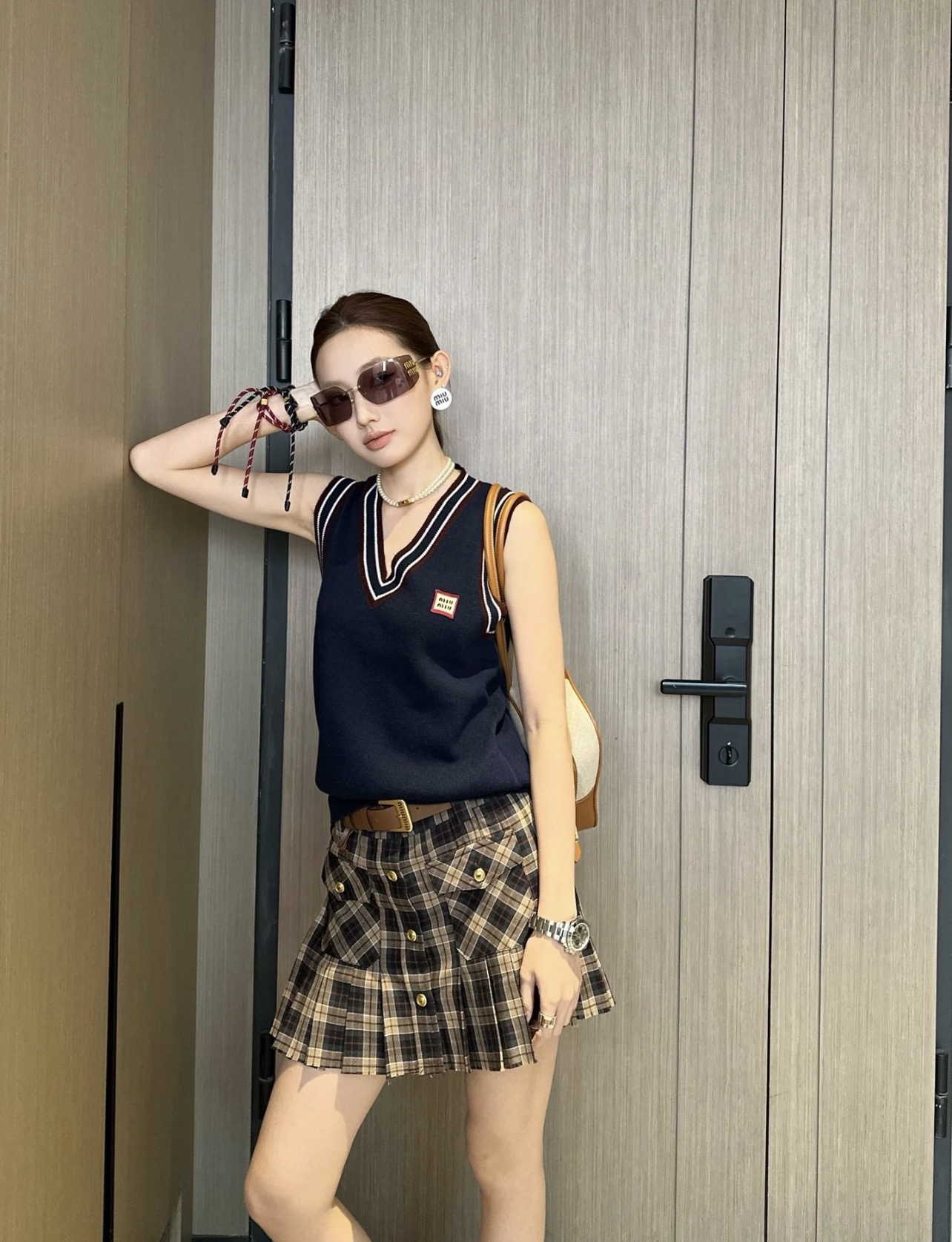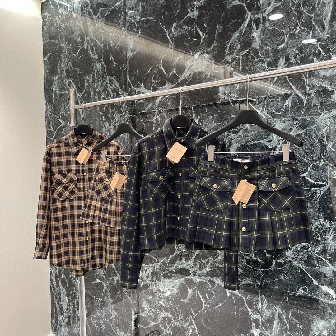 Miu 2024秋冬新款 复古学院风格纹压褶半裙!定制金扣缀饰双口袋,可甜可盐气质少女风!百搭神器怎么搭都好看,强烈推荐自留款。两个色现货SML