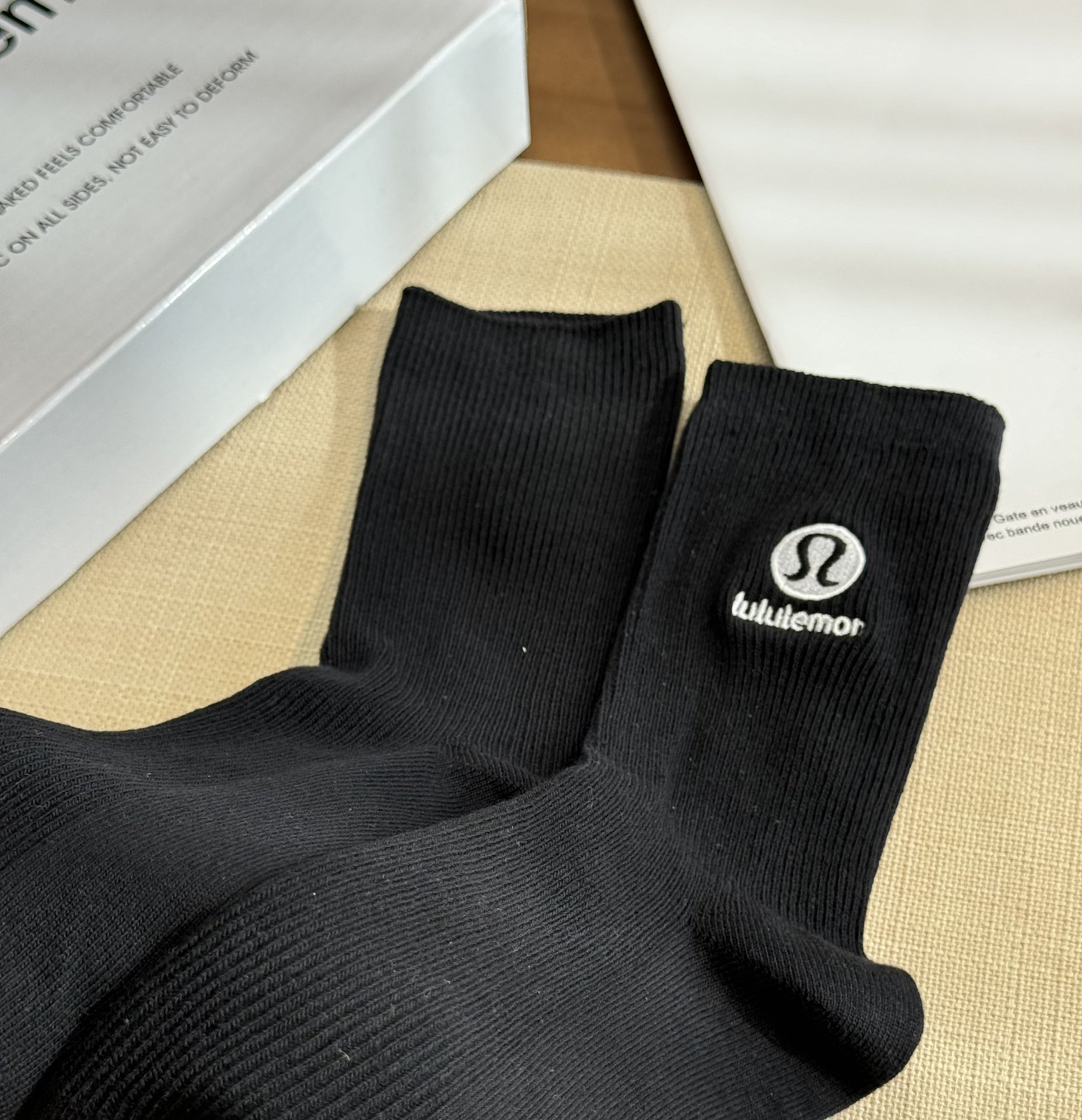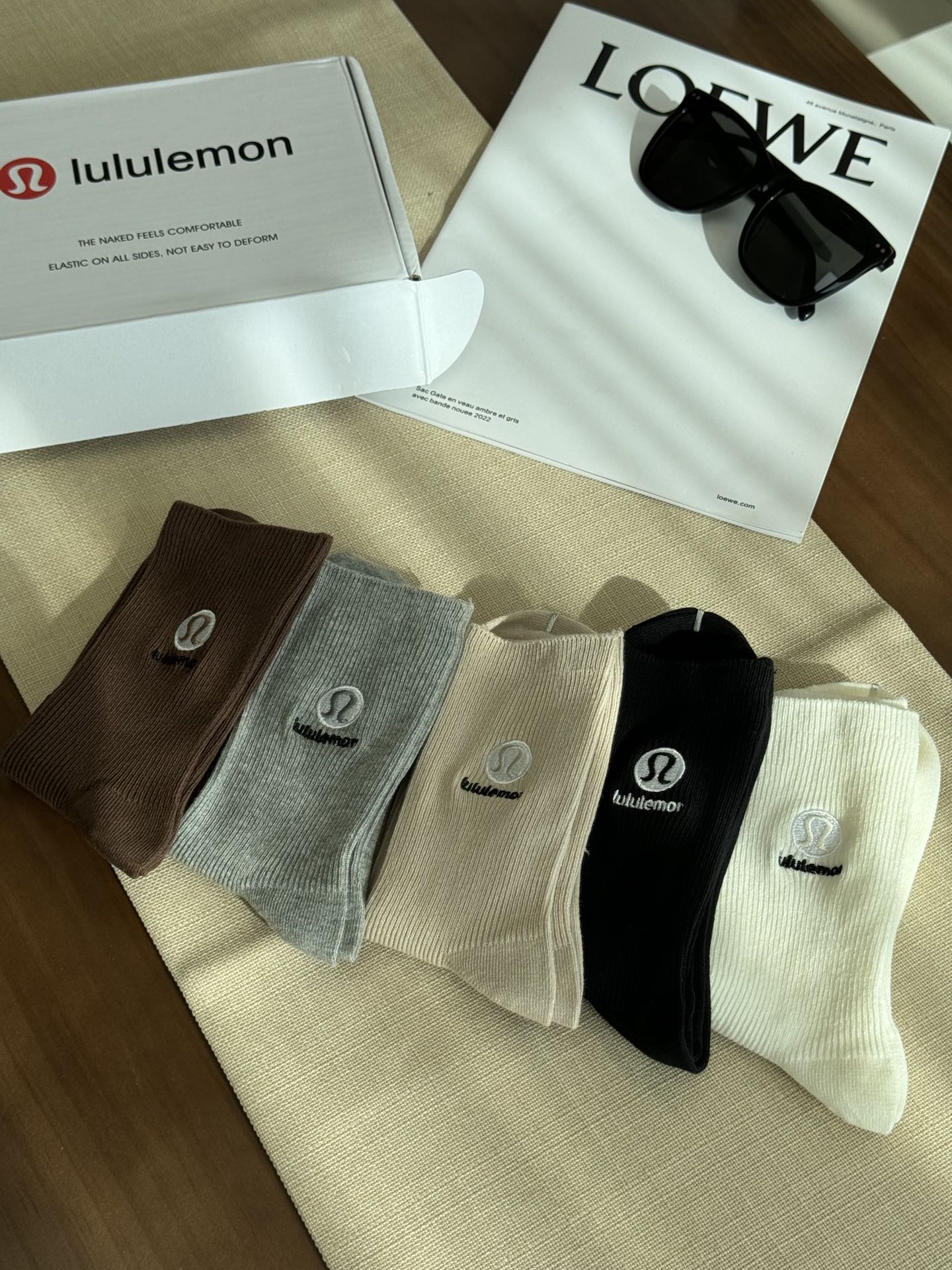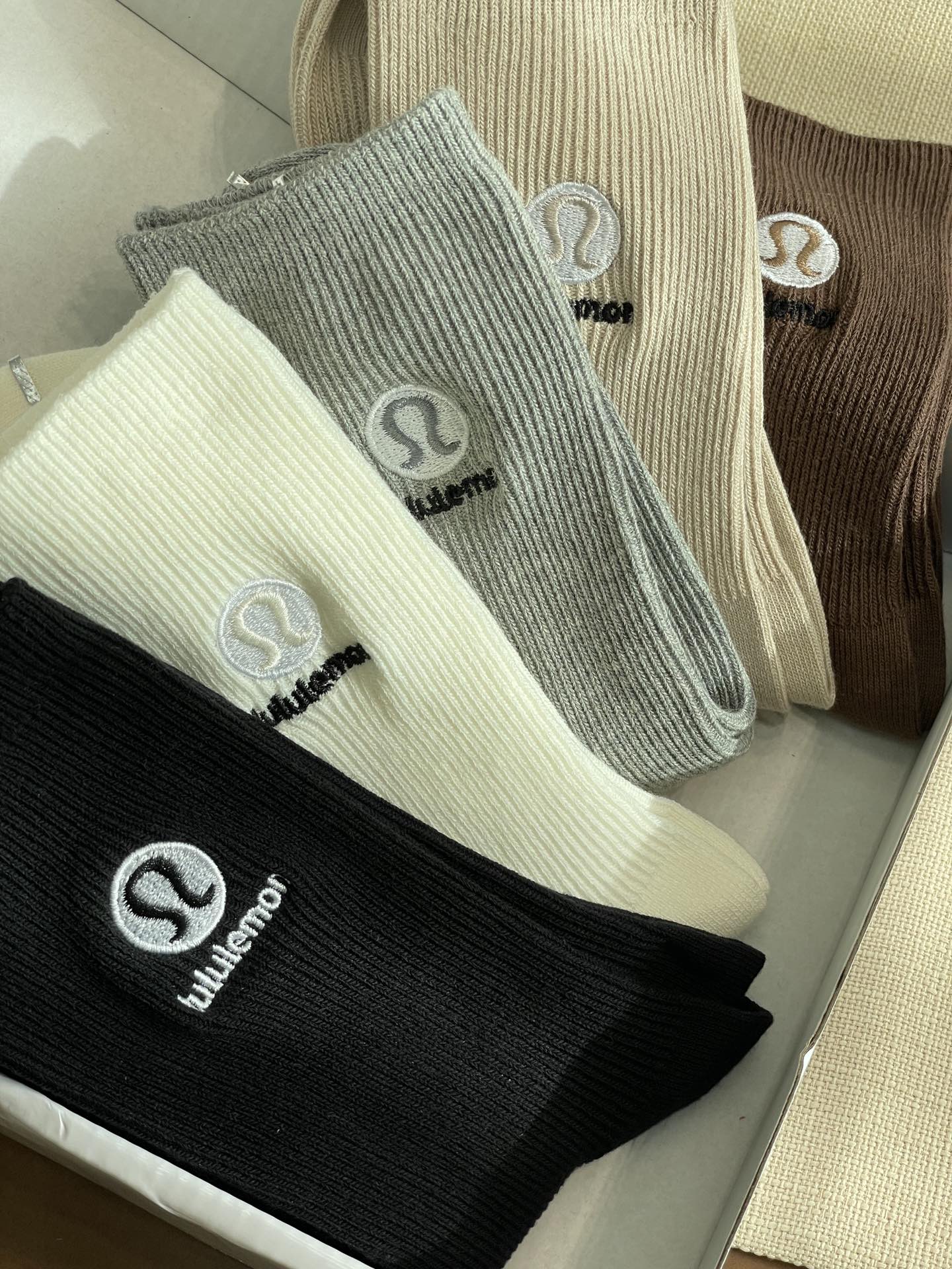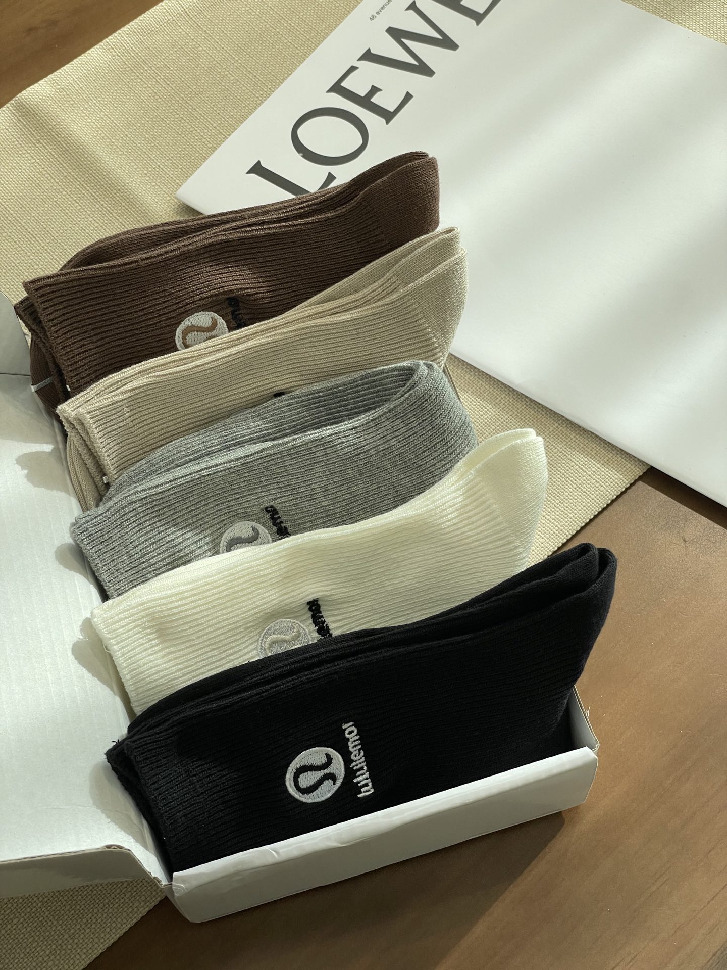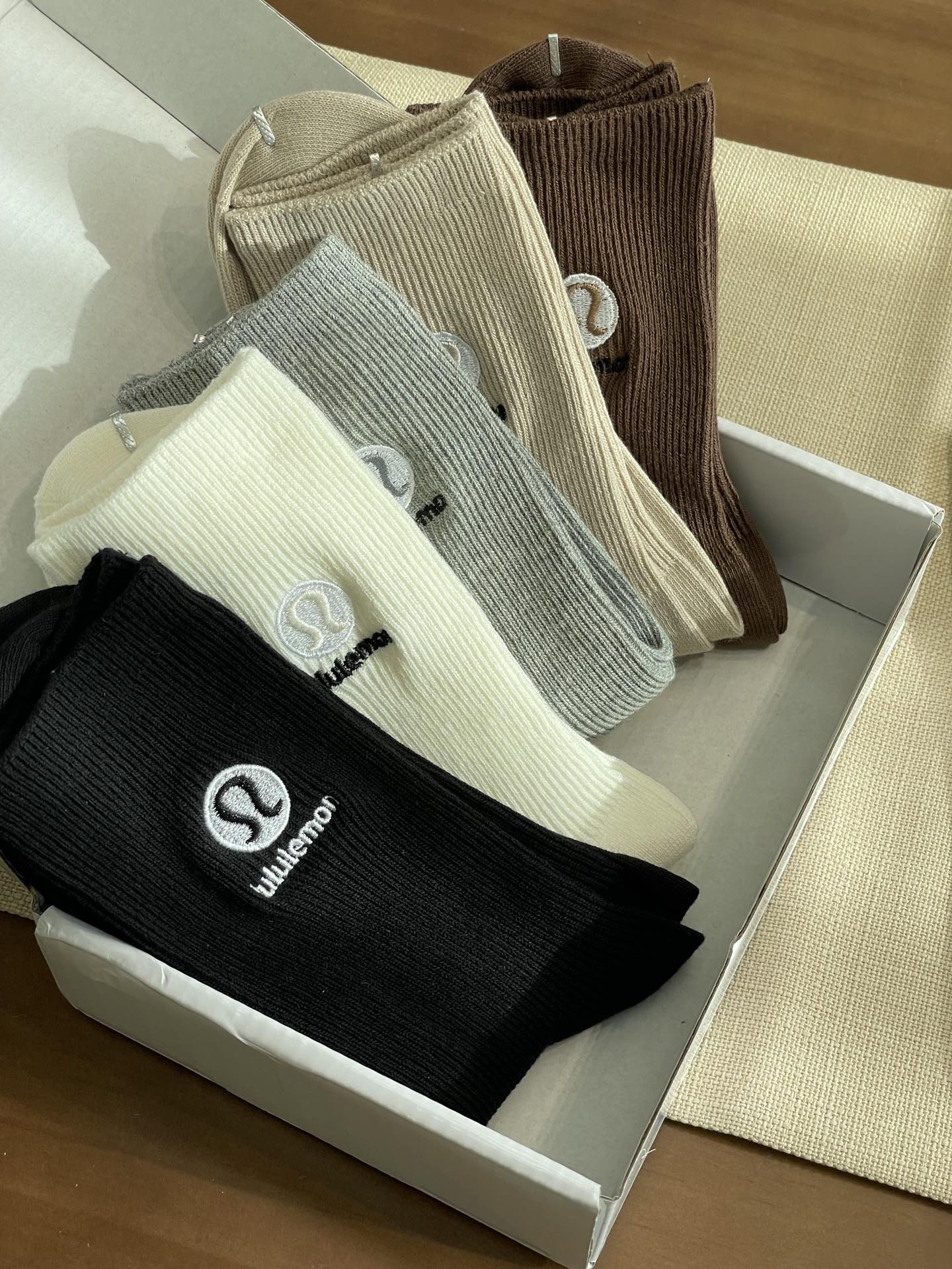 一盒5⃣️双,纯原单 Lulu家lemon经典刺绣logo纯棉休闲中筒袜 女款